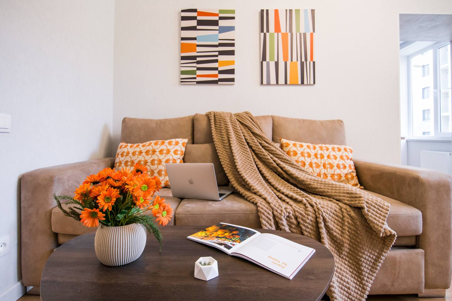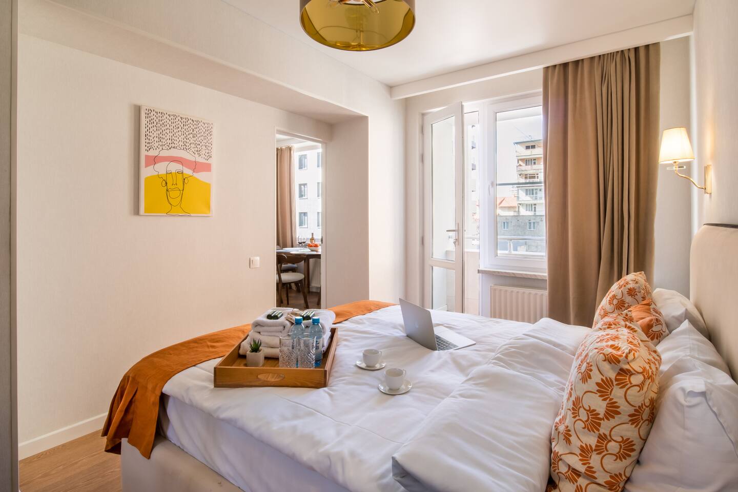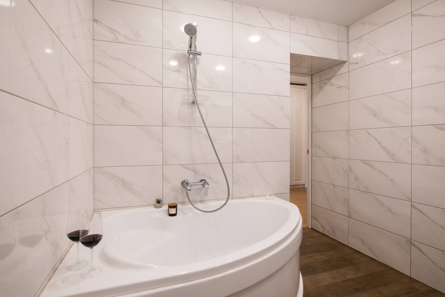 Living Room: Step into a burst of brightness and warmth with vibrant colors and cozy furnishings. Sink into the sofa, enjoy complimentary Netflix on the TV, and gather around the dining table bathed in natural light from large windows. Adorned with wall art and cushions in defined color palettes, the living room exudes comfort and style. Kitchen: Designed with custom-made elements and quality materials, the kitchen is a chef's dream. White and wooden tones complement the designer color palette, while the array of appliances – including an oven, stove, microwave, and coffee machine – ensure culinary delights. Ample storage space and a large fridge complete the ensemble. Bedroom: Experience serenity in the bright and airy bedroom, where natural light floods the space. Soft touches and thoughtful lighting create a cozy retreat, while abundant storage keeps belongings neatly tucked away. Bathroom: Indulge in luxury with a newly tiled bathroom featuring an LED cabinet mirror and a rejuvenating hot tub – the perfect place to unwind after a day of exploration. Balcony: Step out onto the balcony and soak in the surroundings with a delightful coffee-sipping experience amidst the fresh air and charming views.