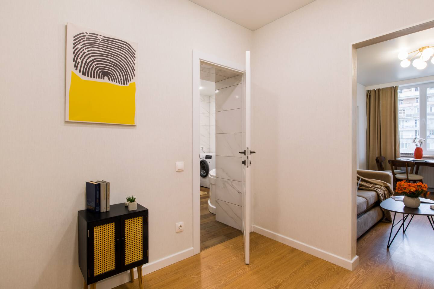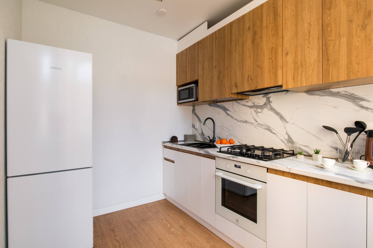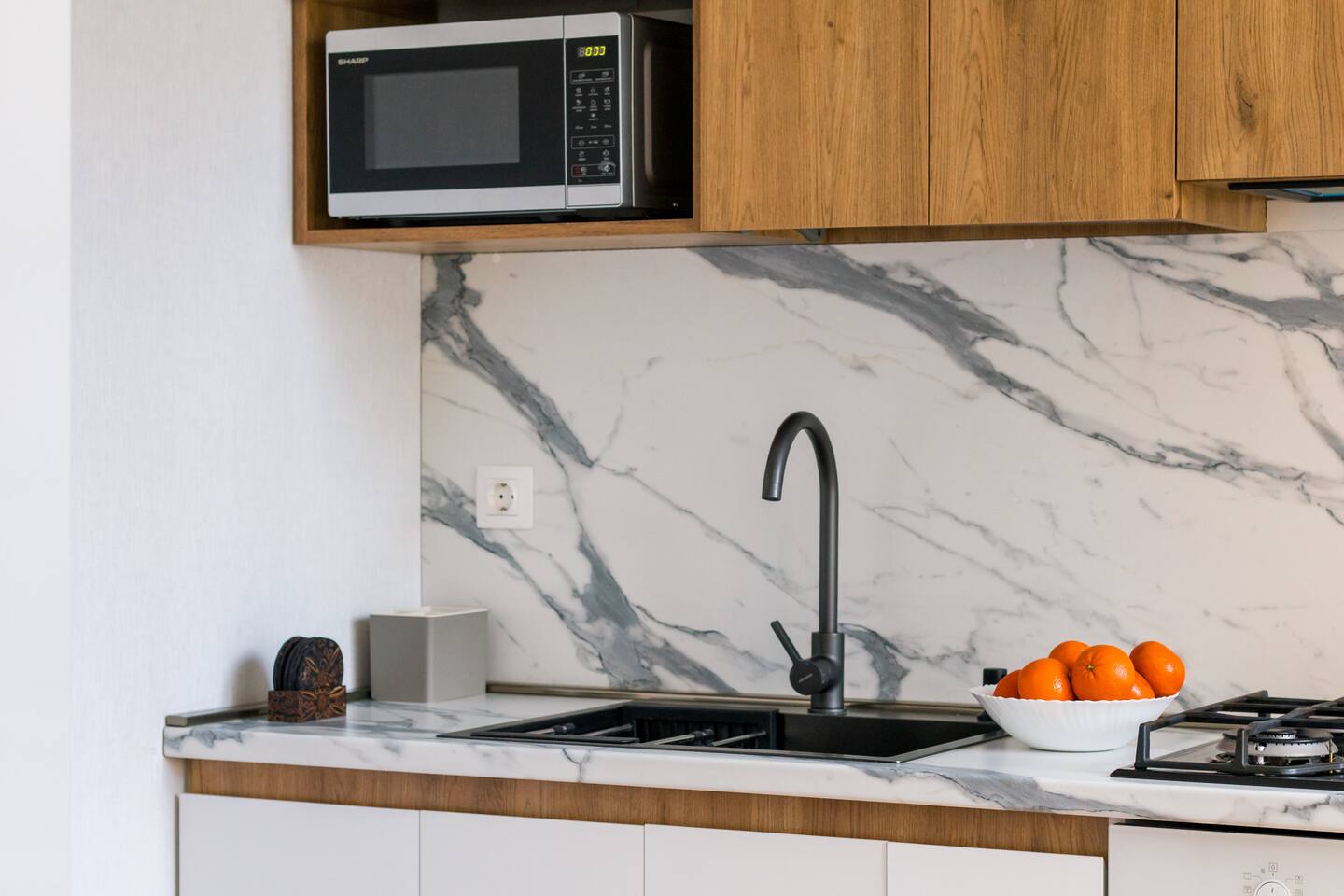 Living Room: Step into a burst of brightness and warmth with vibrant colors and cozy furnishings. Sink into the sofa, enjoy complimentary Netflix on the TV, and gather around the dining table bathed in natural light from large windows. Adorned with wall art and cushions in defined color palettes, the living room exudes comfort and style. Kitchen: Designed with custom-made elements and quality materials, the kitchen is a chef's dream. White and wooden tones complement the designer color palette, while the array of appliances – including an oven, stove, microwave, and coffee machine – ensure culinary delights. Ample storage space and a large fridge complete the ensemble. Bedroom: Experience serenity in the bright and airy bedroom, where natural light floods the space. Soft touches and thoughtful lighting create a cozy retreat, while abundant storage keeps belongings neatly tucked away. Bathroom: Indulge in luxury with a newly tiled bathroom featuring an LED cabinet mirror and a rejuvenating hot tub – the perfect place to unwind after a day of exploration. Balcony: Step out onto the balcony and soak in the surroundings with a delightful coffee-sipping experience amidst the fresh air and charming views.