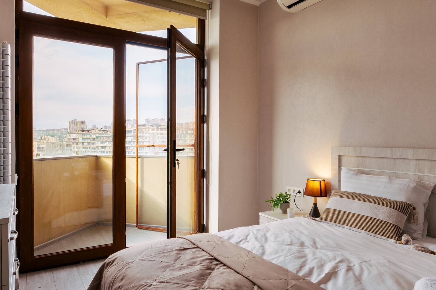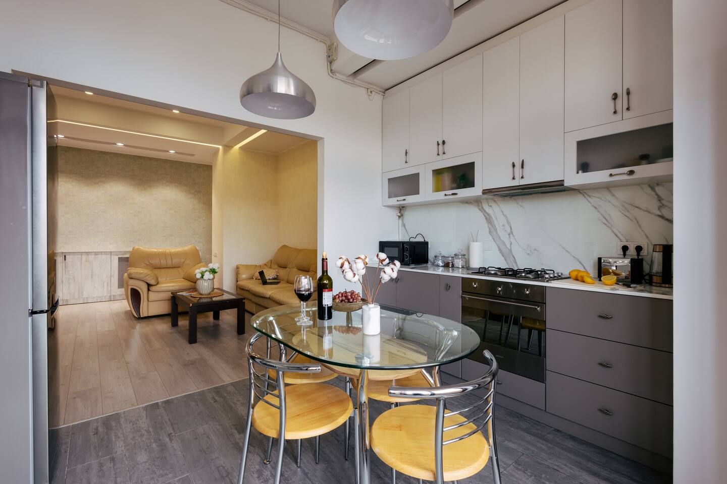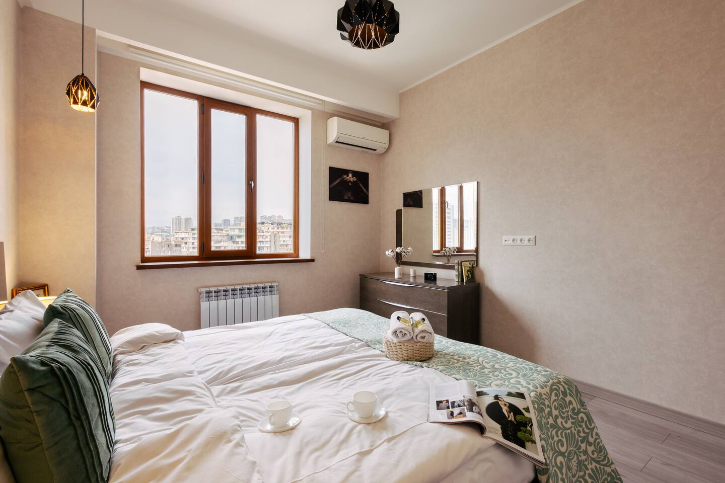 Welcome to "Aria" by Hotelise, where panoramic views and luxurious comforts define your stay on the 17th floor of Aram 86, Yerevan’s most prestigious address. Spanning a generous 150 sqm, Aria offers an expansive, thoughtfully designed space in the heart of the city. With two balconies boasting breathtaking cityscape views, this is your private retreat above it all. Living Room: Step into a spacious living area, complete with a plush sofa, cozy armchair, and a smart TV for your entertainment. The room is designed for relaxation, with ample seating and direct access to one of the balconies, letting you enjoy Yerevan’s beauty from the comfort of your living space. Air conditioning ensures year-round comfort. Kitchen and Dining: The separate, fully equipped kitchen provides everything needed for a gourmet experience, featuring a modern dining table, dishwasher, fridge, and all essential appliances, from a toaster and microwave to an oven and stove. The solid worktop and backsplash add both functionality and style, while the kitchen opens to the balcony for a seamless indoor-outdoor experience. Master Bedroom: Your main bedroom combines elegance and practicality with a king-size bed, roller blinds, and air conditioning. A walk-in wardrobe offers abundant storage space, and there’s direct access to the balcony for those quiet mornings or relaxing evenings. Various lighting options create the perfect atmosphere for any time of day. Second Bedroom: The second bedroom also features a king-size bed, a spacious walk-in wardrobe, air conditioning, and roller blinds, ensuring a restful and private space. Main Bathroom: The luxurious main bathroom is a highlight, offering a spacious layout with a bathtub, elegant tiles, a vanity unit, large mirror, and a premium shower with strong water pressure—a modern sanctuary for relaxation. Second Bathroom: The second bathroom is uniquely tiled, with a toilet, washing machine, and dryer for convenience, ensuring every amenity is at your fingertips. Balconies: Aria features two balconies, both equipped with seating, ideal for sipping a glass of wine in the evening or starting your day with a view. Each balcony brings the city’s skyline right to you, creating unforgettable moments day and night. Lounge Room: When you’re ready for a quiet break, head to the lounge room. Furnished with a comfortable sofa and an additional TV, this separate space is perfect for unwinding in privacy or enjoying a good book. At Hotelise, we pride ourselves on providing not just accommodation but a complete experience. Aria offers an elegant, spacious retreat where every detail is crafted to make your stay exceptional. Indulge in the city’s finest views, modern luxuries, and the ultimate comfort—welcome to your elevated escape in Yerevan!