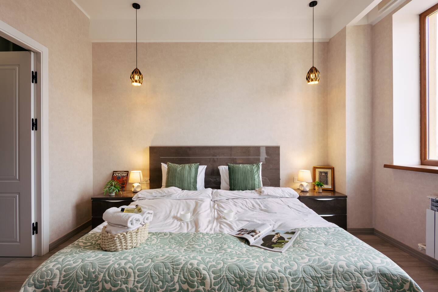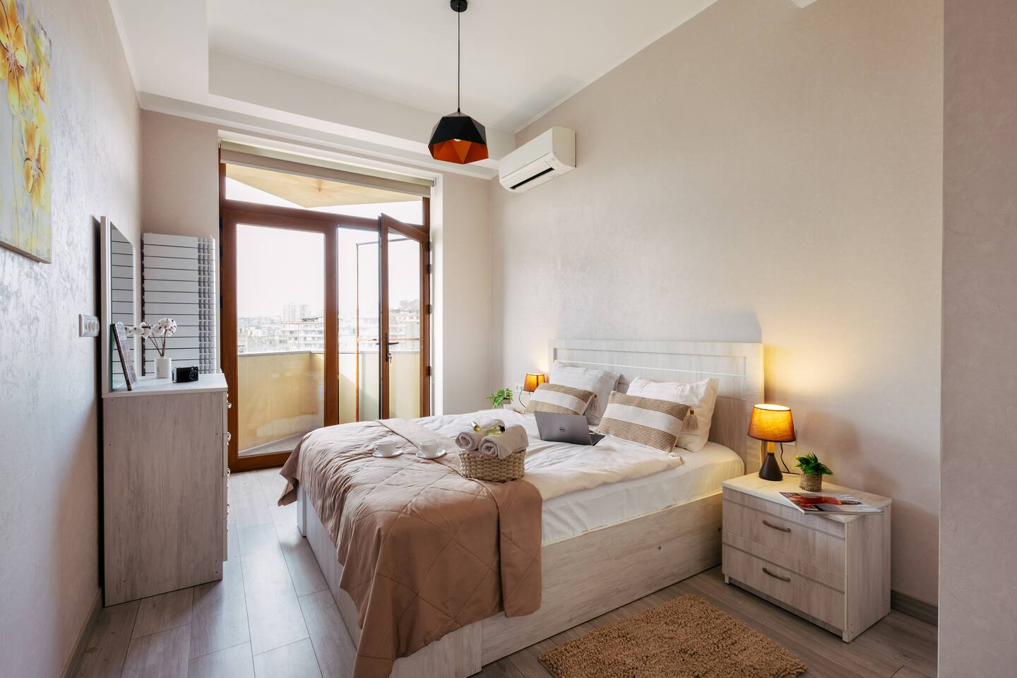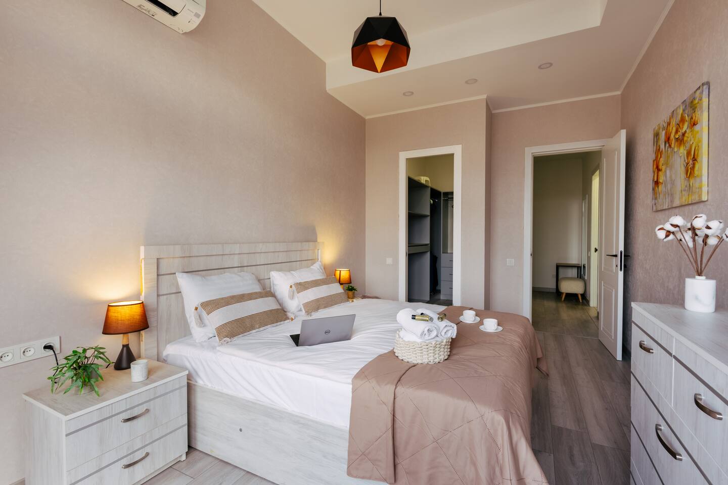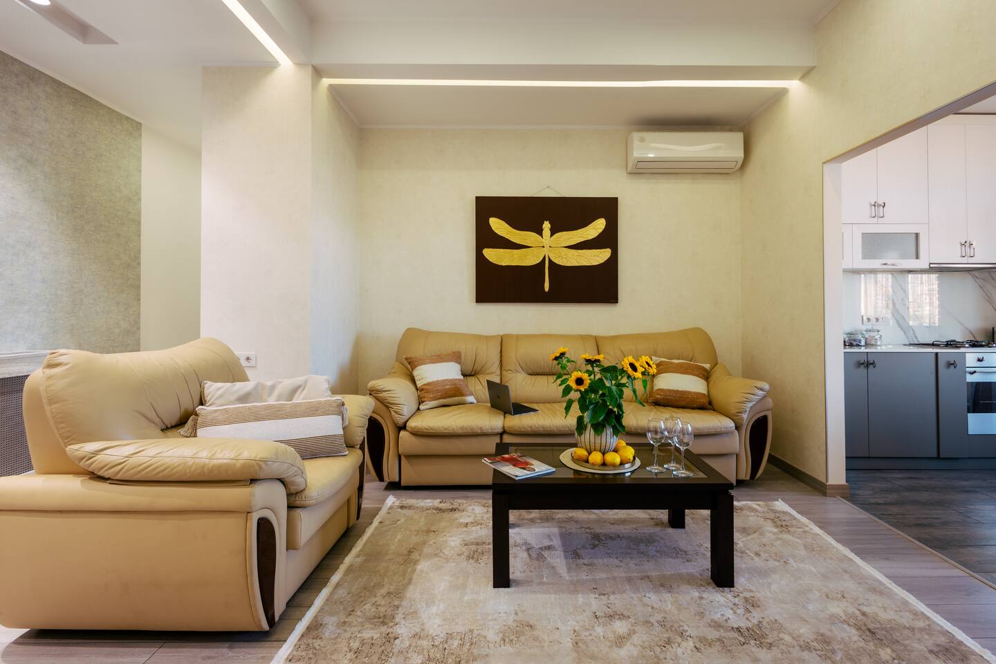 Welcome to "Aria" by Hotelise, where panoramic views and luxurious comforts define your stay on the 17th floor of Aram 86, Yerevan’s most prestigious address. Spanning a generous 150 sqm, Aria offers an expansive, thoughtfully designed space in the heart of the city. With two balconies boasting breathtaking cityscape views, this is your private retreat above it all. Living Room: Step into a spacious living area, complete with a plush sofa, cozy armchair, and a smart TV for your entertainment. The room is designed for relaxation, with ample seating and direct access to one of the balconies, letting you enjoy Yerevan’s beauty from the comfort of your living space. Air conditioning ensures year-round comfort. Kitchen and Dining: The separate, fully equipped kitchen provides everything needed for a gourmet experience, featuring a modern dining table, dishwasher, fridge, and all essential appliances, from a toaster and microwave to an oven and stove. The solid worktop and backsplash add both functionality and style, while the kitchen opens to the balcony for a seamless indoor-outdoor experience. Master Bedroom: Your main bedroom combines elegance and practicality with a king-size bed, roller blinds, and air conditioning. A walk-in wardrobe offers abundant storage space, and there’s direct access to the balcony for those quiet mornings or relaxing evenings. Various lighting options create the perfect atmosphere for any time of day. Second Bedroom: The second bedroom also features a king-size bed, a spacious walk-in wardrobe, air conditioning, and roller blinds, ensuring a restful and private space. Main Bathroom: The luxurious main bathroom is a highlight, offering a spacious layout with a bathtub, elegant tiles, a vanity unit, large mirror, and a premium shower with strong water pressure—a modern sanctuary for relaxation. Second Bathroom: The second bathroom is uniquely tiled, with a toilet, washing machine, and dryer for convenience, ensuring every amenity is at your fingertips. Balconies: Aria features two balconies, both equipped with seating, ideal for sipping a glass of wine in the evening or starting your day with a view. Each balcony brings the city’s skyline right to you, creating unforgettable moments day and night. Lounge Room: When you’re ready for a quiet break, head to the lounge room. Furnished with a comfortable sofa and an additional TV, this separate space is perfect for unwinding in privacy or enjoying a good book. At Hotelise, we pride ourselves on providing not just accommodation but a complete experience. Aria offers an elegant, spacious retreat where every detail is crafted to make your stay exceptional. Indulge in the city’s finest views, modern luxuries, and the ultimate comfort—welcome to your elevated escape in Yerevan!