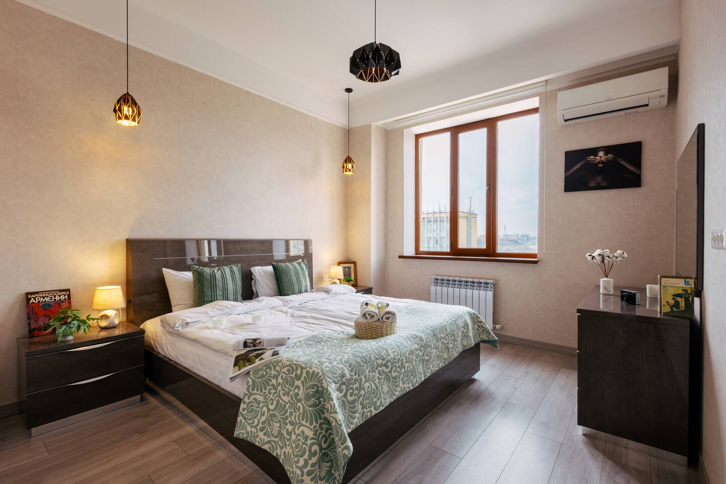 ☆ Welcome to “Aria” by Hotelise: an expansive escape with sweeping views from the 17th floor of a luxurious, on Aram St. ✓ 24/7 Self Check-in ✓ Most Lux Building ✓ Modern Lifts ✓ 17/22 floor ✓ Balcony X 2 ✓ Park+Fountains ✓ 2 Bathrooms ✓ ACs ✓ 150sqm ✓ Smart TV & IPTV ✓ Premium Bathrooms ✓ High-speed 200 Mbit WiFi ✓ Washer + Dryer ✓ Fully-equipped kitchen /w Dishwasher ✓ Luxury hotel toiletries ✓ Fresh linens & plush towels ♥ At hotelise we are creating memories one stay at a time!