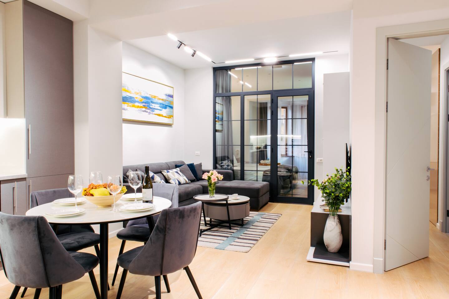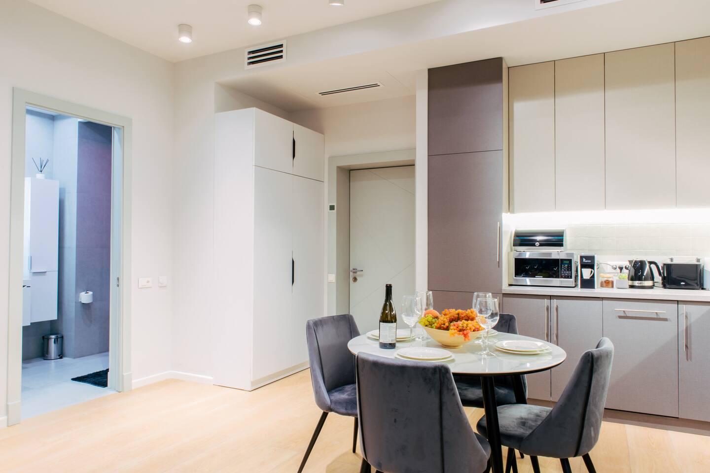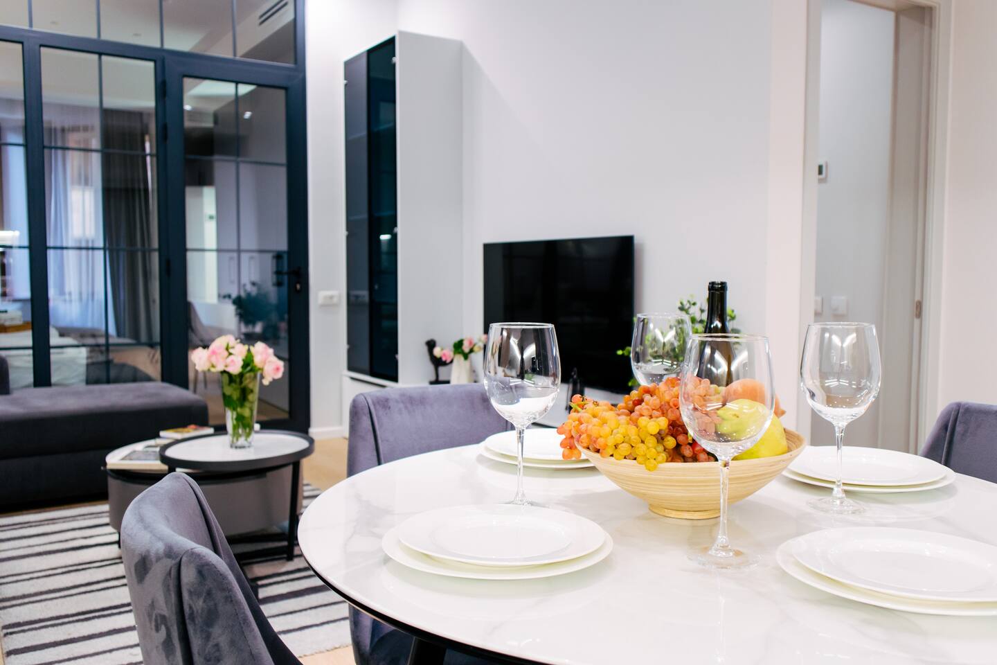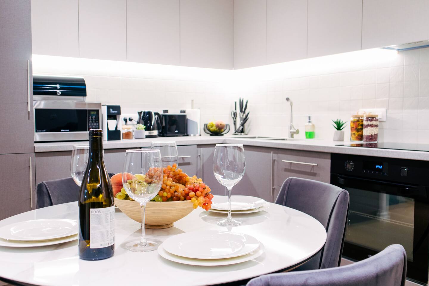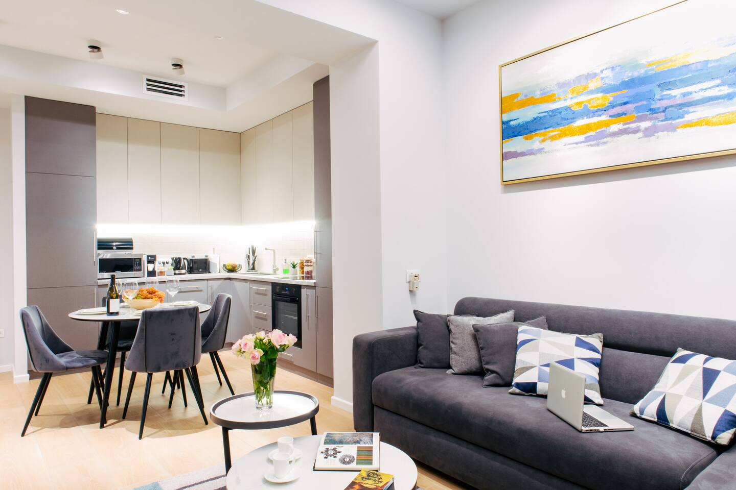 1. There will be an additional 'linen' charge for those who use a sofa-bed and/or travel cot. Guests must request an extra sleeping place before booking. 2. The apartment will have Starter Luxury Hotel Toiletries, fresh linen and towels. Stays that are longer than 20 nights will receive fresh linen and towels, starting on the 10th day from arrival. You can request additional cleaning, but there will be an extra charge for this service. 3. A starter supply of household cleaning and hygiene products will be available on the property for use as well as tea, coffee and water to get you through your first morning. The guest is responsible for purchasing any additional supplies 4. Please note, If you need a FREE early check-in or late checkout, we can only confirm if it is available the same day of your check-in/check-out, as it depends on if there are other reservations back to back with yours. 5. If the listing mentions Netflix or other streaming platforms, it refers only to the availability of the app on the smart TV. We no longer provide shared or corporate accounts. Guests must log in with their subscription after check-in.