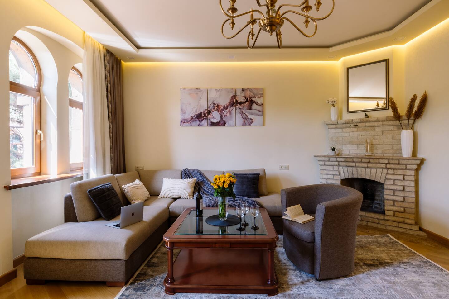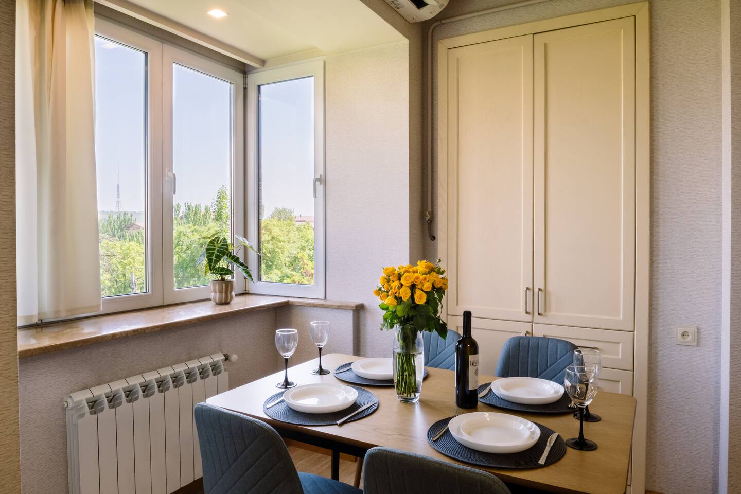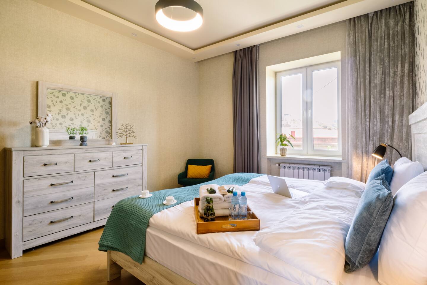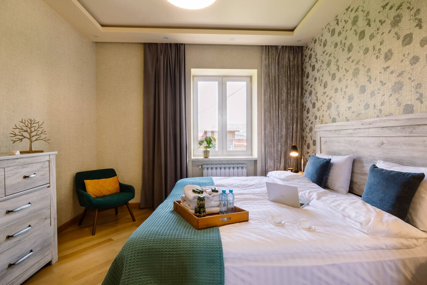 Situated at Baghramyan 26, Aurora by Hotelise boasts a prime location in the heart of Yerevan's most iconic neighbourhood. This address offers a unique blend of tranquillity and sophistication, adjacent to a historical, one-of-a-kind block and surrounded by lush private gardens. Building & Neighborhood: Aurora resides within a red stone block, a historic gem that exudes timeless grandeur and architectural splendour. The building stands as a testament to the city's rich heritage, offering an exclusive and elegant retreat. Surrounded by private gardens, it provides a peaceful oasis amidst the vibrant city life. Living Room: Step into the spacious living room, adorned with classic furnishings and flooded with natural light. The large L-shaped sofa provides ample seating, complemented by a large coffee table and a brick firestone that adds character to the space. Enjoy movie nights with the Smart TV equipped with complimentary Netflix. Kitchen: The separate kitchen is a chef's delight, featuring a spacious layout and modern amenities. Equipped with an oven, stove, microwave, coffee machine, and toaster, it offers everything you need to whip up culinary delights. Ample storage cabinets ensure functionality and convenience. Bedroom: Retreat to the large bedroom, where a king-size bed awaits with a premium mattress for a restful night's sleep. The room is bathed in natural light and features blackout curtains for privacy and comfort. Ample storage space is provided by the chest of drawers and wardrobe. Bathroom: Indulge in the luxurious bathroom, complete with modern fixtures and amenities. The sleek tiled walls, LED mirror, and spacious shower cabin create a serene atmosphere for relaxation. A washer is also available for added convenience. Experience the allure of Aurora by Hotelise – where historic charm meets modern luxury in the heart of Yerevan. Book your stay now for an unforgettable experience.