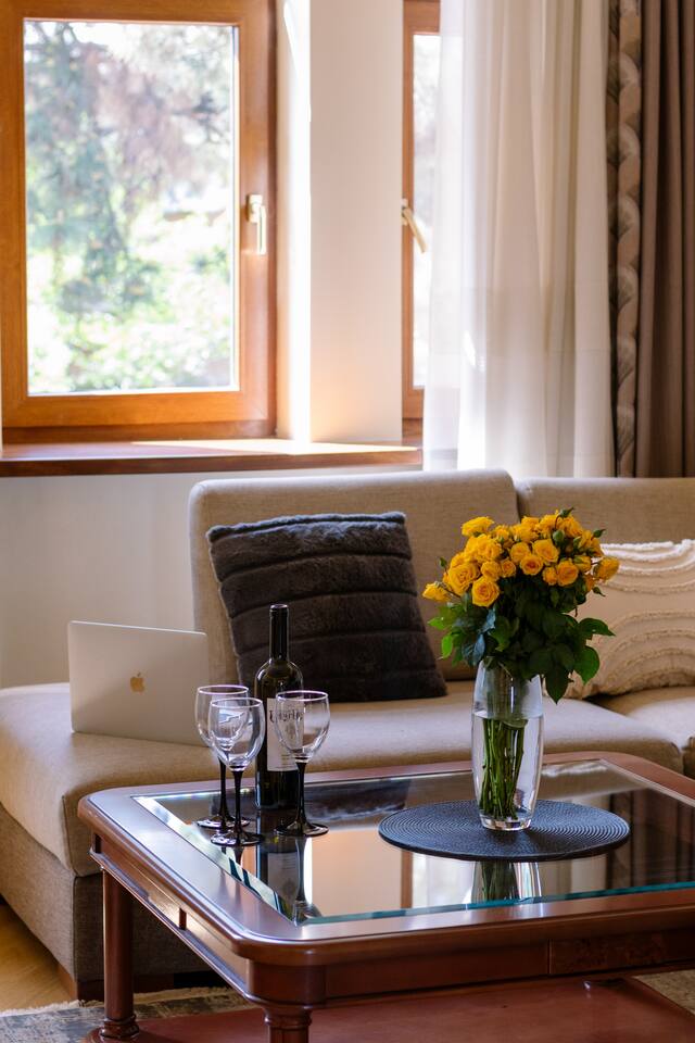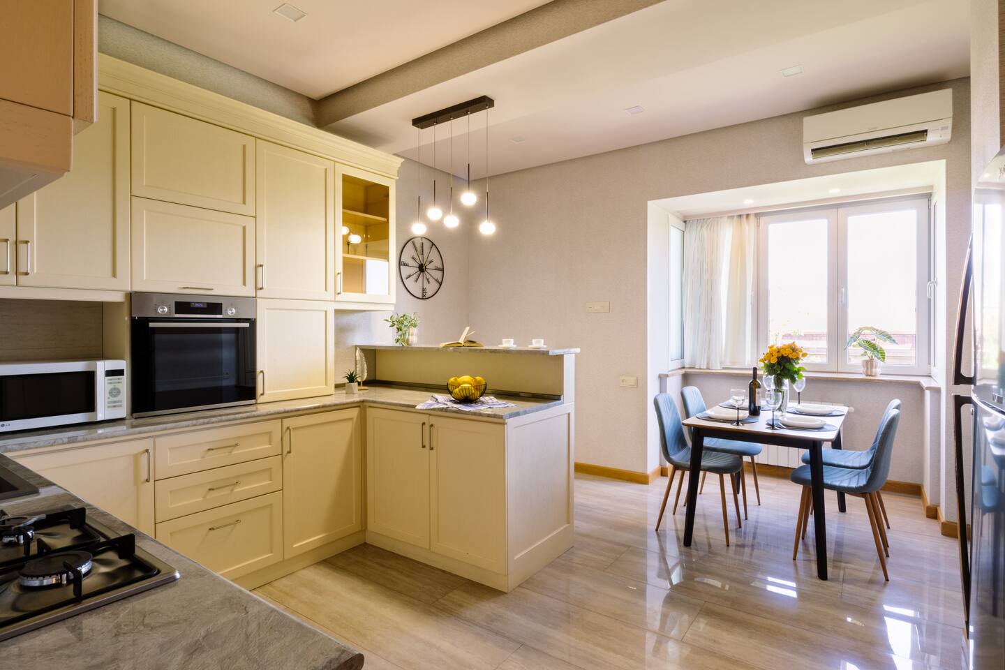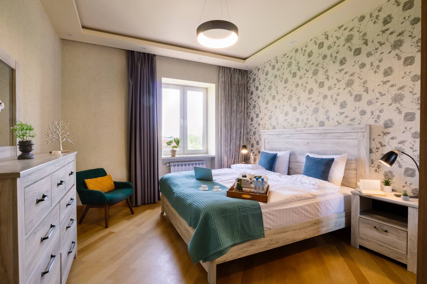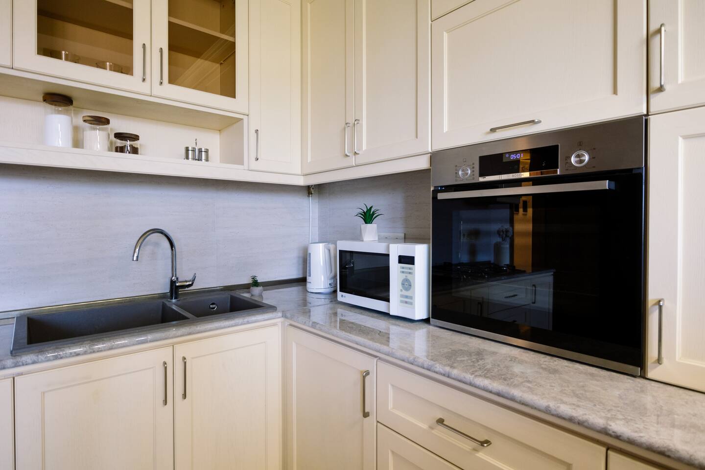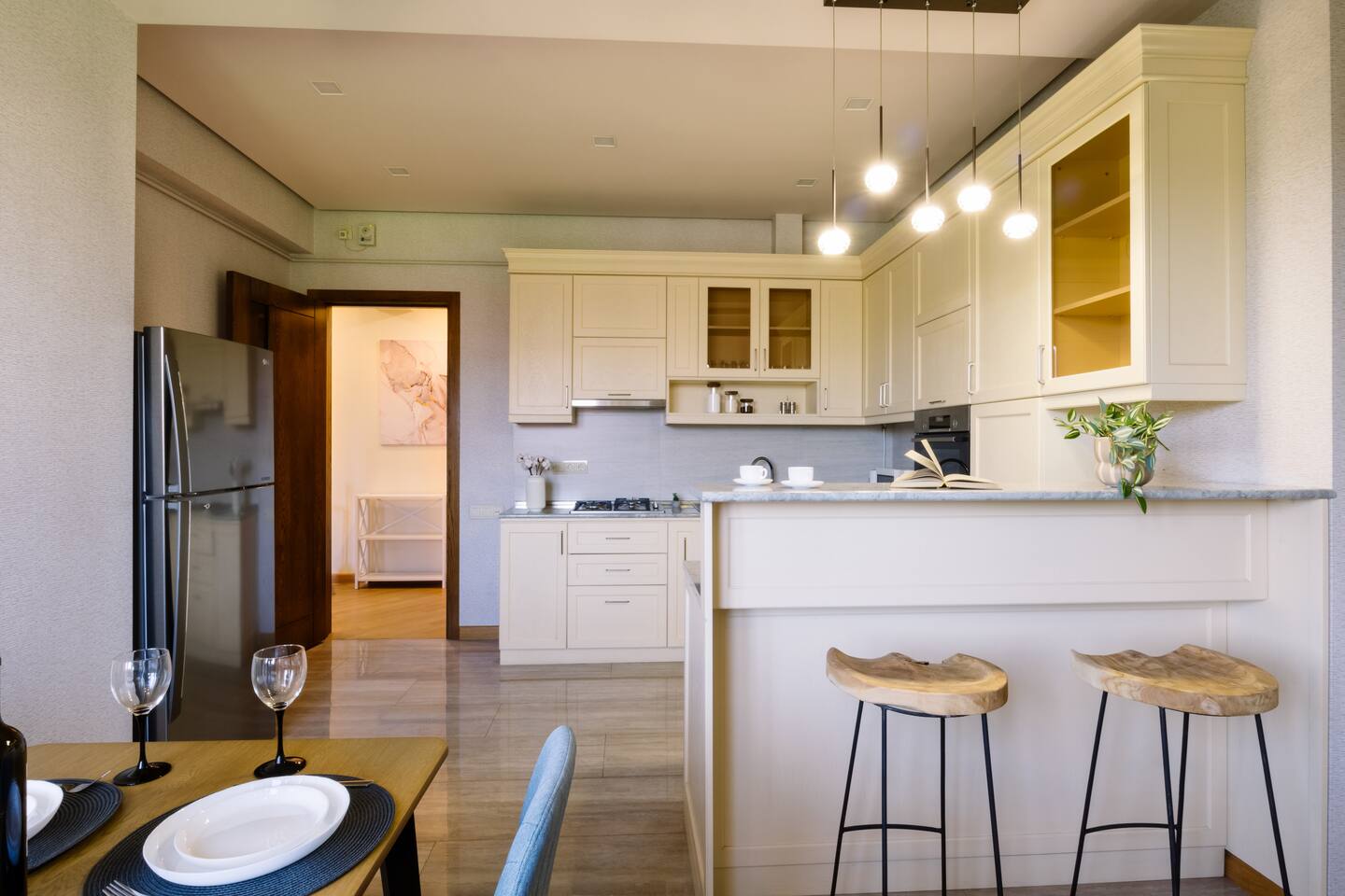 Situated at Baghramyan 26, Aurora by Hotelise boasts a prime location in the heart of Yerevan's most iconic neighbourhood. This address offers a unique blend of tranquillity and sophistication, adjacent to a historical, one-of-a-kind block and surrounded by lush private gardens. Building & Neighborhood: Aurora resides within a red stone block, a historic gem that exudes timeless grandeur and architectural splendour. The building stands as a testament to the city's rich heritage, offering an exclusive and elegant retreat. Surrounded by private gardens, it provides a peaceful oasis amidst the vibrant city life. Living Room: Step into the spacious living room, adorned with classic furnishings and flooded with natural light. The large L-shaped sofa provides ample seating, complemented by a large coffee table and a brick firestone that adds character to the space. Enjoy movie nights with the Smart TV equipped with complimentary Netflix. Kitchen: The separate kitchen is a chef's delight, featuring a spacious layout and modern amenities. Equipped with an oven, stove, microwave, coffee machine, and toaster, it offers everything you need to whip up culinary delights. Ample storage cabinets ensure functionality and convenience. Bedroom: Retreat to the large bedroom, where a king-size bed awaits with a premium mattress for a restful night's sleep. The room is bathed in natural light and features blackout curtains for privacy and comfort. Ample storage space is provided by the chest of drawers and wardrobe. Bathroom: Indulge in the luxurious bathroom, complete with modern fixtures and amenities. The sleek tiled walls, LED mirror, and spacious shower cabin create a serene atmosphere for relaxation. A washer is also available for added convenience. Experience the allure of Aurora by Hotelise – where historic charm meets modern luxury in the heart of Yerevan. Book your stay now for an unforgettable experience.