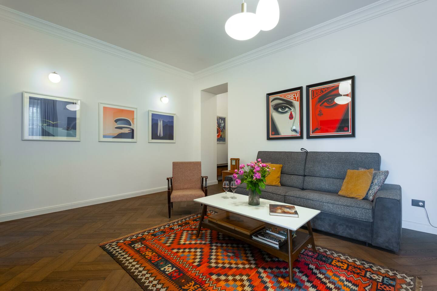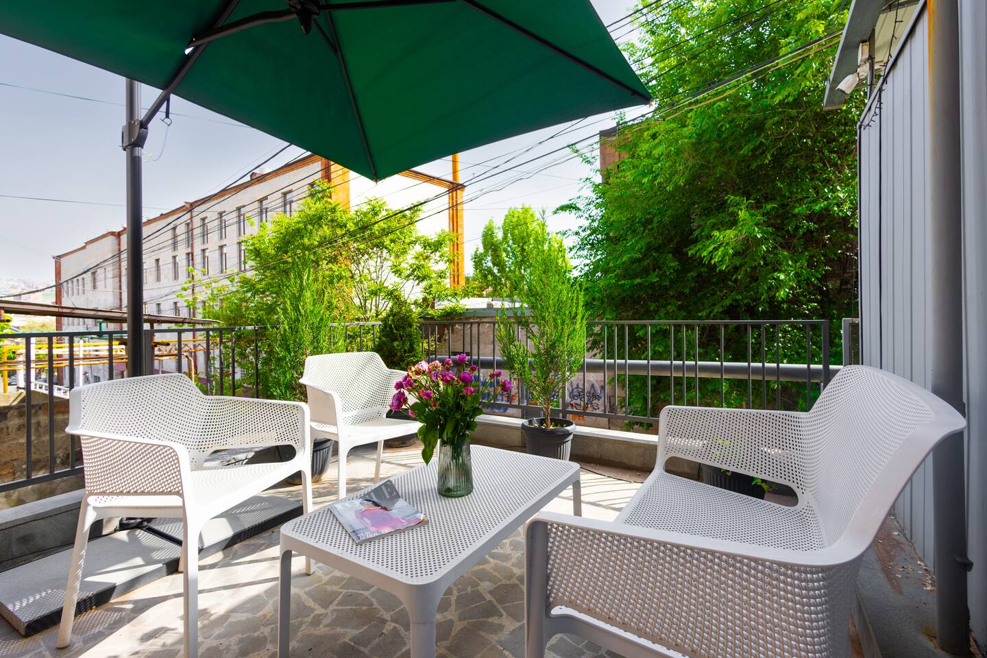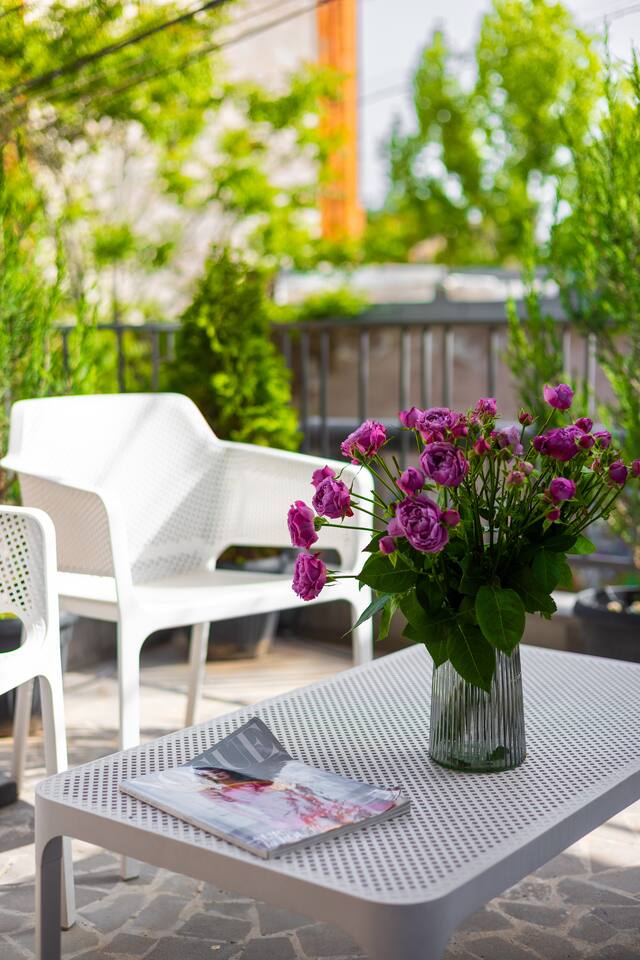 Step into our cherished haven, a testament to love, care, and serenity. This space emanates tranquility, comfort, and personality, adorned with captivating relics like vintage radios, mid-century furniture, and intriguing posters. But the true enchantment lies in its location – a mere stroll to the Cascade, Yerevan's iconic gem, harmoniously nestled amidst the city's vibrant rhythm. Relax in the open-plan living room, graced by a queen-size sofa bed. The fully equipped kitchen and inviting dining area encourage shared moments. Plus, on clear days, enjoy the majestic view of Mount Ararat – from both the sofa and the terrace.