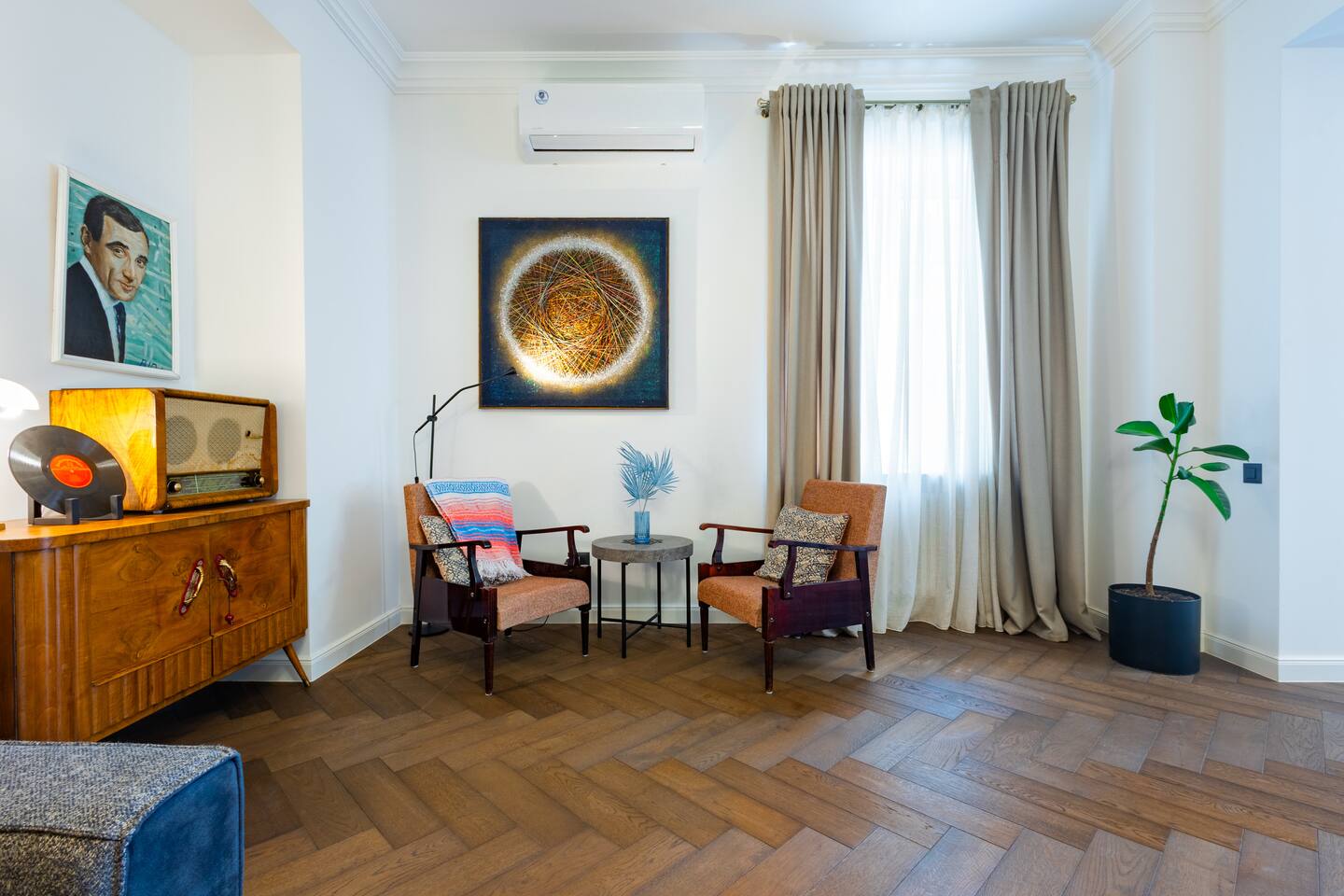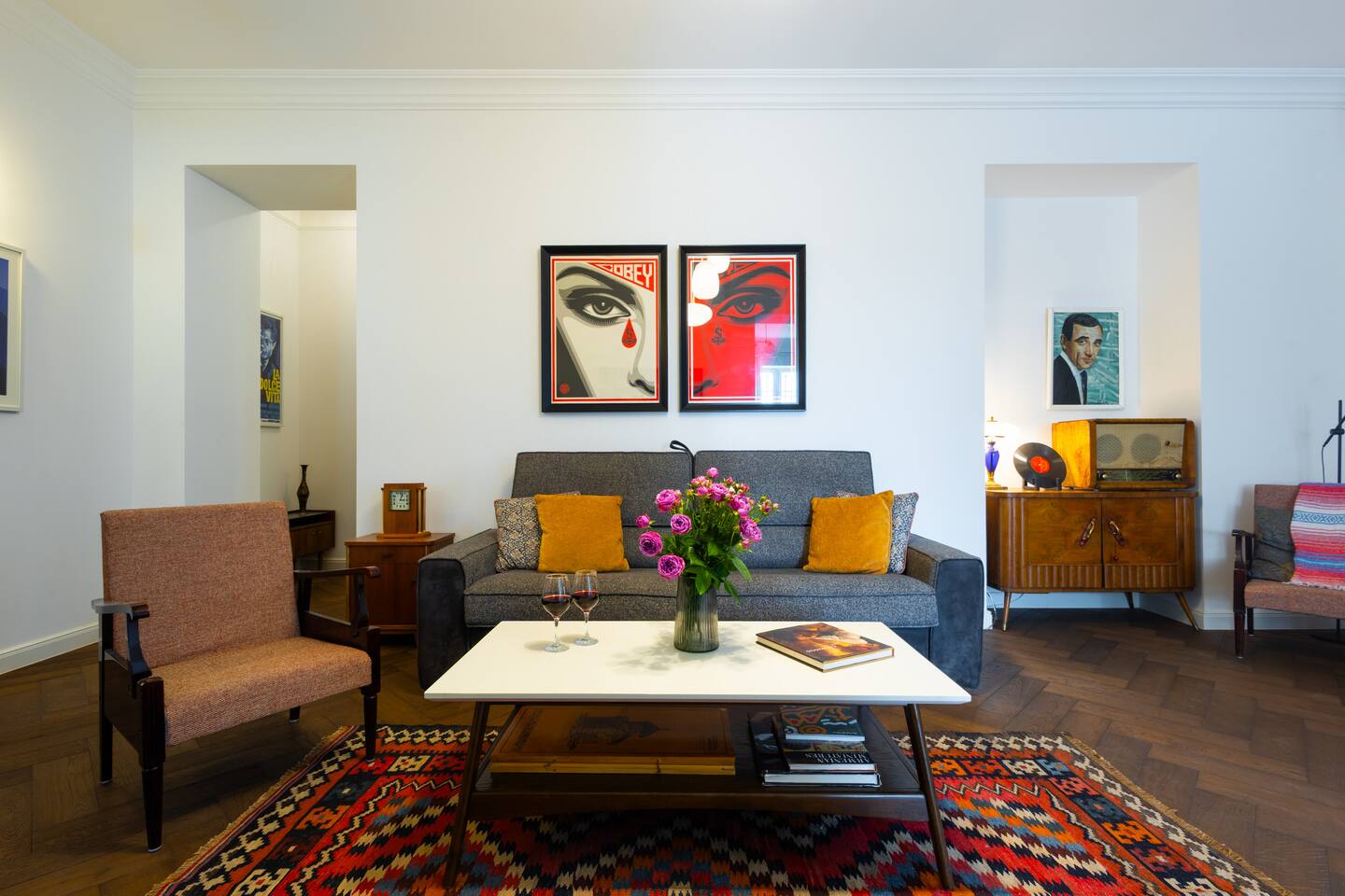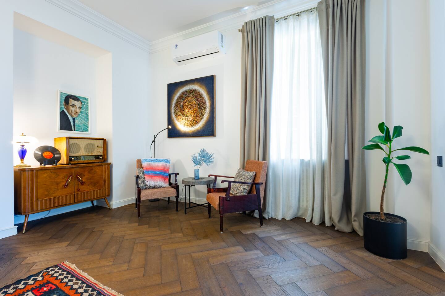 Step into our cherished haven, a testament to love, care, and serenity. This space emanates tranquility, comfort, and personality, adorned with captivating relics like vintage radios, mid-century furniture, and intriguing posters. But the true enchantment lies in its location – a mere stroll to the Cascade, Yerevan's iconic gem, harmoniously nestled amidst the city's vibrant rhythm. Relax in the open-plan living room, graced by a queen-size sofa bed. The fully equipped kitchen and inviting dining area encourage shared moments. Plus, on clear days, enjoy the majestic view of Mount Ararat – from both the sofa and the terrace.