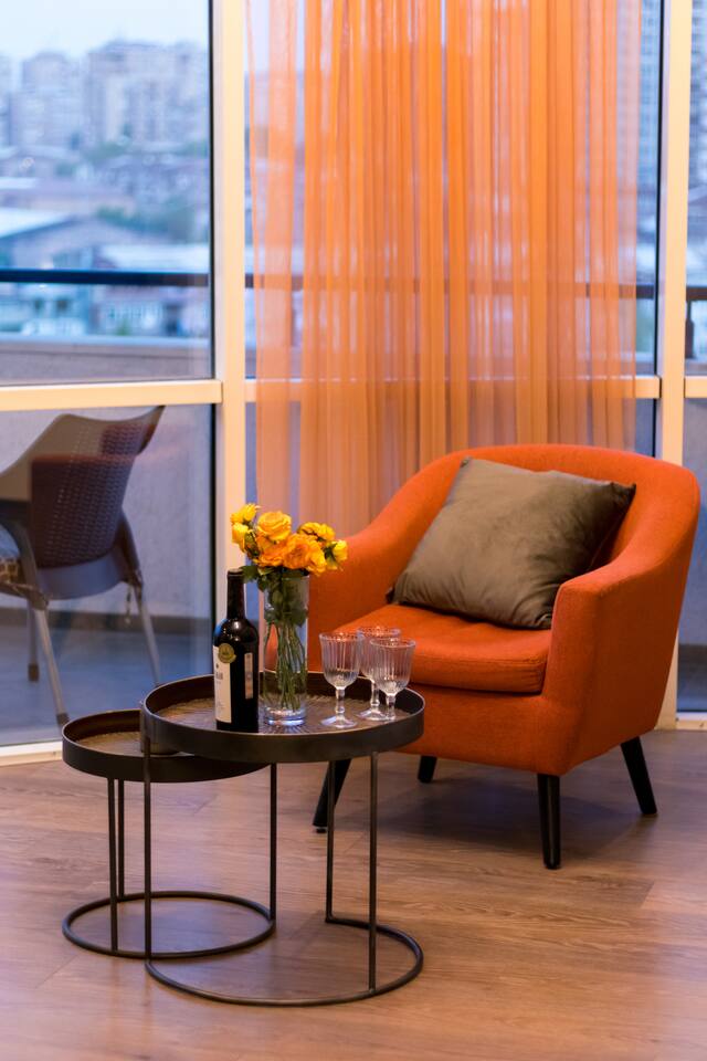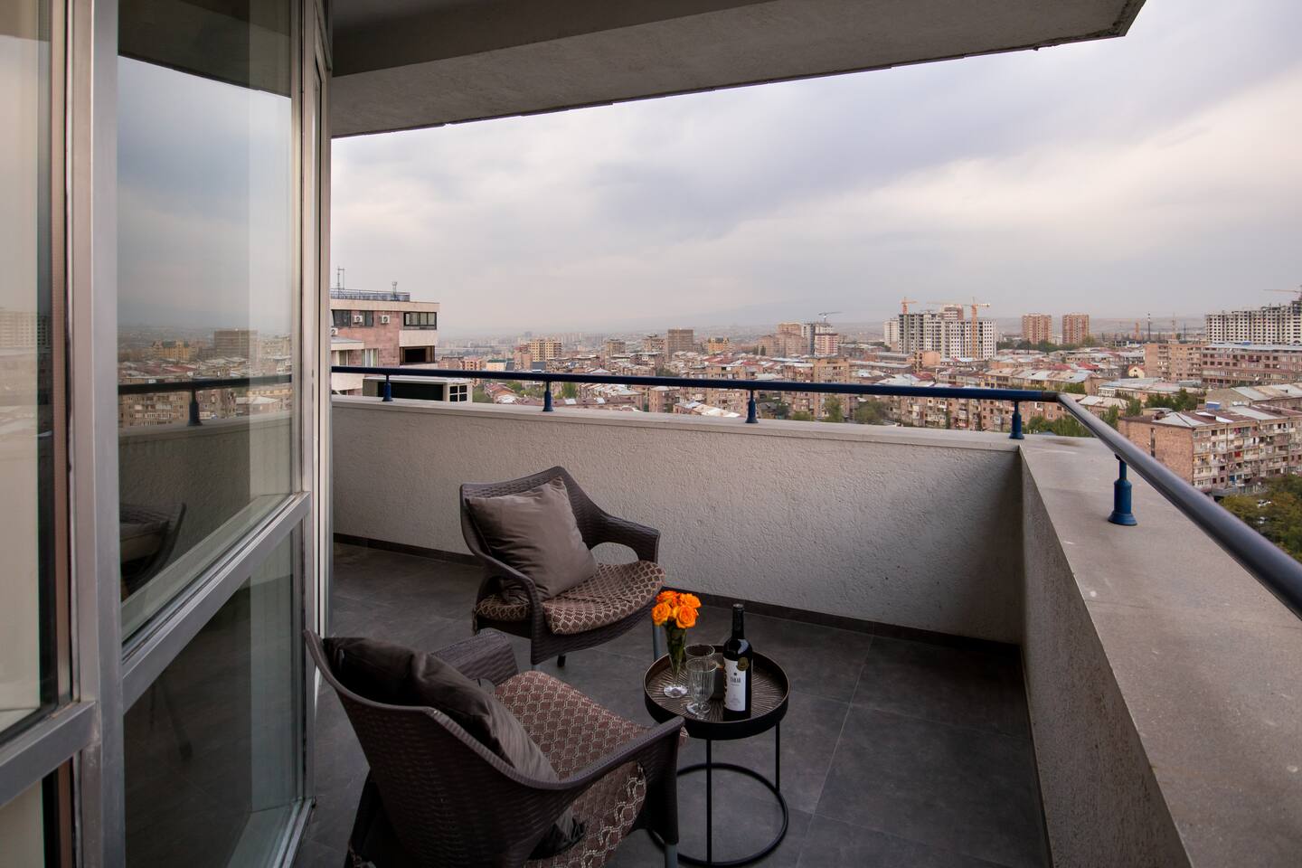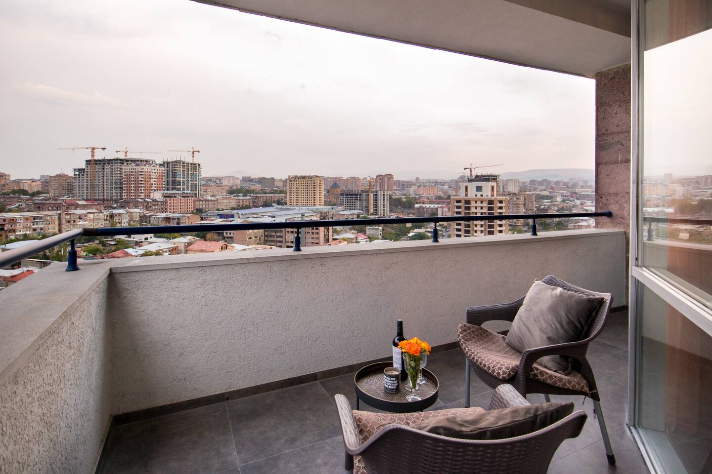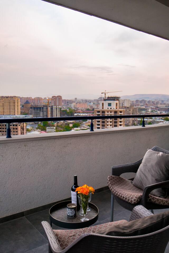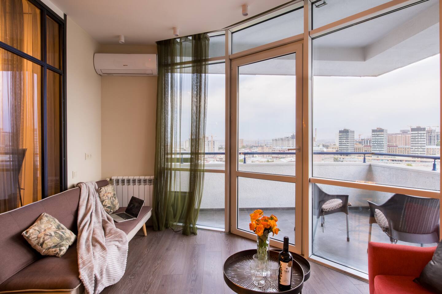 Add my listing to your wishlist by clicking the ♥ in the upper-right corner: ◦ 24/7 Self Checkin ◦ 15/15 floor ◦ 63m2 ◦ Balcony and view to DIE for ◦ Marshall Sound System ♫♫ ◦ Designer Made and Furnished ◦ TV, WIFI ☆ "This home is a must stay!!" ◦ Fully equipped +stocked kitchen ☆ Nice neighbourhood, between Komitas and Manument. cafes and supermarkets, evening walks in the local park. It takes 7 min on taxi to city center, and 25 min walk to heart of cascade.