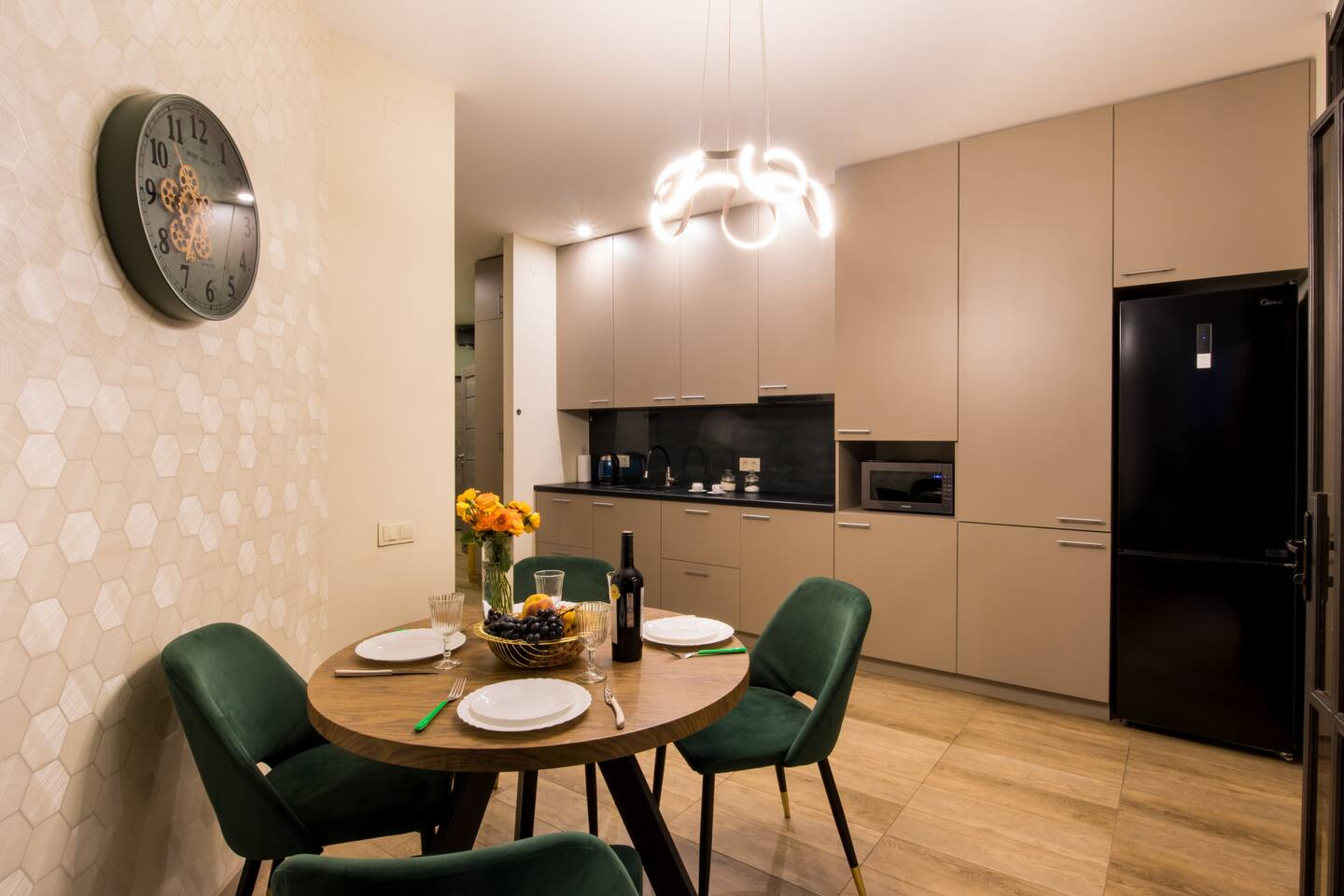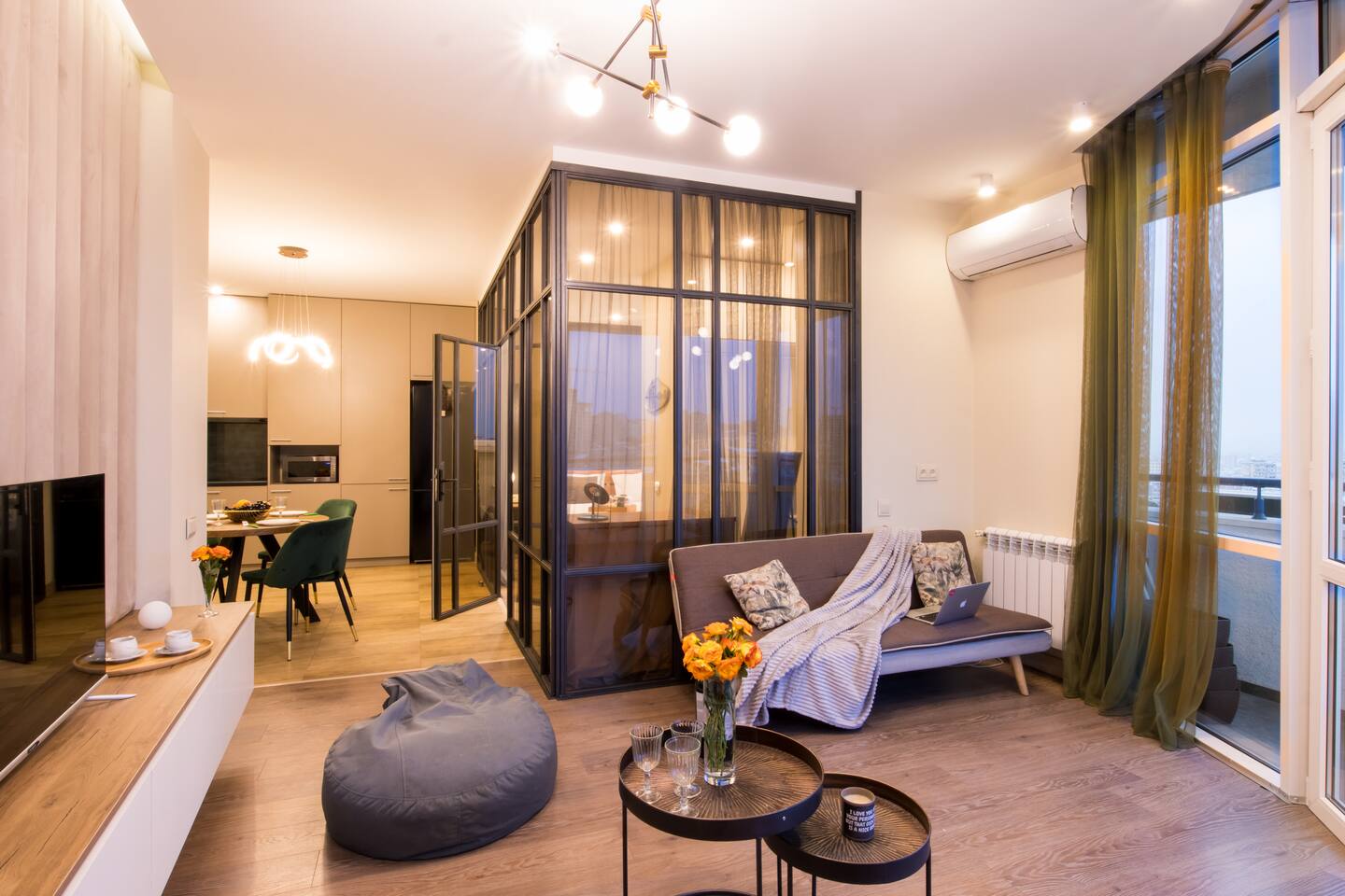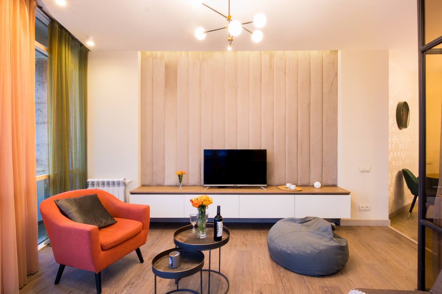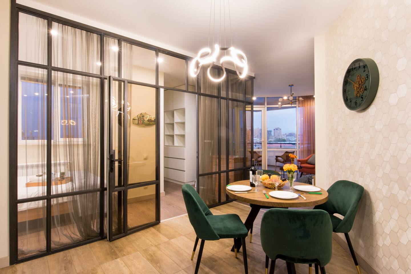Add my listing to your wishlist by clicking the ♥ in the upper-right corner: ◦ 24/7 Self Checkin ◦ 15/15 floor ◦ 63m2 ◦ Balcony and view to DIE for ◦ Marshall Sound System ♫♫ ◦ Designer Made and Furnished ◦ TV, WIFI ☆ "This home is a must stay!!" ◦ Fully equipped +stocked kitchen ☆ Nice neighbourhood, between Komitas and Manument. cafes and supermarkets, evening walks in the local park. It takes 7 min on taxi to city center, and 25 min walk to heart of cascade.
