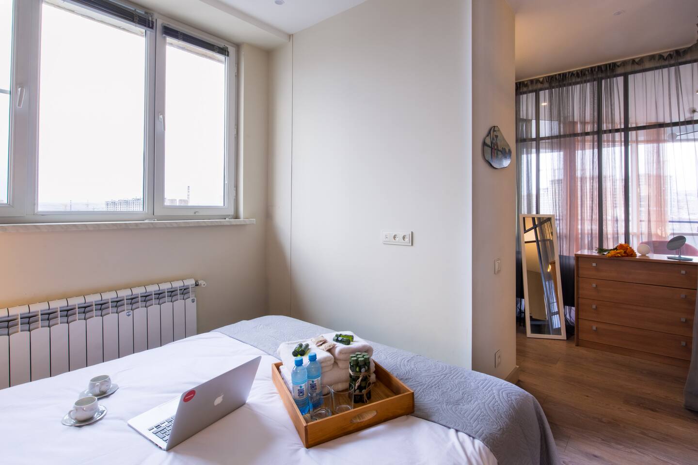 Property is located on the 15th floor in a new development area, famous for its iconic design visible from different parts of Yerevan. Neighbourhood is very safe, it is intersection of area called Komitas and area called Monument. It has a small lovely park just 1 min away. Also, famous Komitas food market is 5 minutes away, and is featuring lots of local organic produce. Building has concierge, and parking. Taxi cost 1 euro to the city centre, but I personally enjoy walk to cascade via famous cascade stairs, and it takes me around 25 min. Finally, make sure to ask me about food, music and nightlife scene in Yerevan I can help with recommendations and guest lists:)