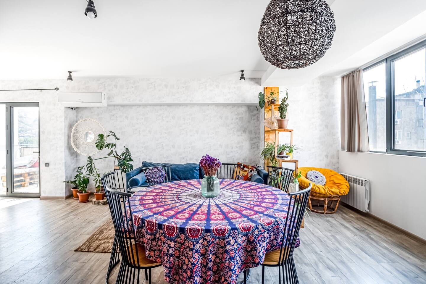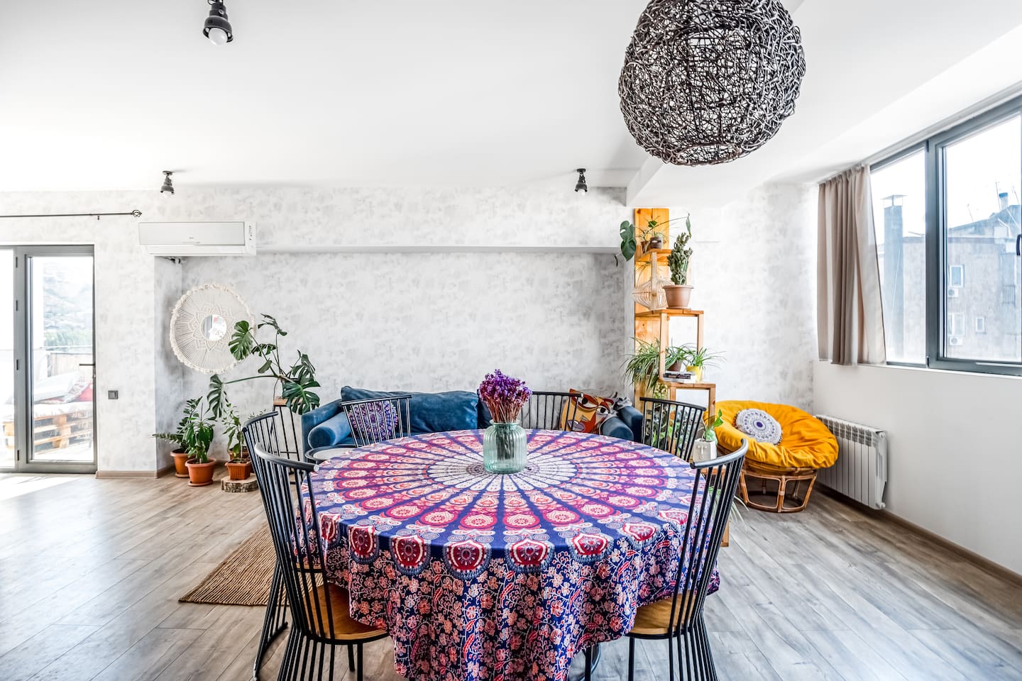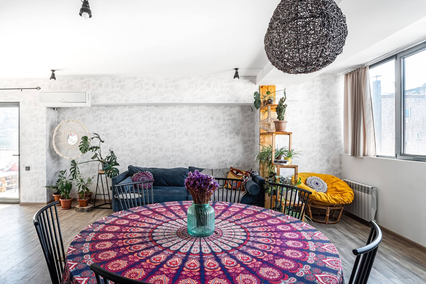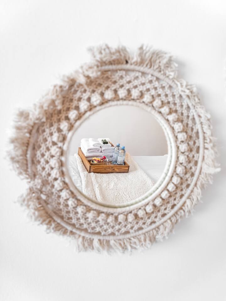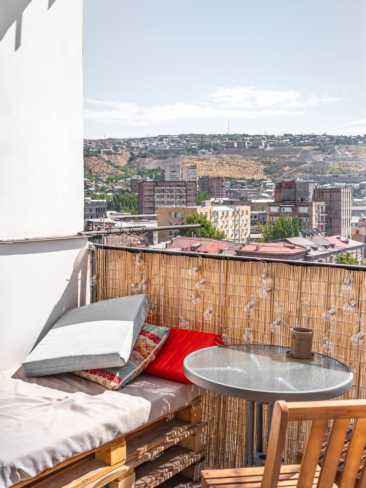 Is it a Bungalow in Greece or Villa in Bali? That is the question. Combining the premium amenities with the space and privacy of a home, this beautiful apartment offers the epitome of bohemian design, with a feeling of freedom and calmness in every corner. Supplied with premium linen and towel sets as well as an organic hotel quality amenities bundle. Located in the vibrant city centre seconds walk from famous swan lake. This stylish, designer made two-bedroom apartment boasts a lovely open plan living/dining area which also features a fully equipped kitchen and access to a superb balcony, so you can enjoy al fresco dining. Your private apartment is just part of the package; don't forget about the great team that will be supporting you throughout your stay in case you need anything! We provide 24-hour assistance to our guests and are always happy to share our fav spots in Yerevan and Armenia. A cot is available upon request.