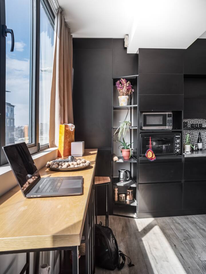 Kick back and relax in this calm, stylish space. But first, add my listing to your wishlist by clicking the ♥ in the upper-right corner: ◦ 24/7 Self Checkin ◦ 11/12 floor with lift ◦ 80m2 ◦ A/C in Living Room and Master Bedroom ◦ Balcony with Awesome Views ◦ Bluetooth Speaker ♫♫ ◦ Designer Made and Furnished ◦ Smart TV, 42 Inch ◦ 100Mbpts WIFI ☆ "This home is a must stay!!" ◦ Fully equipped + stocked kitchen ◦ Fresh Linens and towels ◦ Starter Luxury Hotel Toiletries
