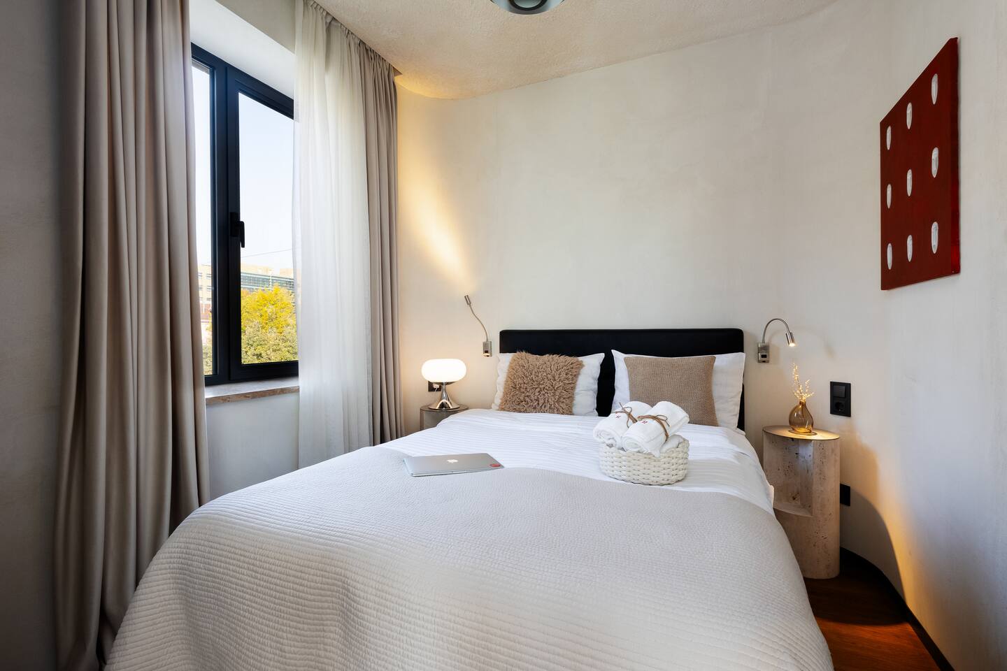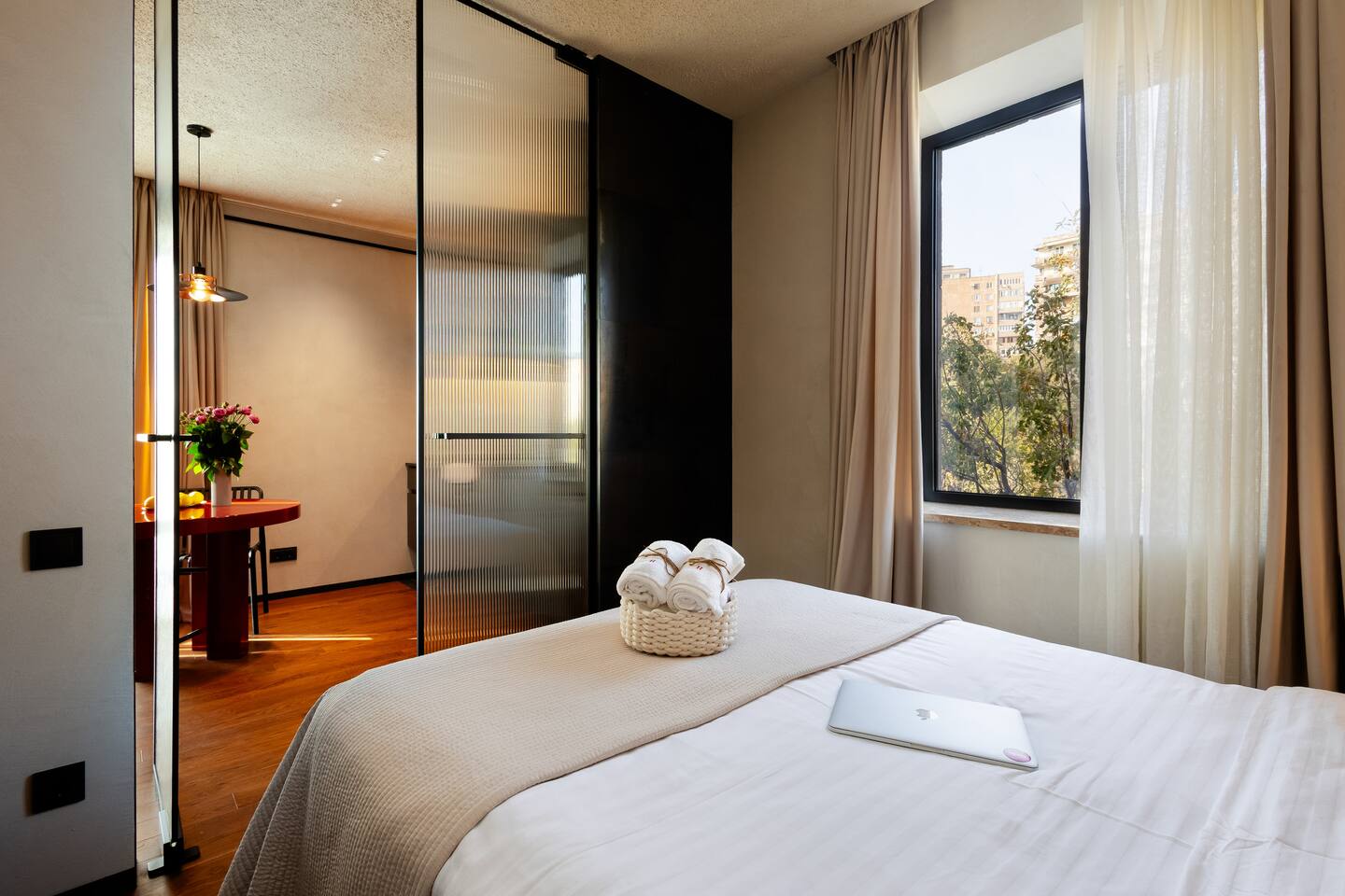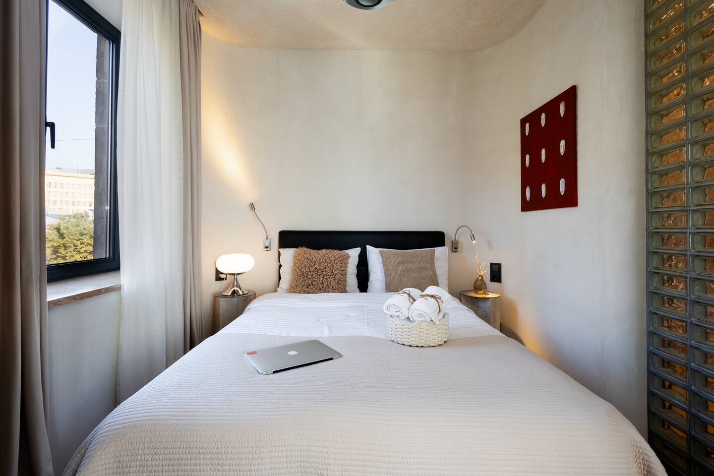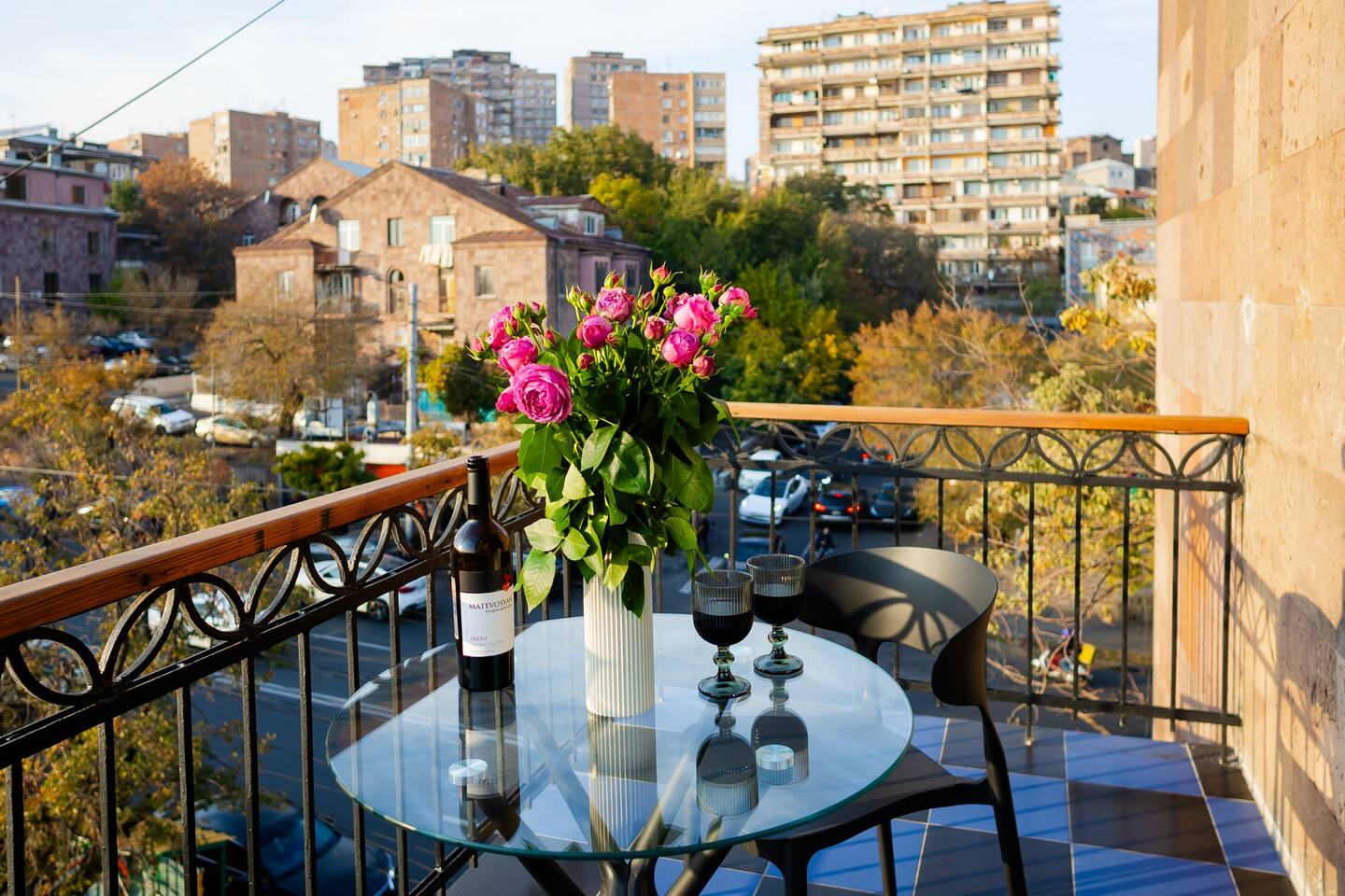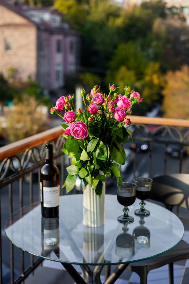 Situated at Baghramyan 33a, "Bourgeois" by Hotelise offers a refined stay in one of Yerevan’s most desirable addresses. Just a few steps from Lovers Park, the apartment is perfectly positioned in a quiet yet central neighbourhood surrounded by embassies, government buildings, and leafy boulevards. Building & Neighbourhood: Bourgeois is located on the 4th floor of a well-maintained 5-storey residential building, a stone’s throw from the lush Lovers Park and a short walk to Marshal Baghramyan metro station. The area is one of the safest and most peaceful in Yerevan, nestled among historical architecture and serene green spaces, yet just minutes from the vibrant city centre.