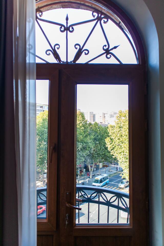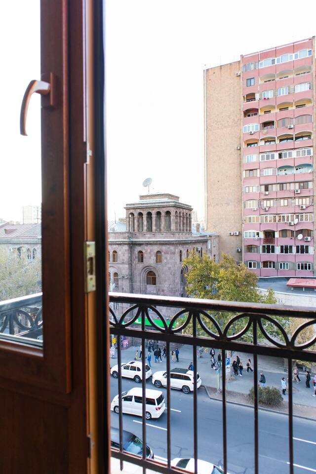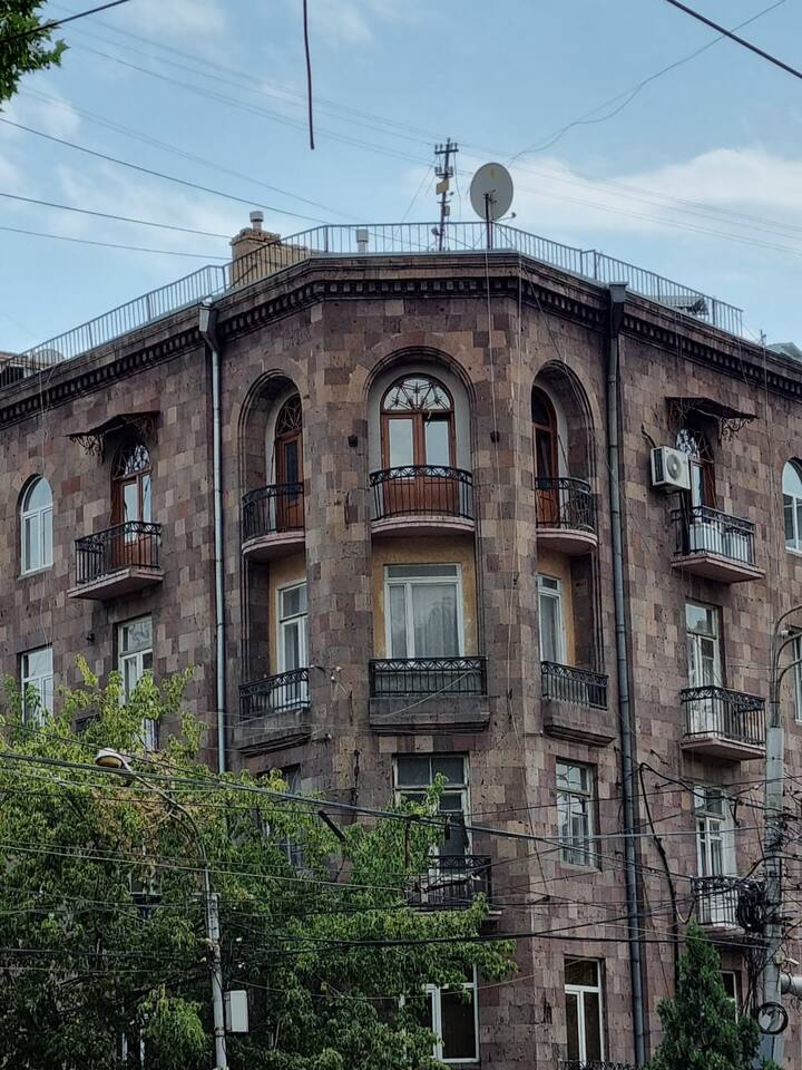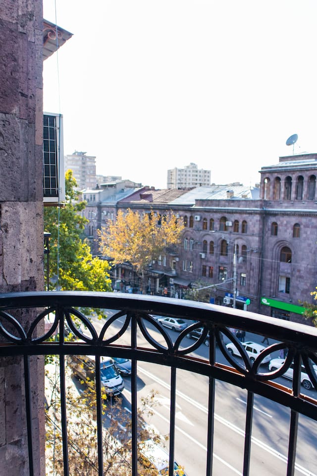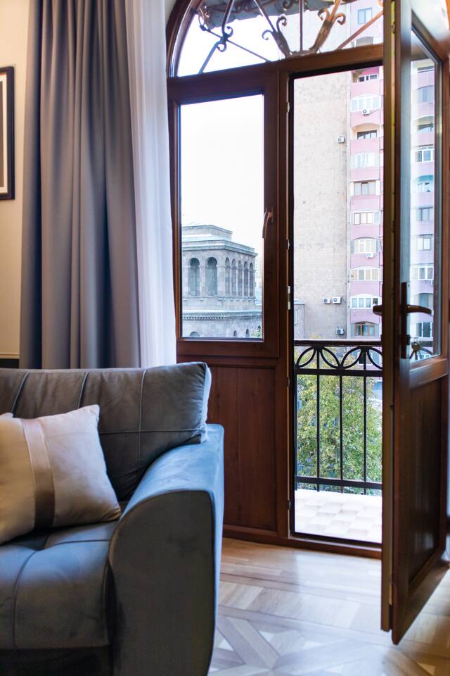 In the historical building with balcony and minutes away from Saryan street and Boulevard park. ◦ 24/7 Self Checkin ◦ 5 Balconies ◦ Spacious 62 Sqm ◦ 5/5 Floor, must climb stairs ◦ Brand New & Designer Made ◦ 55inch Smart TV ☆ This home is a must-stay! ◦ Fully Equipped + Stocked Kitchen ◦ Wifi And Netflix ◦ Washer ◦ High-speed WIFI ◦ Fresh Linens And Towels ◦ Starter Luxury Hotel Toiletries Add my listing to your wishlist by clicking the ♥ in the upper-right corner.