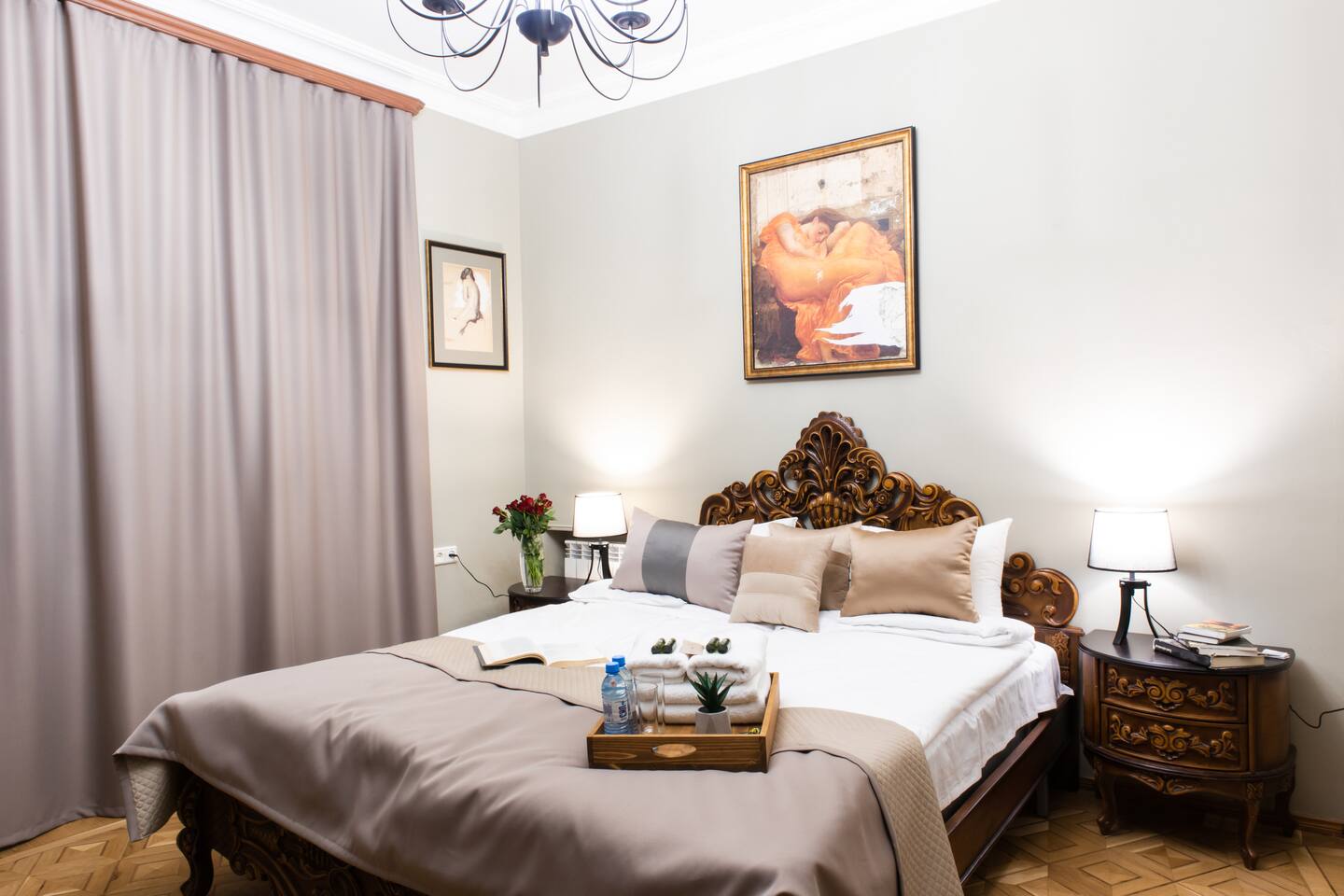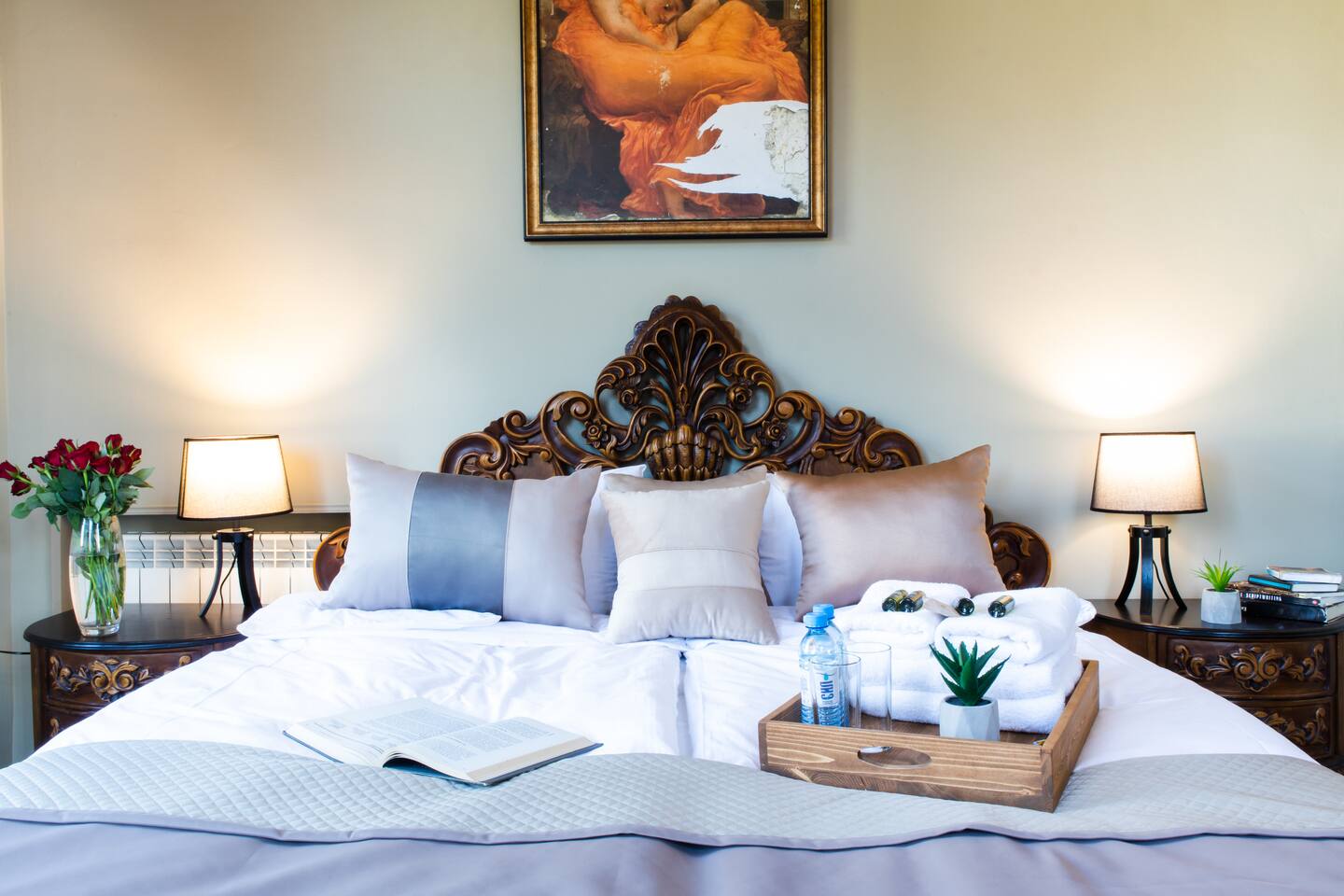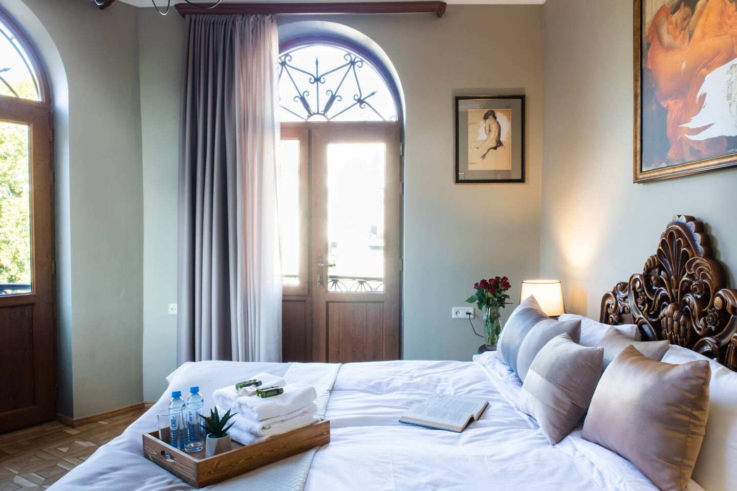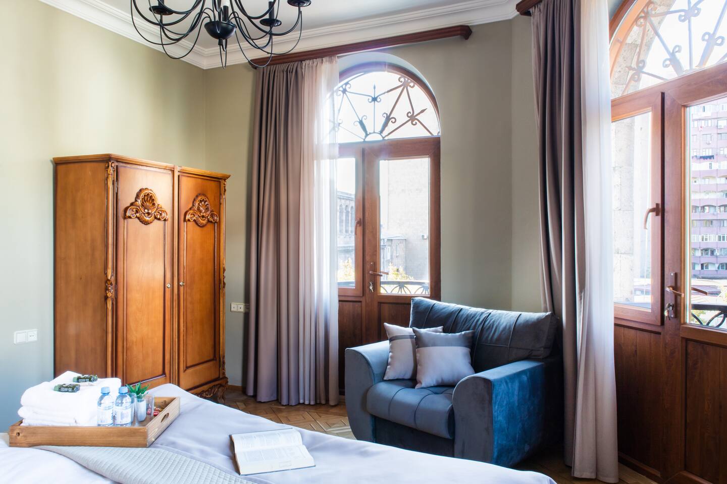 The apartment is the home of a renowned interior designer so not a detail has been missed for your absolute comfort. The property is located on a top floor of a historical building, on the mashots street. Saryan street is accessed within a minutes walk. The flat also offers a balcony overlooking Saryan, Mashtots and Khorenatsi streets. The property boasts one main sitting room, and 1 luxurious deco-style double bedroom, one full bathroom, a spacious hallway and balconies to die for. The WiFi speed is around 100 MB with Free Netflix Account. Connection to the system to listen to your own music also available. The living room is bright & airy, spacious in size and elegant in style. The dining area can seat up to 4 guests. The master bedroom is furnished with a super king-size bed. Bathroom essentials are provided, including toiletries, towels and a hairdryer. The property offers three different balconies with amazing views! We are pleased to offer hotel-standard hospitality services and provide hotel-quality linen & towels, bathroom essentials and professional cleaning services. A cot is available upon request.