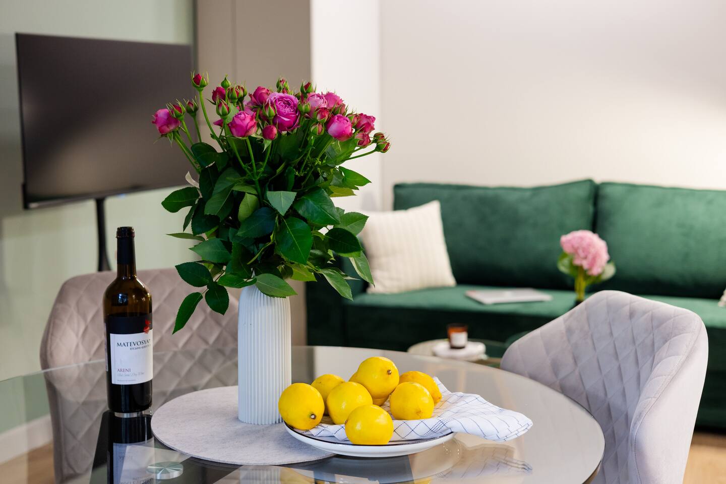 Welcome to "Candy" by Hotelise – A Designer's Vision Brought to Life. "Candy" isn't just another place to stay; from the colors to the textures, every corner makes this space feel like a true home with a unique character. Location: Located on Sayat Nova Street, “Candy” offers an incredible location in Yerevan. You're just minutes away from Swan Lake and Northern Avenue, but in a quiet neighbourhood where you can enjoy the best of the city without the noise. It’s the perfect spot to have everything within reach. Living Room and Kitchen: The living area is filled with natural light and features a mix of calming colors and interesting lighting to suit every mood, from bright mornings to relaxed evenings. A comfortable sofa faces a TV, perfect for unwinding. The dining area has a table for four and a stylish decorative wall. The kitchen has everything you need: plenty of storage, a fridge, a microwave with an oven in one set, and a gas stove. Bedroom: The bedroom offers a king-sized bed with a premium mattress and a beautifully designed headboard, complemented by soft, ambient lighting on the walls. The large window brings in plenty of light during the day, creating a pleasant and open feel. Bathroom: The bathroom is designed with high-quality tiles and features a great shower with good water pressure. Every element, from the shower cabin to the smallest details, shows the designer's dedication to style and comfort. At Hotelise, we believe that every stay should feel special. "Candy" is more than just a place to stay; it's an invitation to experience something personal and unique. Book your stay and see how it feels to live in a space crafted with care and creativity.