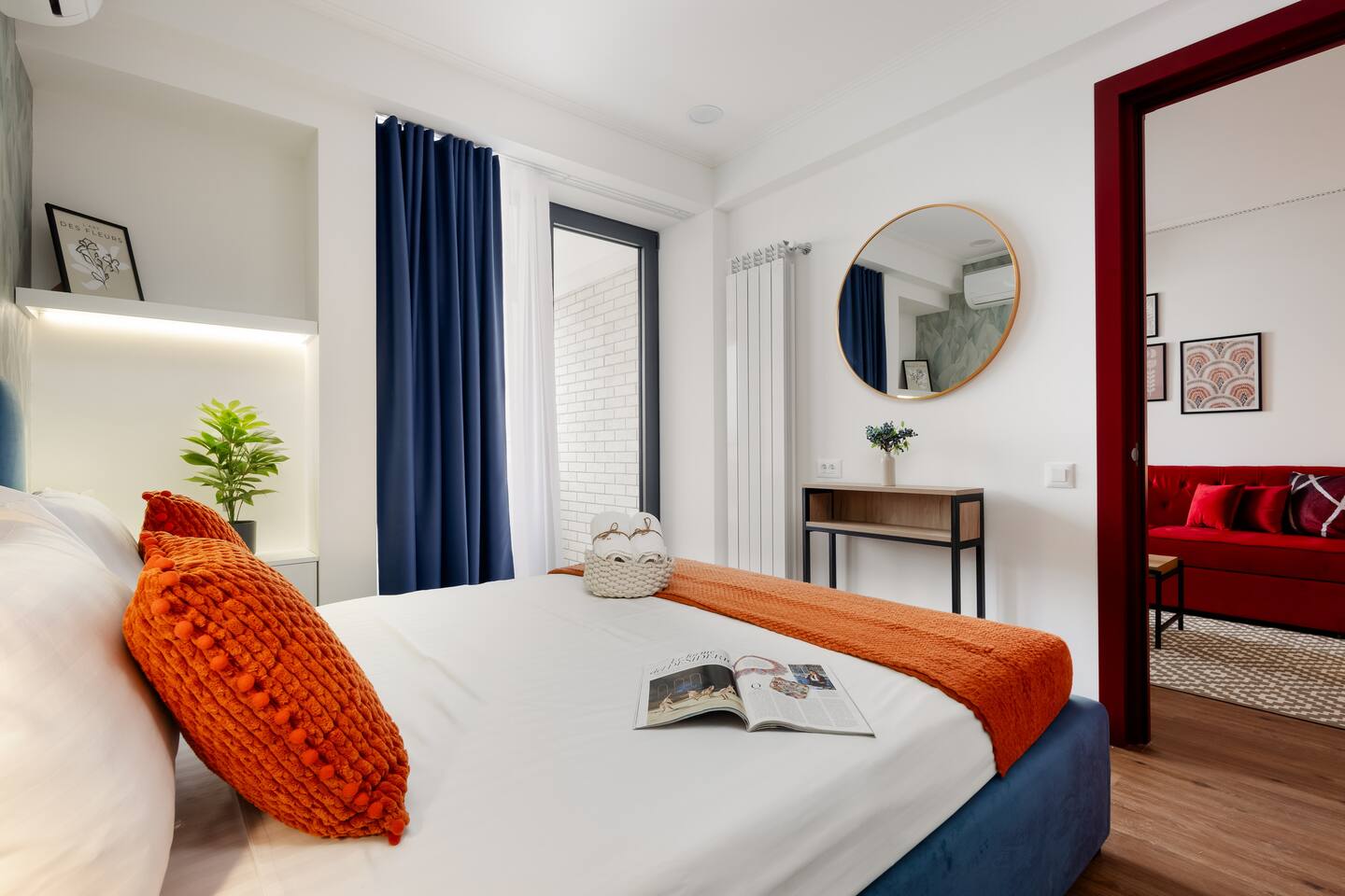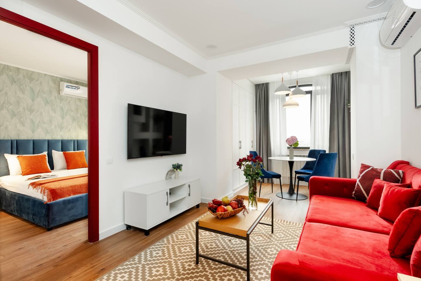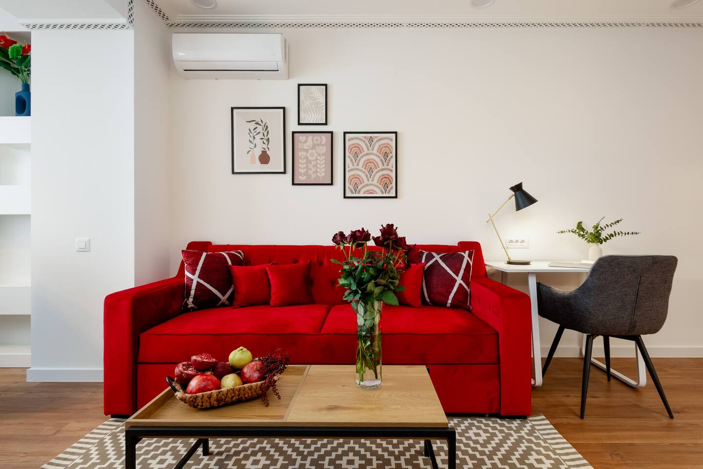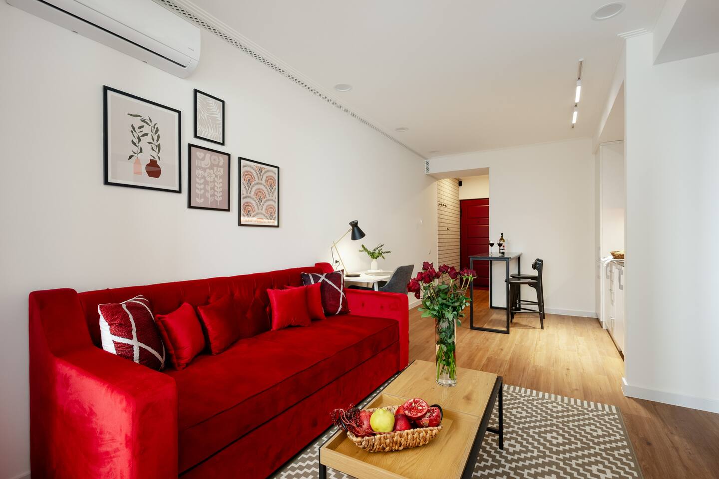 Welcome to "Carmine" by Hotelise — a modern, thoughtfully designed retreat in the heart of it all. Living-room & kitchen The open-concept living room and kitchen are designed for both comfort and functionality. The red color concept adds a distinctive and refreshing character to the space. The thoughtful use of the color concept enhances the overall design, giving the suite a memorable, inspiring elegance. This stylish space blends clean lines, warm finishes, and comfort-forward details, making it perfect for both short stays and longer visits. Bedroom Enjoy an open, airy layout with contemporary furnishings, a comfortable sleeping area, and a fully equipped space to relax or work. Balcony Step out onto the private balcony to sip your morning coffee or unwind in the evening with city views and fresh air. Whether you’re in town for business or a weekend escape, you’ll love the suite’s central location, smart design, and calm, upscale vibe — a true home base for exploring the city.