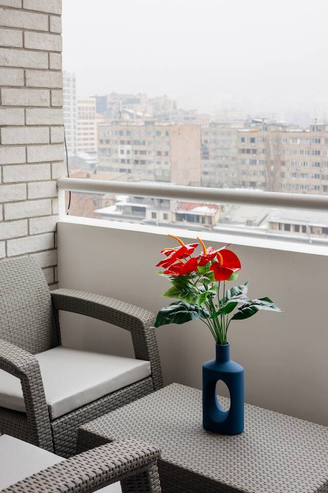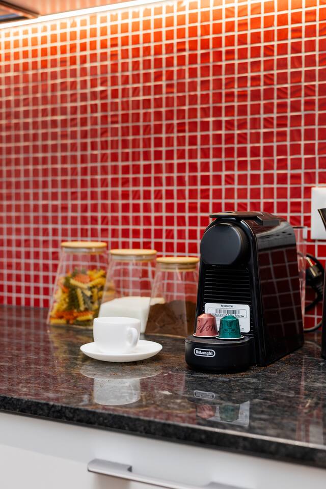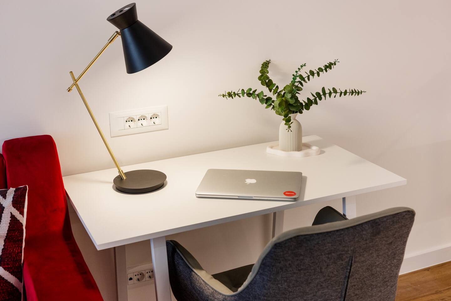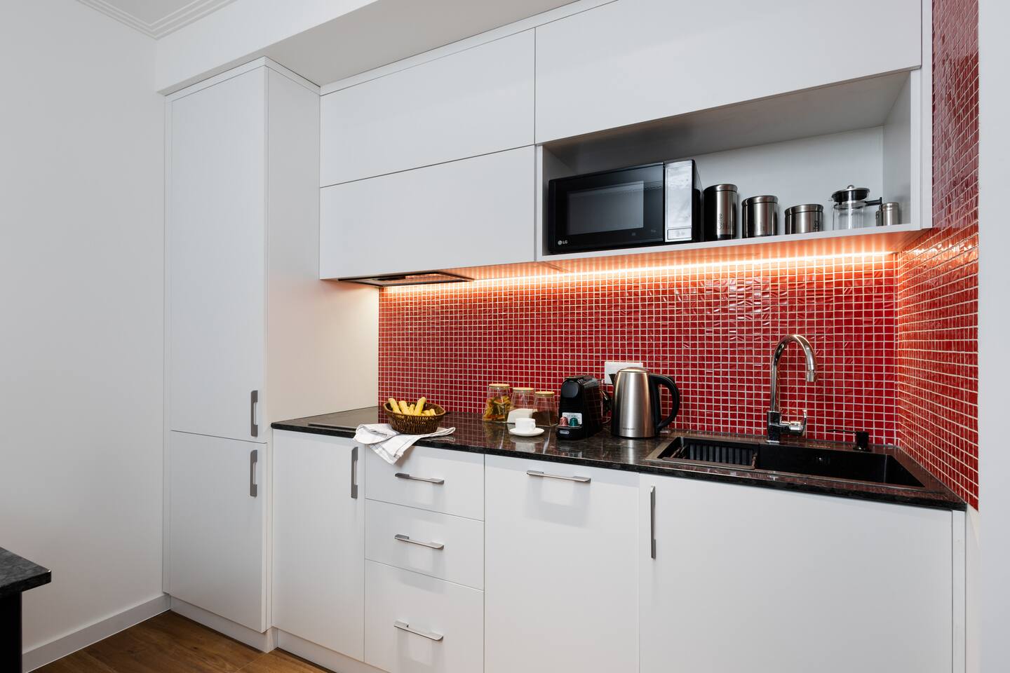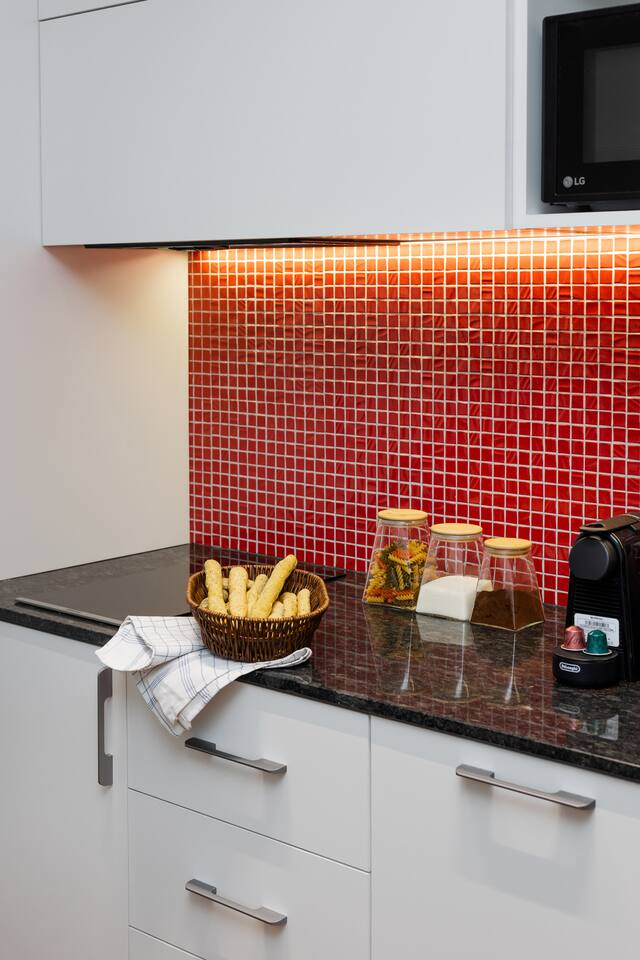 Welcome to "Carmine" by Hotelise — a modern, thoughtfully designed retreat in the heart of it all. Living-room & kitchen The open-concept living room and kitchen are designed for both comfort and functionality. The red color concept adds a distinctive and refreshing character to the space. The thoughtful use of the color concept enhances the overall design, giving the suite a memorable, inspiring elegance. This stylish space blends clean lines, warm finishes, and comfort-forward details, making it perfect for both short stays and longer visits. Bedroom Enjoy an open, airy layout with contemporary furnishings, a comfortable sleeping area, and a fully equipped space to relax or work. Balcony Step out onto the private balcony to sip your morning coffee or unwind in the evening with city views and fresh air. Whether you’re in town for business or a weekend escape, you’ll love the suite’s central location, smart design, and calm, upscale vibe — a true home base for exploring the city.