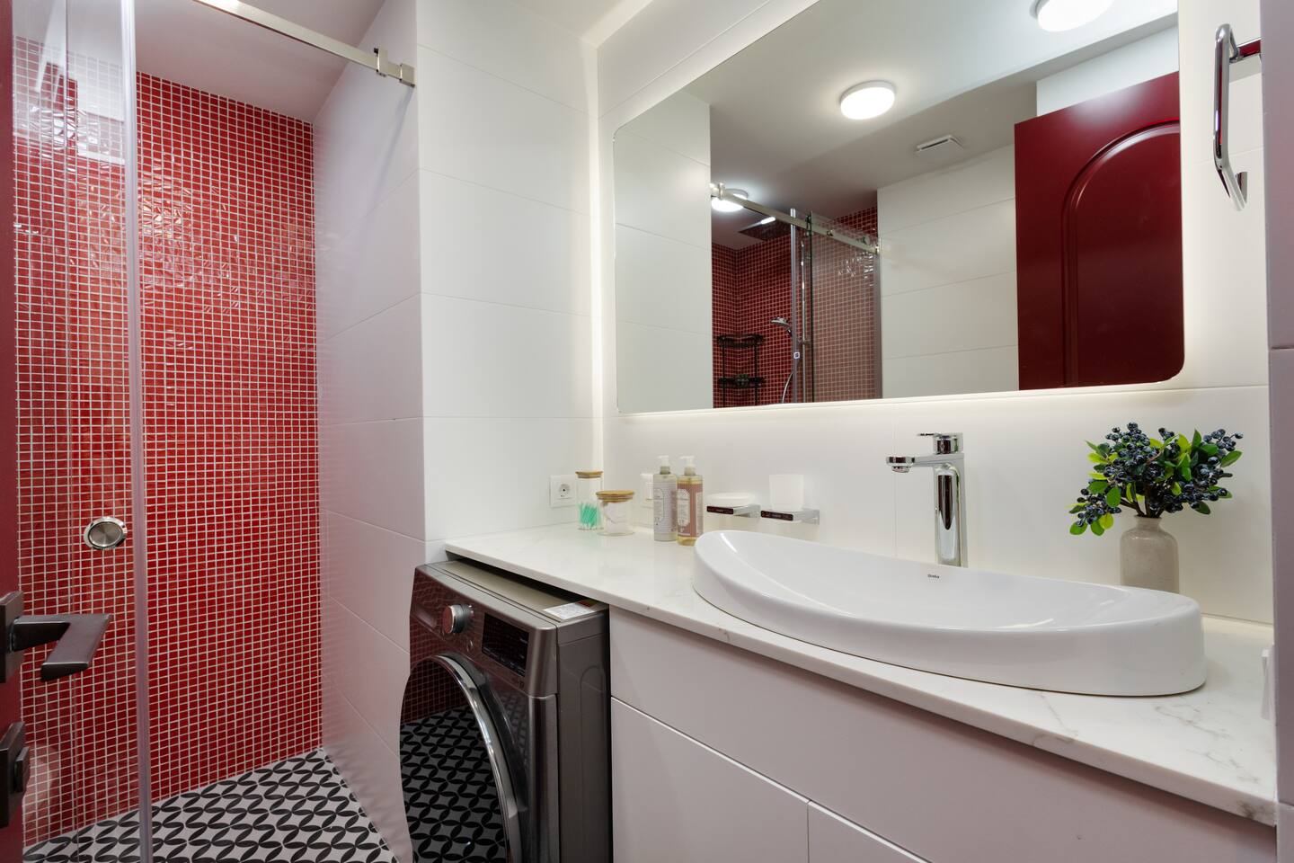 ☆ Welcome to "Carmine" by Hotelise: A Symphony of Style and Light ✓ 24/7 Self Check-in ✓ 16/13 floor ✓ New Lift ✓ ACs ✓ 48sqm ✓ Working Desk ✓ Washer with Dryer ✓ Smart TV ✓ Premium Bathroom ✓ Premium Furnishings ✓ High-speed up to 200 Mbit WiFi ✓ Bed 160x200 ✓ Fully-equipped kitchen w/ Dishwasher ✓ Luxury hotel toiletries ✓ Fresh linens & plush towels ✓ Apartment next door, "Malachite" for your welcome!