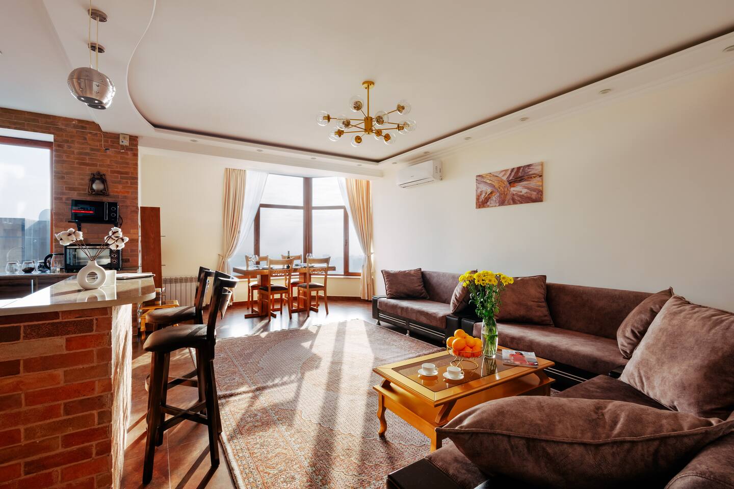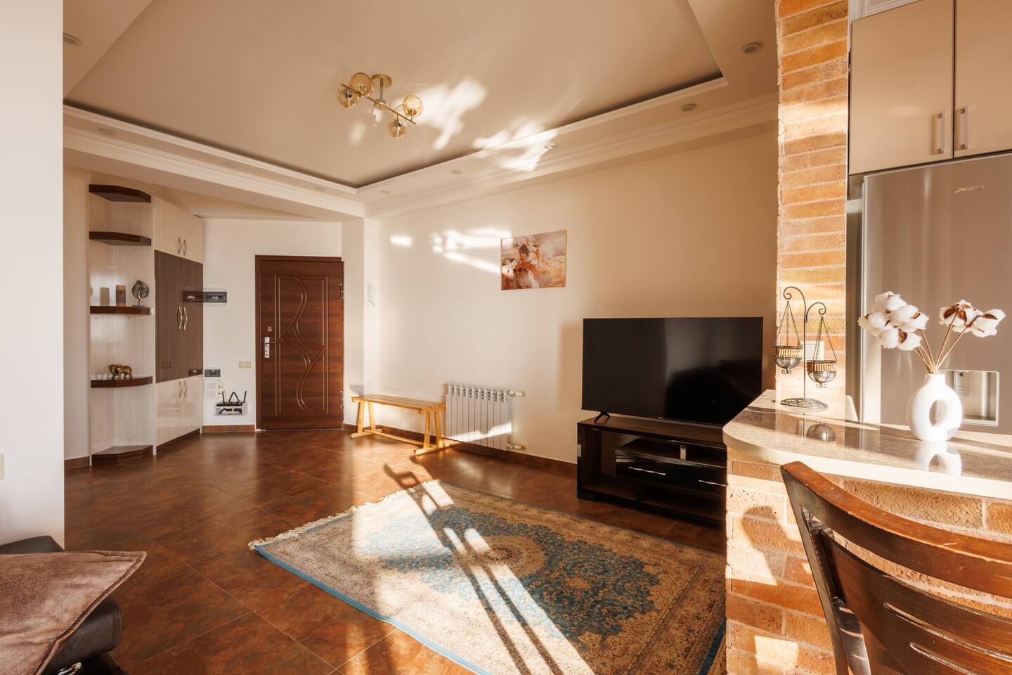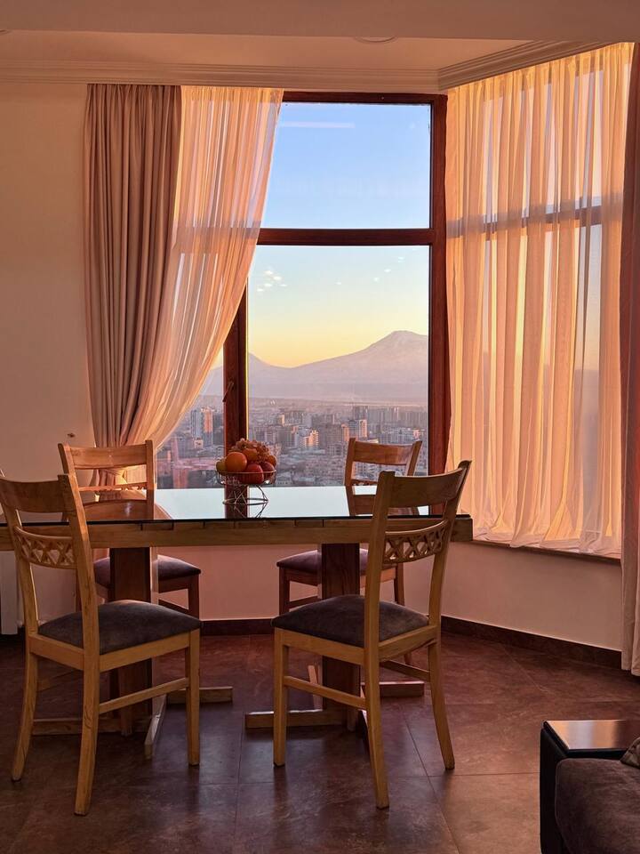 Welcome to Charles by Hotelise – A View Worth a Thousand Stories Located at Antarayin Street, 120/14, Charles is perched just above the Cascade, offering what might be the best view of Mount Ararat in all of Yerevan. The panorama is so breathtaking, it feels like a paid attraction just to experience it. Inspired by its proximity to the Charles Aznavour Museum, this apartment embodies elegance and a timeless connection to one of Armenia's greatest icons. Building: This brand-new building boasts modern infrastructure, lifts and exceptional convenience. Just minutes from the Cascade steps, you’re perfectly positioned in Yerevan’s most bohemian area. The Cascade Square, with its art, culture, and lively cafes, is right at your feet. For added ease, the escalators operate during the day (timings vary seasonally), making it effortless to explore this iconic landmark. Living Room and Kitchen: The spacious living room is designed for both relaxation and awe. A large L-shaped sofa faces the TV, while the dining table is placed by floor-to-ceiling windows that frame the spectacular view of Mount Ararat. Whether you’re enjoying a meal or simply gazing outside, the scene is unforgettable. The open-plan kitchen includes a breakfast bar with bar stools, a stove, extractor, large fridge, microwave, and toaster. It’s generously sized and thoughtfully equipped for your convenience. Bedroom: The bedroom offers a large, comfortable bed with a premium mattress and blackout curtains for a restful night’s sleep. A full-height mirrored wardrobe provides ample storage and adds a touch of elegance to the space. Bathroom: Freshly designed with brand-new tiles, the bathroom features a sleek shower cabin, premium fixtures, and excellent water pressure, offering a spa-like experience. Why Charles and Hotelise? At Hotelise, we create spaces that blend design, comfort, and unforgettable experiences. Charles is no exception. From its jaw-dropping views to its thoughtful design, this apartment is more than a stay—it’s a moment you’ll cherish. Come see why we’re redefining hospitality, one iconic location at a time.