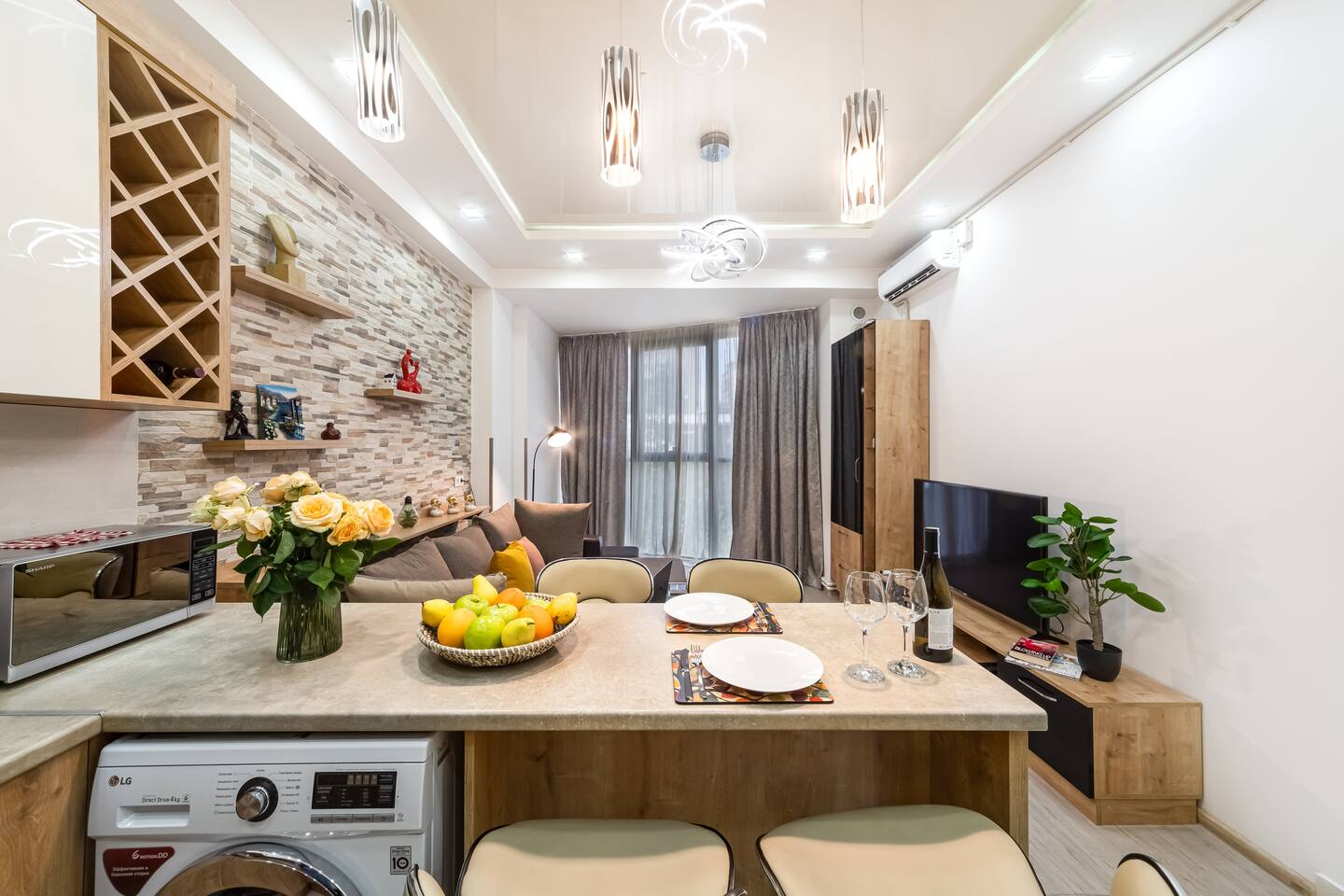 Located in the most vibrant part of the city, this iconic building is featuring a top-class business centre as well as luxury apartments. The apartment is brand new, furnished by local designers, and on a high floor making evenings absolutely enjoyable with Breathtaking Views and Good Vibes. The apartment belongs to a C-level hotelier, and you will certainly feel and appreciate how thoughtful it has been made, from a modern lock and a check-in system to top-quality linen, towels and toiletries. Great location for exploring the city, enjoying the nightlife, iconic cocktail bars and wine and food scene (check my guidebook)! It's just a few steps to many of Yerevan's monuments. You can find trendy restaurants, bars, clubs, 24/7 supermarkets and nightlife nearby. In addition to your private apartment, you'll have the support of our fantastic team throughout your stay in case you need anything. Don't miss out on this unique opportunity to experience Yerevan at its best!