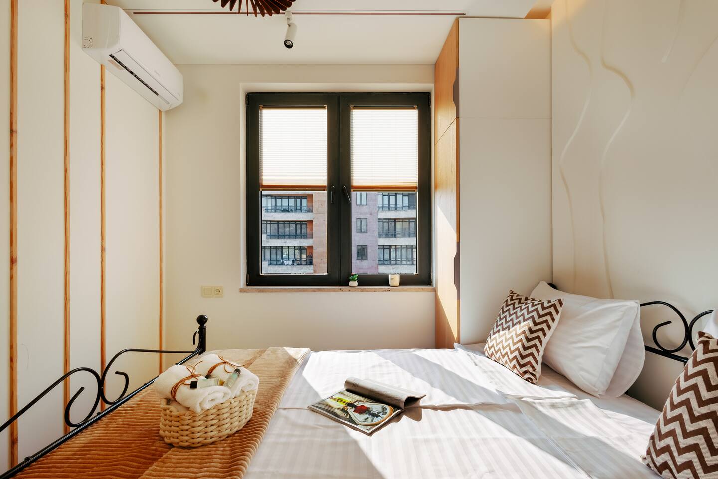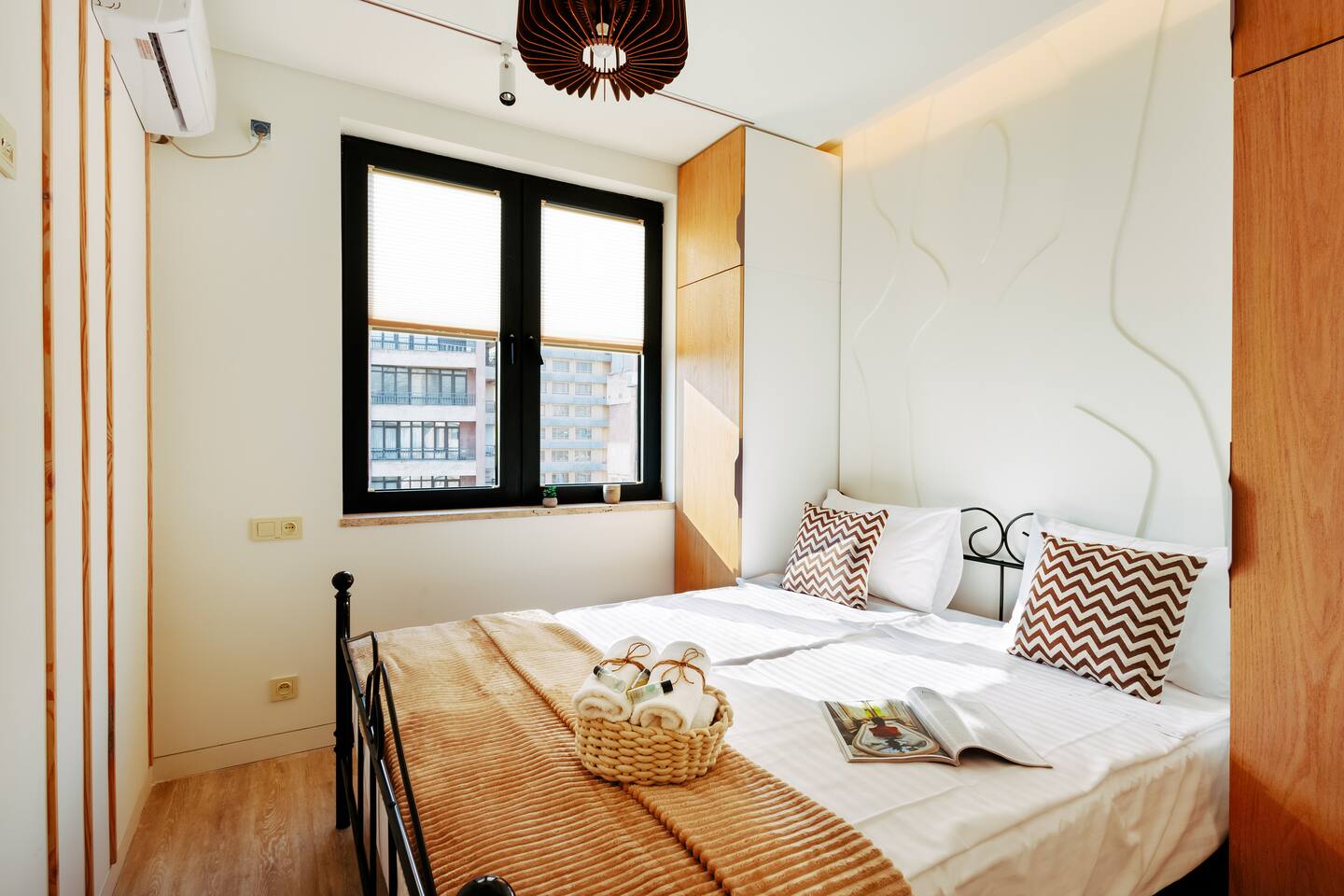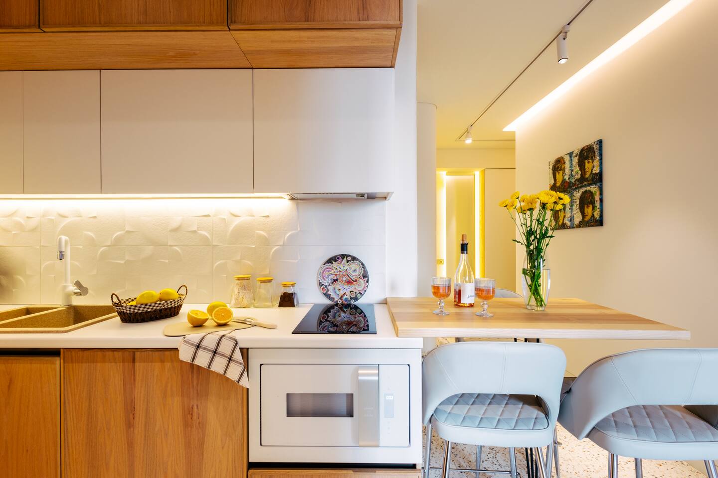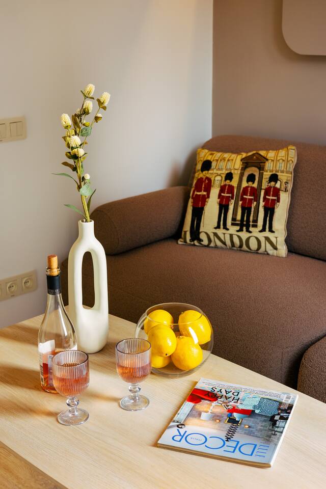 Welcome to "Cortado" by Hotelise – A Designer's Vision Brought to Life. "Cortado" isn’t just another place to stay; it’s a personal creation by a renowned designer and architect who has thoughtfully crafted every detail. From the colors to the textures, every corner reflects their vision, making this space feel like a true home with unique character. This is one of three neighboring properties, alongside Latte and Frappe, all designed to deliver a one-of-a-kind Airbnb experience. Perfect for individual stays or group bookings, each apartment offers its own distinct charm while sharing the same dedication to comfort and style. Location: Nestled just behind Ani Hotel on Sayat Nova Street, "Cortado" boasts an unbeatable location in Yerevan. Minutes from Swan Lake and Northern Avenue, yet tucked into a peaceful neighborhood, it offers the best of both worlds: city vibrancy and quiet retreat. Living Room and Kitchen: The living area is bathed in natural light through floor-to-ceiling windows, featuring soft cream tones, natural wood accents, and versatile lighting to match your mood—from bright mornings to cozy evenings. Relax on the comfortable sofa with a Smart TV and enjoy the city view from the French balcony. The compact, fully-equipped kitchen includes ample storage, a fridge, microwave, electric stove, and eye-catching backsplash. It’s designed for practicality and enjoyment, whether you’re cooking a full meal or just making coffee. Bedroom: The bedroom invites you to unwind with a plush king-sized bed, a premium mattress, and a striking feature wall. Soft ambient lighting and a large window create a serene atmosphere, while air conditioning ensures comfort throughout your stay. Bathroom: The premium bathroom is designed with elegant tiles, a sleek shower cabin, and high-end fittings. From the water pressure to the finer details, every element ensures a luxurious experience. At Hotelise, we create more than just places to stay; we craft memories. "Cortado" is your chance to experience thoughtful design, curated comfort, and the warmth of a space made with care. Book your stay and discover the difference for yourself.