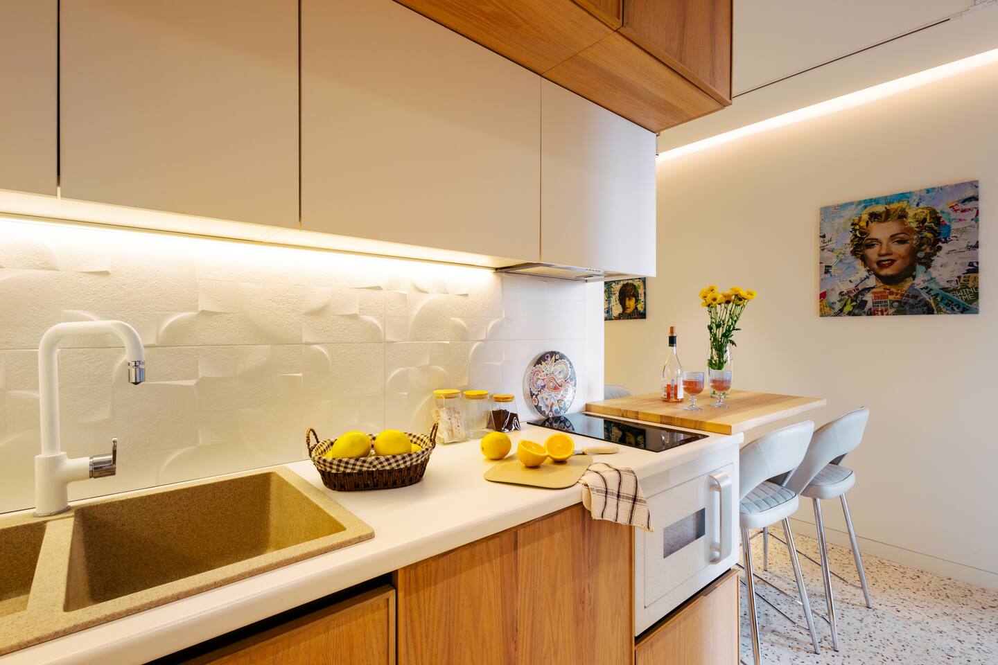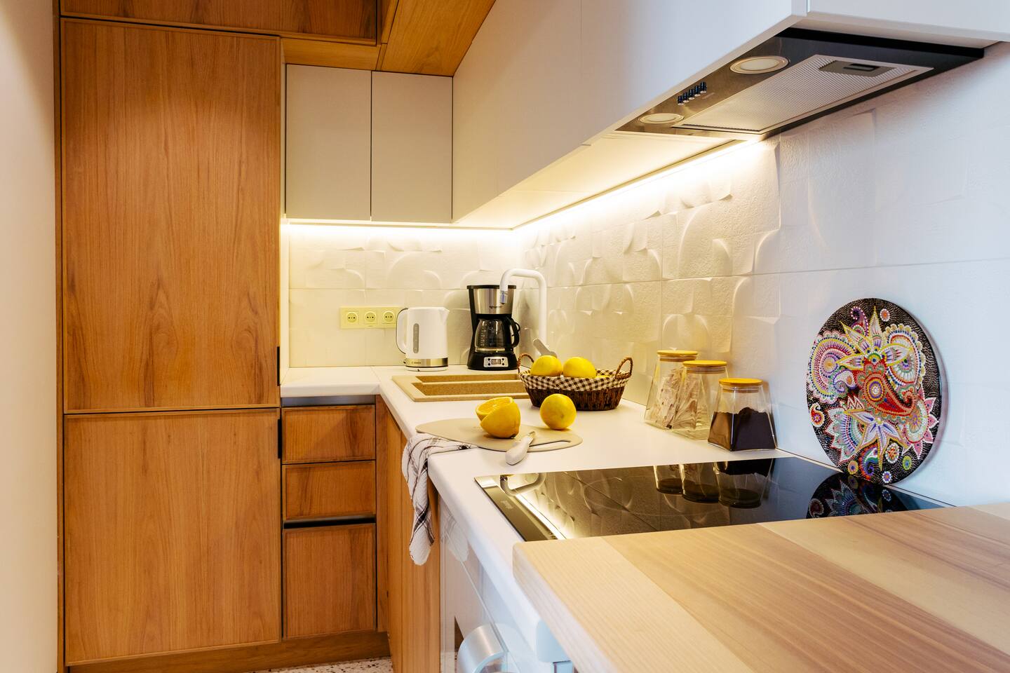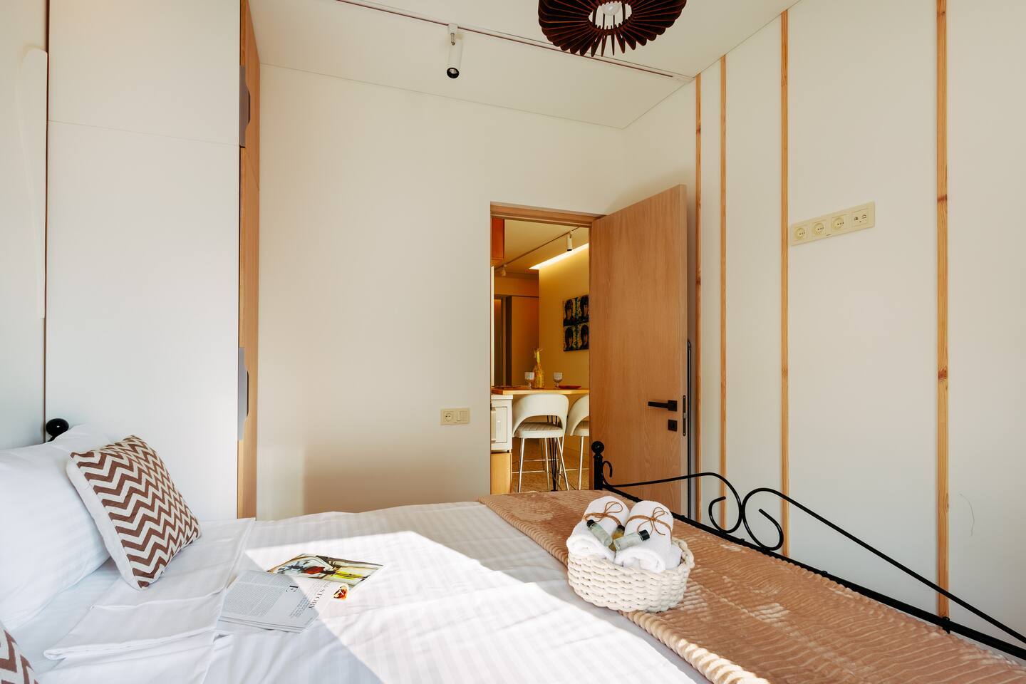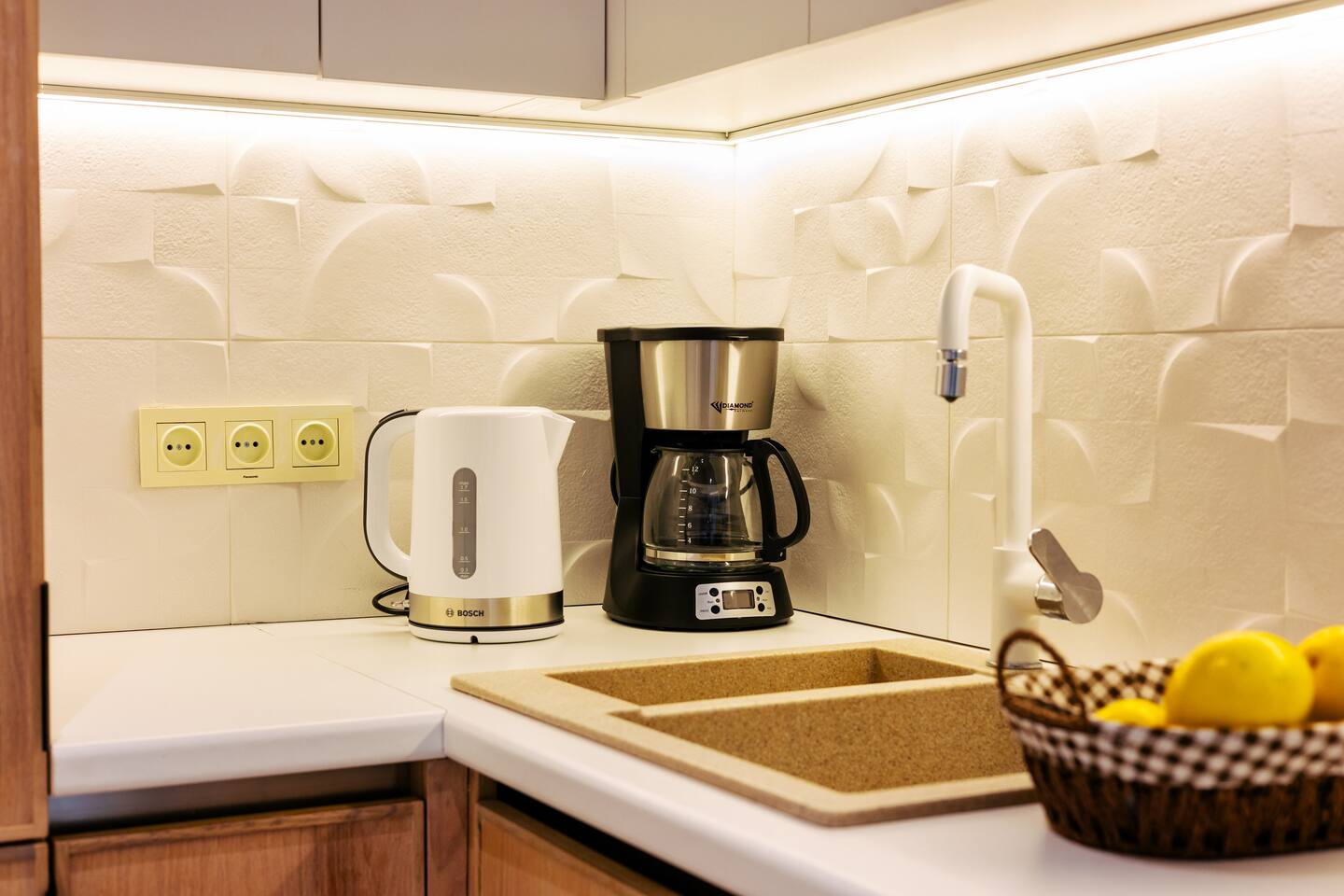 Welcome to "Cortado" by Hotelise – A Designer's Vision Brought to Life. "Cortado" isn’t just another place to stay; it’s a personal creation by a renowned designer and architect who has thoughtfully crafted every detail. From the colors to the textures, every corner reflects their vision, making this space feel like a true home with unique character. This is one of three neighboring properties, alongside Latte and Frappe, all designed to deliver a one-of-a-kind Airbnb experience. Perfect for individual stays or group bookings, each apartment offers its own distinct charm while sharing the same dedication to comfort and style. Location: Nestled just behind Ani Hotel on Sayat Nova Street, "Cortado" boasts an unbeatable location in Yerevan. Minutes from Swan Lake and Northern Avenue, yet tucked into a peaceful neighborhood, it offers the best of both worlds: city vibrancy and quiet retreat. Living Room and Kitchen: The living area is bathed in natural light through floor-to-ceiling windows, featuring soft cream tones, natural wood accents, and versatile lighting to match your mood—from bright mornings to cozy evenings. Relax on the comfortable sofa with a Smart TV and enjoy the city view from the French balcony. The compact, fully-equipped kitchen includes ample storage, a fridge, microwave, electric stove, and eye-catching backsplash. It’s designed for practicality and enjoyment, whether you’re cooking a full meal or just making coffee. Bedroom: The bedroom invites you to unwind with a plush king-sized bed, a premium mattress, and a striking feature wall. Soft ambient lighting and a large window create a serene atmosphere, while air conditioning ensures comfort throughout your stay. Bathroom: The premium bathroom is designed with elegant tiles, a sleek shower cabin, and high-end fittings. From the water pressure to the finer details, every element ensures a luxurious experience. At Hotelise, we create more than just places to stay; we craft memories. "Cortado" is your chance to experience thoughtful design, curated comfort, and the warmth of a space made with care. Book your stay and discover the difference for yourself.
