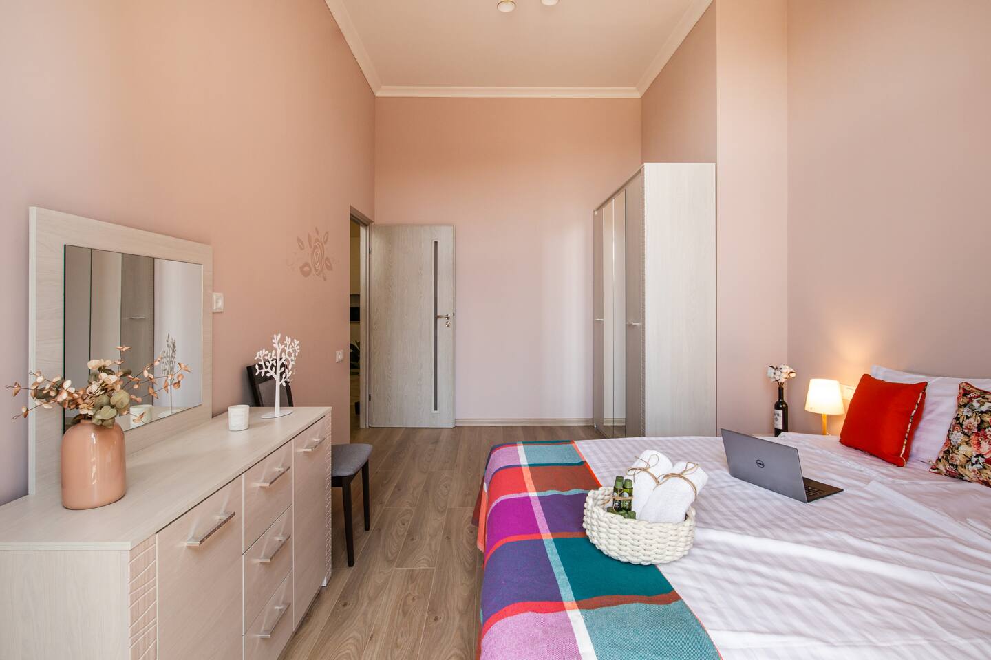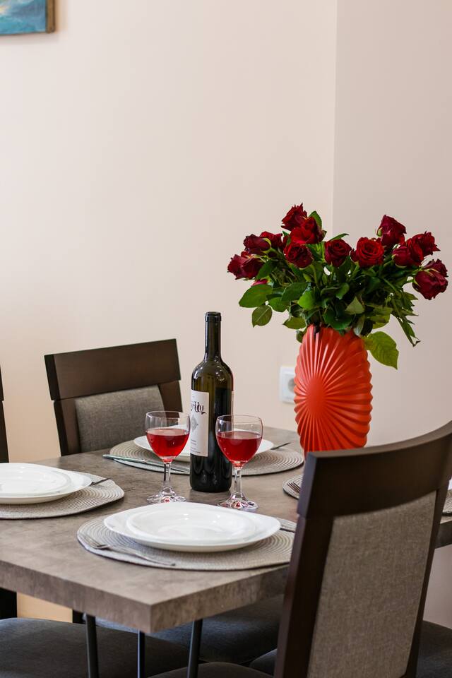 Welcome to Dvin by Hotelise, an elegant and modern retreat named after the iconic Dvin Music Hall located just next door. This property offers the perfect blend of convenience and luxury, situated in a brand new building with all new infrastructure. Location: Nestled next to the renowned Dvin Music Hall, famous for its spectacular show programs and top-floor pool venue with a bar and lounge, our property boasts a prime central location. You’ll be within walking distance to the vibrant Saryan Street, known for its lively atmosphere and cultural offerings, while also having easy access to the serene Hrazdan River. Living Room: The spacious living room is designed for relaxation and entertainment, featuring a large L-shaped sofa and a coffee table. A large Smart TV is perfect for enjoying your favorite shows, and the powerful AC ensures the entire apartment stays cool and comfortable. The dining area includes a table with four chairs, providing a cozy spot for meals. Kitchen: The open-plan kitchen seamlessly integrates with the living room, offering ample storage and all the cooking basics you might need. It includes a microwave, coffee machine, toaster, dishwasher, and stove. The large worktops provide plenty of space for meal preparation, and the spacious fridge ensures you have enough room for all your groceries. Bedroom 1: The first bedroom features a king-size bed with bedside tables and lights, a chest of drawers for storage with a mirror on top, and top-to-bottom windows that flood the room with natural light. Blackout curtains ensure a restful night’s sleep, and the wardrobe offers ample storage space. Bedroom 2: The second bedroom is equipped with two single beds, perfect for guests or children. It also includes storage for clothes and a wardrobe with a full-size mirror, providing both functionality and comfort. Bathroom 1: The modern bathroom features a large shower cabin with excellent water pressure. It also includes a washer and dryer stacked on top of each other, adding convenience to your stay. At Hotelise, we are dedicated to creating spaces that combine luxury and comfort, ensuring your stay is memorable. Book your stay at Dvin by Hotelise and experience the perfect blend of modern amenities and central location, making your time in Yerevan truly exceptional.