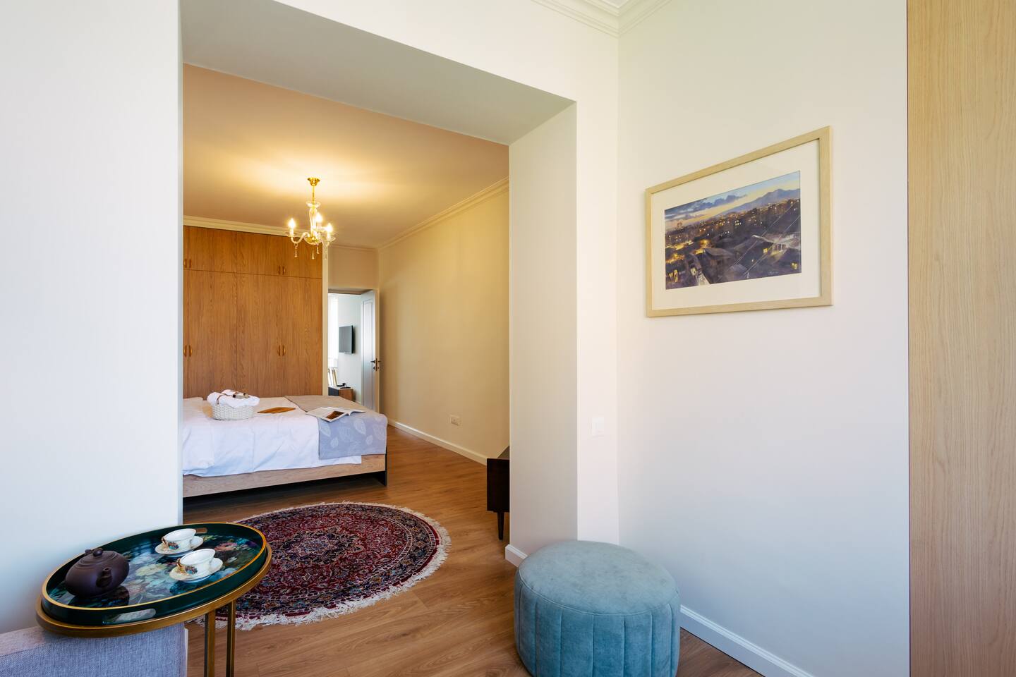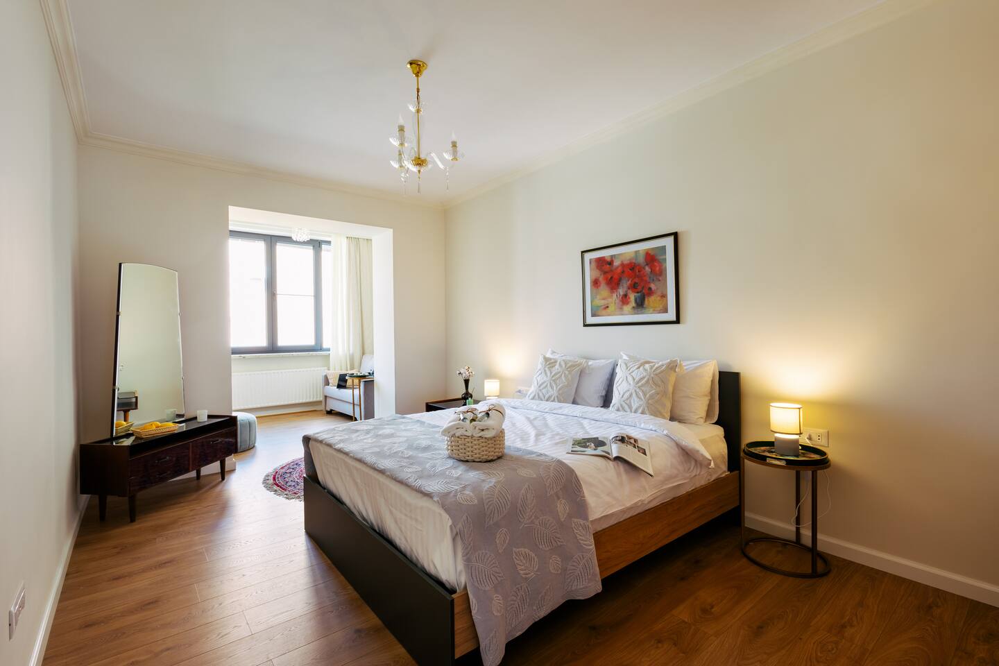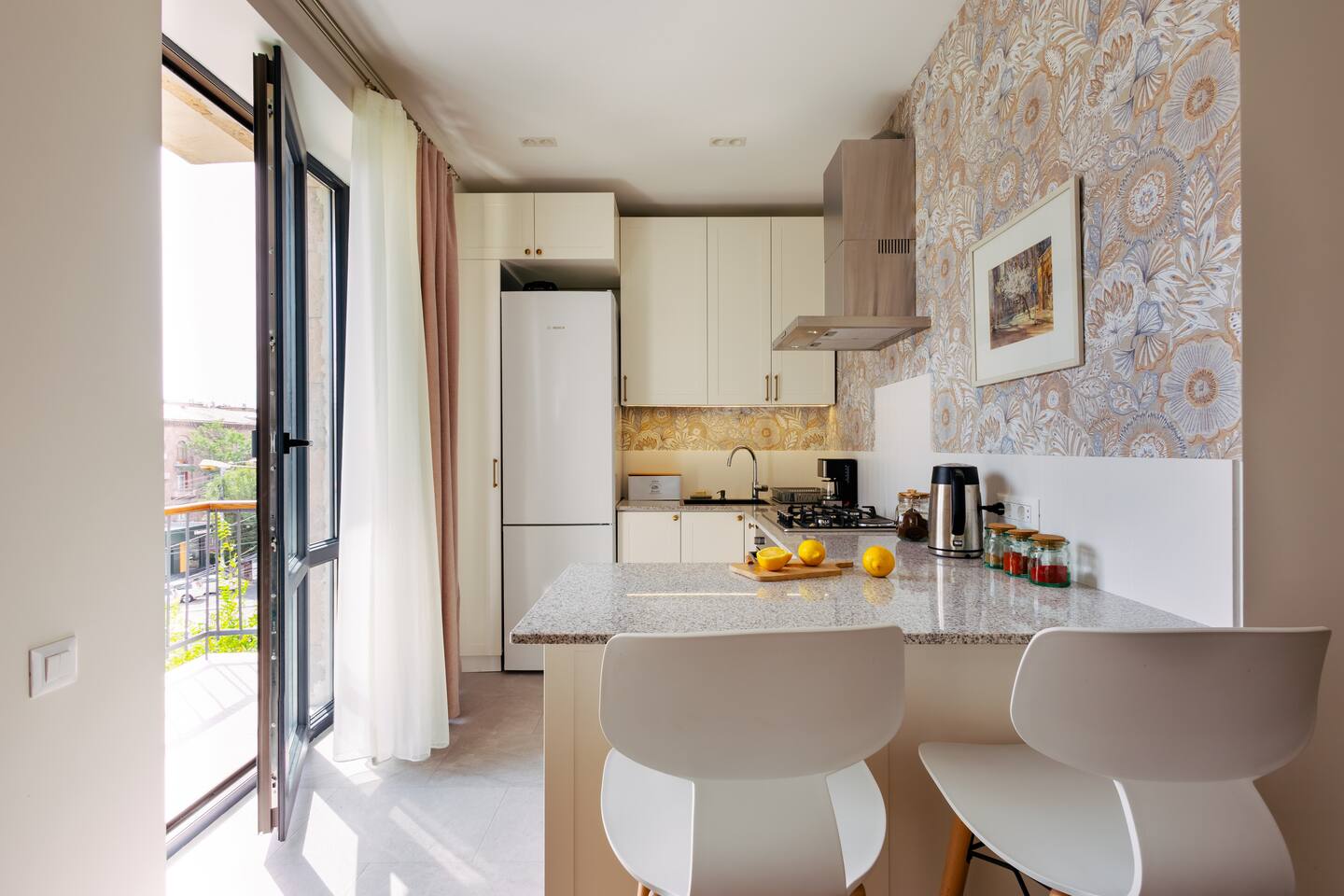 Welcome to "Eclate" by Hotelise – An Airy, Eclectic Blend of Style and Comfort "Eclate" is a spacious and beautifully airy one-bedroom apartment, designed with an eclectic mix of old and new styles. The tasteful combination of vintage and modern furniture gives this space its unique charm, creating an inviting atmosphere perfect for those who appreciate thoughtful design. Location: Situated in the Komitas area, one of Yerevan’s most developed neighborhoods outside the city center, "Eclate" offers the perfect balance between accessibility and tranquility. Parks, supermarkets, entertainment, and everything you need are just steps away, while the bustling city center is only a 7-minute taxi ride. For those who want to enjoy the vibrancy of Yerevan without staying in the noisy heart of the city, Komitas provides the perfect compromise. Living Room: As you step inside, you’re greeted by a charming piano to the left, setting the tone for this eclectic home. The living room features a cozy sofa facing a large smart TV, a stylish coffee table, and a round dining table for four. The room is airy, with large windows that flood the space with natural light, and A/C to keep the temperature just right. Kitchen: The separate kitchen offers plenty of storage and worktop space, perfect for those who love to cook. It’s equipped with everything you need, including an oven, washer, fridge, kettle, coffee maker, microwave, extractor, and stove. The breakfast bar, complete with two bar stools, is the perfect spot for a quick meal or a relaxed breakfast. The kitchen also opens up to the balcony through floor-to-ceiling doors and windows, creating an uplifting vibe during breakfast or coffee time. Balcony: The balcony faces Komitas Avenue, offering the perfect spot for morning coffee or an evening glass of wine. Despite its central location, the high-quality doors and windows ensure excellent noise insulation, making it a peaceful retreat from the city buzz. Bedroom: The bedroom is designed for both style and comfort, featuring a king-size bed with a premium mattress, side table, and plenty of storage with a fitted wardrobe. A full-size mirror adds to the room’s spacious feel. An extension of the bedroom offers a sofa bed, perfect for additional guests or a cozy lounging space. Bathroom: The newly refurbished bathroom features beautiful tiles and a high-quality shower set with excellent water pressure. It’s equipped with a mirror, under-sink storage, and everything you need for a comfortable stay in one of the most important parts of any home. At Hotelise, we pride ourselves on offering more than just a place to stay – we create spaces that feel like home. "Eclate" is no exception, providing a blend of elegance and comfort that’s perfect for making lasting memories.