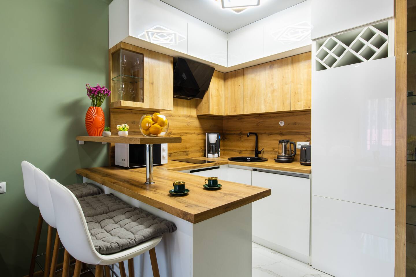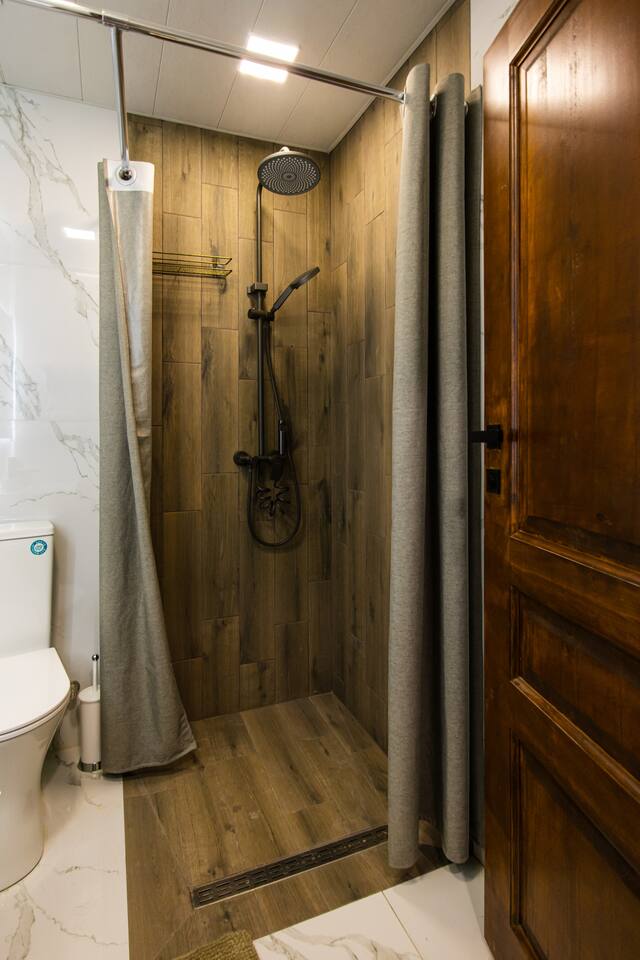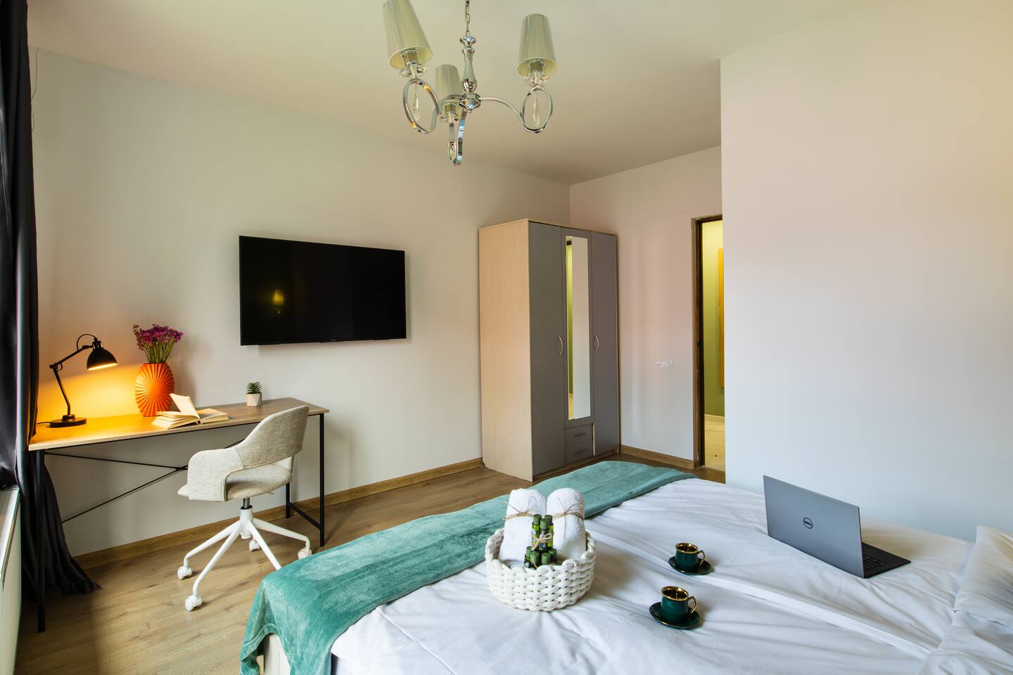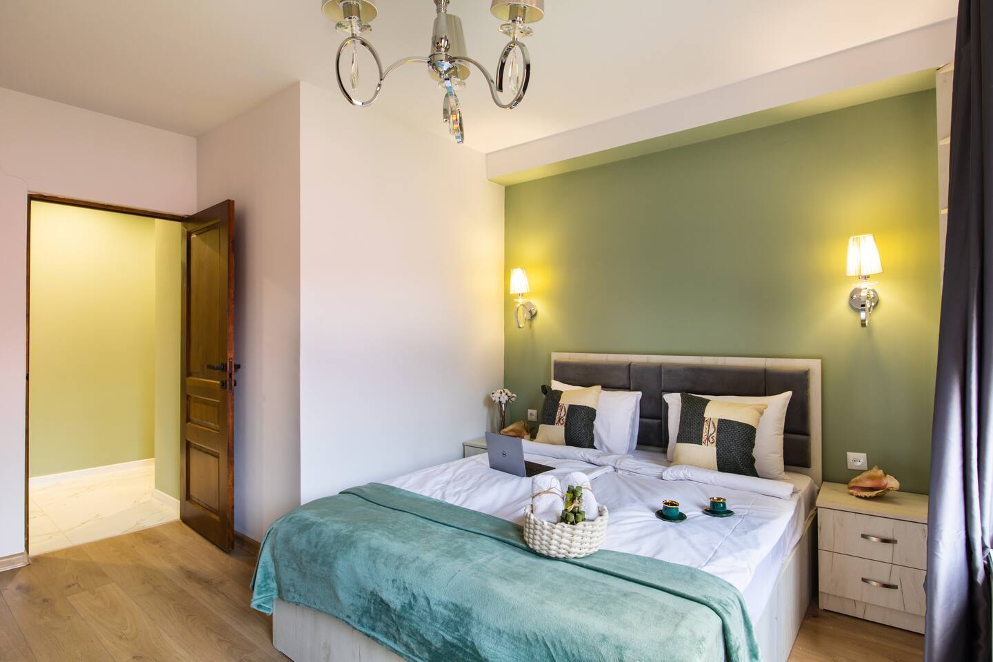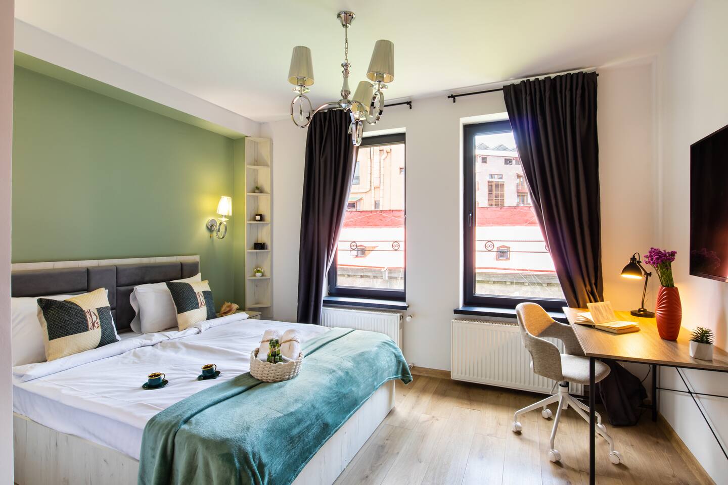 Welcome to Emerald by Hotelise, our stunning new duplex project located in the heart of the city. This unique space, inspired by the vibrant hues of emerald stone, offers a bright, airy environment filled with natural light from large windows. Living Room: Step into the expansive living room, featuring a spacious L-shaped sofa and soaring high ceilings. The duplex design includes a private split ceiling space accessed by stylish stairs, perfect for a cozy armchair retreat. The open-plan area is complemented by three bar stools around the breakfast bar, and a round dining table situated next to the large windows, creating a delightful setting for meals. The room is equipped with AC to ensure your comfort. Kitchen Area: The fully stocked kitchen is designed for both functionality and style. It includes a kettle, toaster, microwave, stove, extractor, fridge, and ample storage space. The breakfast bar adds a touch of convenience for casual dining or morning coffee. Bedroom: The bedroom features a large king-size bed with bedside tables and a high-quality mattress for a restful night’s sleep. A working desk with a TV and a wardrobe provide ample space for work and storage, ensuring a comfortable and organized stay. Bathroom: The bathroom is modern and well-appointed, with a shower cabin, LED mirror, new tiles, and excellent water pressure for a refreshing shower experience. Hallway: The hallway includes a full-size mirror, adding to the practical and stylish design of the apartment. At Hotelise, we are committed to creating spaces that go beyond mere accommodation. Emerald is a testament to our dedication to design, comfort, and memorable guest experiences.