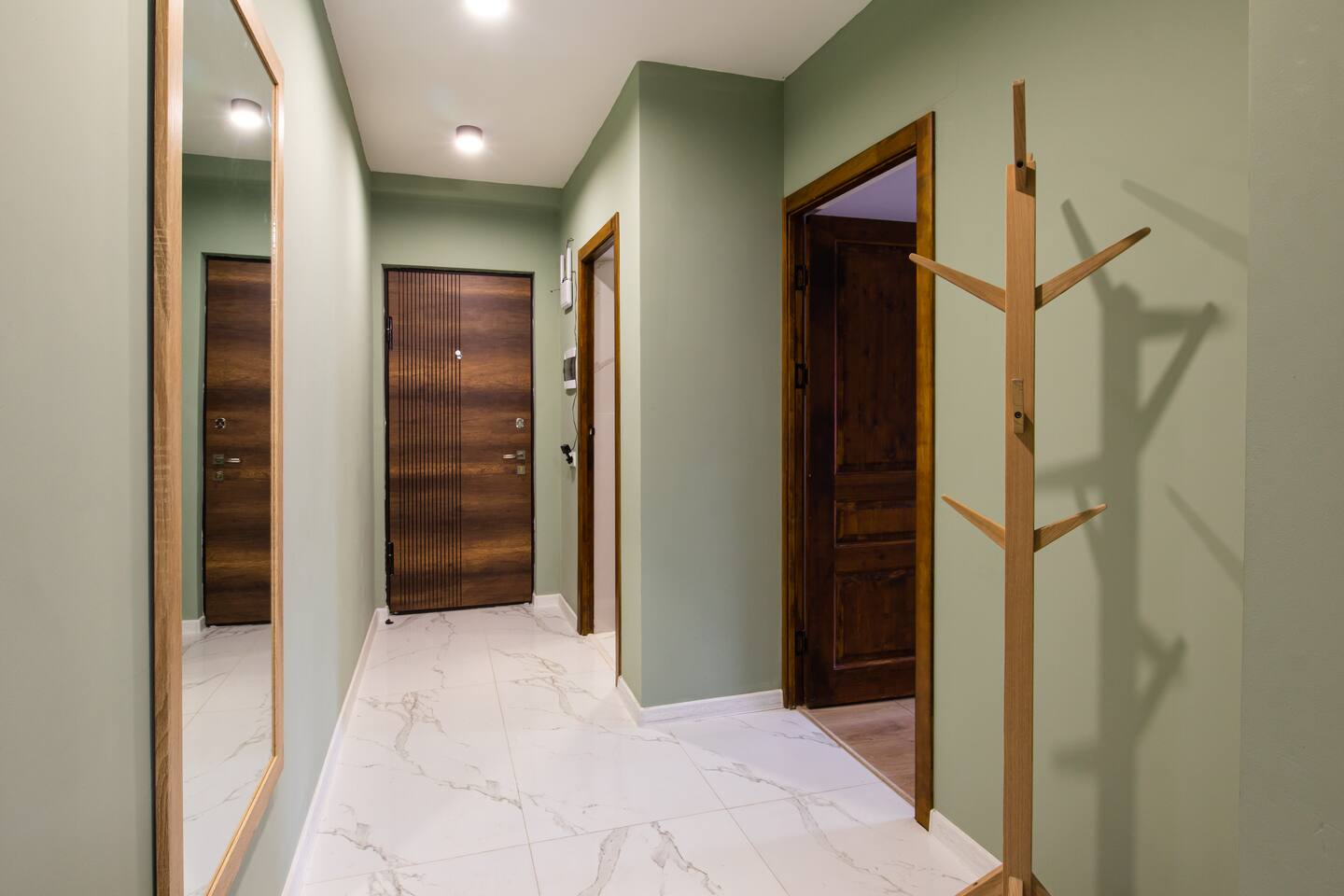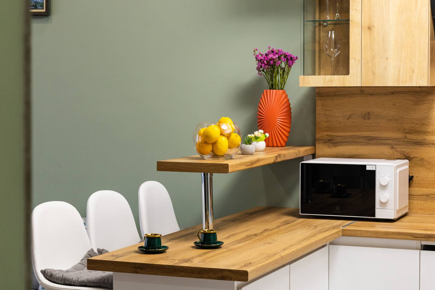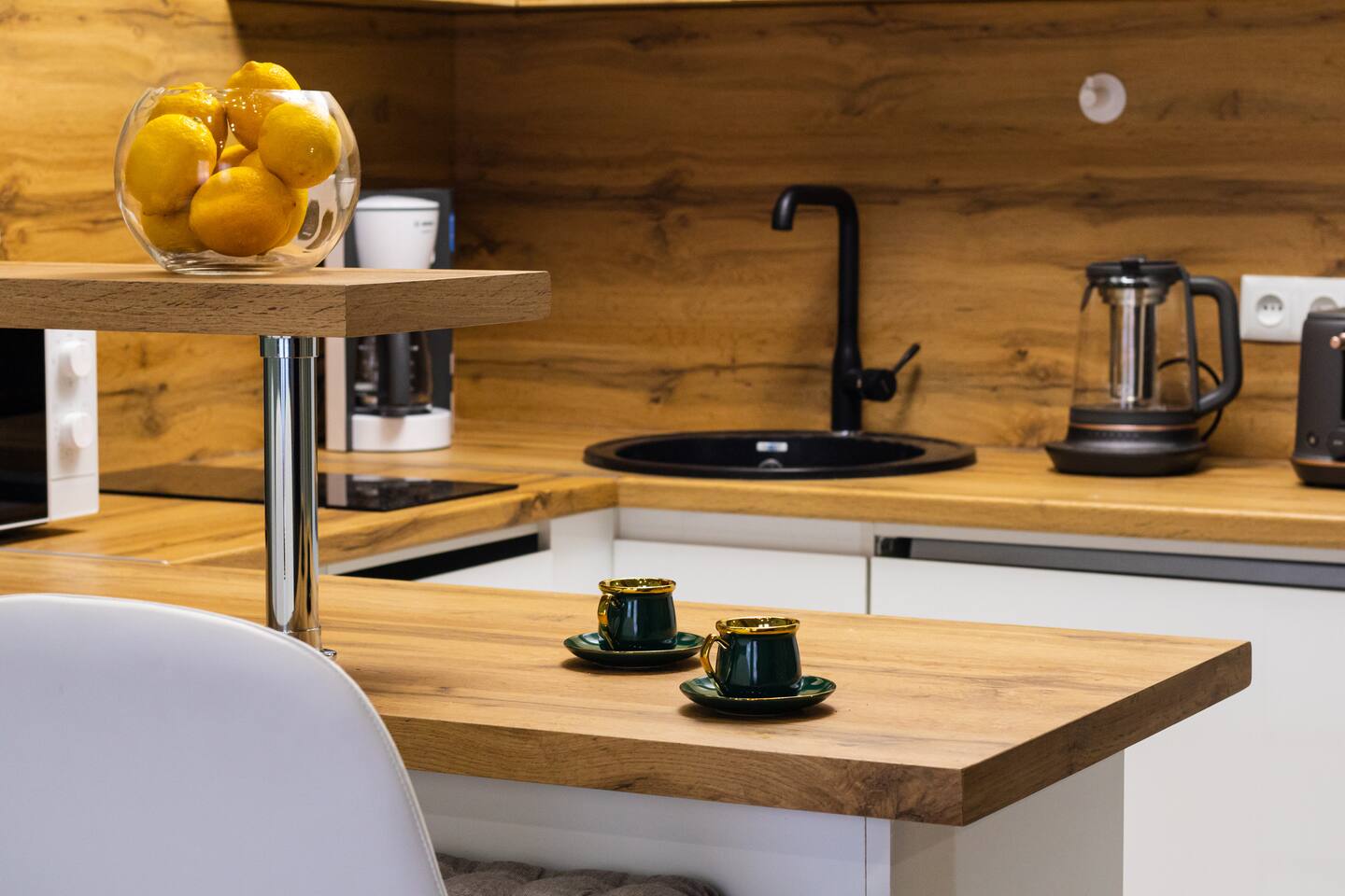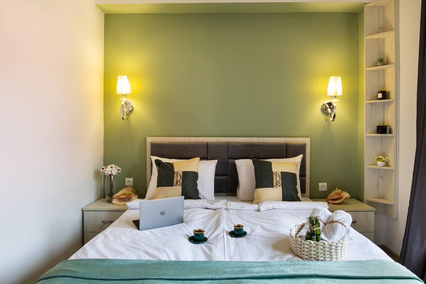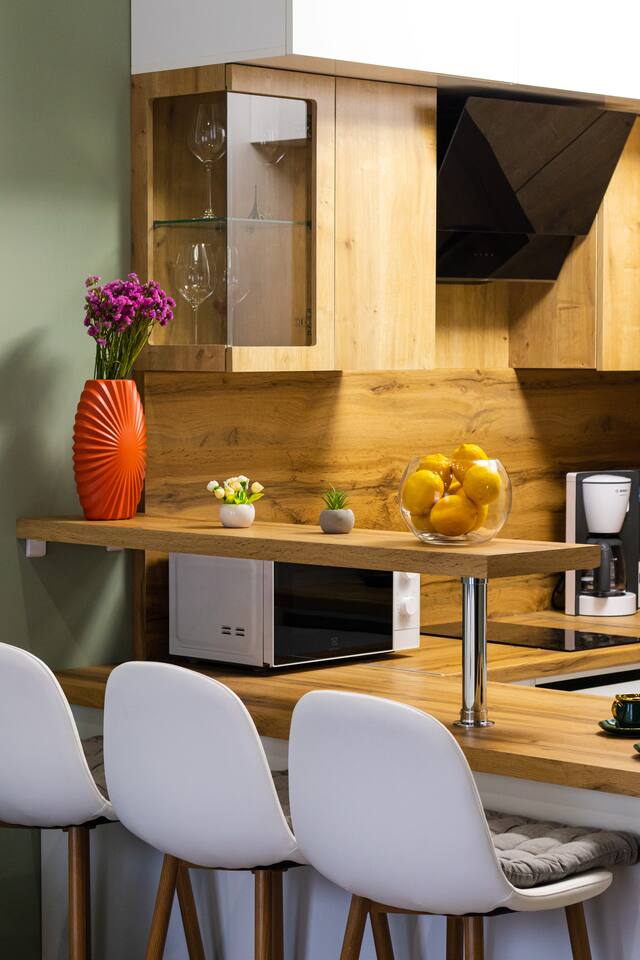 Welcome to Emerald by Hotelise, our stunning new duplex project located in the heart of the city. This unique space, inspired by the vibrant hues of emerald stone, offers a bright, airy environment filled with natural light from large windows. Living Room: Step into the expansive living room, featuring a spacious L-shaped sofa and soaring high ceilings. The duplex design includes a private split ceiling space accessed by stylish stairs, perfect for a cozy armchair retreat. The open-plan area is complemented by three bar stools around the breakfast bar, and a round dining table situated next to the large windows, creating a delightful setting for meals. The room is equipped with AC to ensure your comfort. Kitchen Area: The fully stocked kitchen is designed for both functionality and style. It includes a kettle, toaster, microwave, stove, extractor, fridge, and ample storage space. The breakfast bar adds a touch of convenience for casual dining or morning coffee. Bedroom: The bedroom features a large king-size bed with bedside tables and a high-quality mattress for a restful night’s sleep. A working desk with a TV and a wardrobe provide ample space for work and storage, ensuring a comfortable and organized stay. Bathroom: The bathroom is modern and well-appointed, with a shower cabin, LED mirror, new tiles, and excellent water pressure for a refreshing shower experience. Hallway: The hallway includes a full-size mirror, adding to the practical and stylish design of the apartment. At Hotelise, we are committed to creating spaces that go beyond mere accommodation. Emerald is a testament to our dedication to design, comfort, and memorable guest experiences.