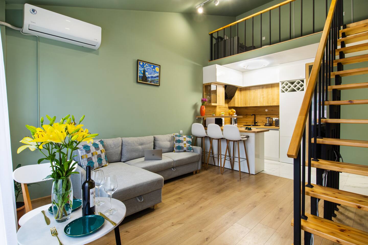 "Emerald by Hotelise" | Welcome to our duplex loft in the ♥ of Yerevan ✓ 24/7 self-check-in. ✓ 5/5 floor (must climb stairs) ☆ New Refurb ✓ 50 sqm ✓ 200 Mbit WIFI ✓ Central ✓ AC ✓ Smart TV ✓ Fully equipped kitchen ✓ Washer ✓ Fresh linens + towels ✓ Starter luxury toiletries ♥ At hotelise we are creating memories one stay at a time!