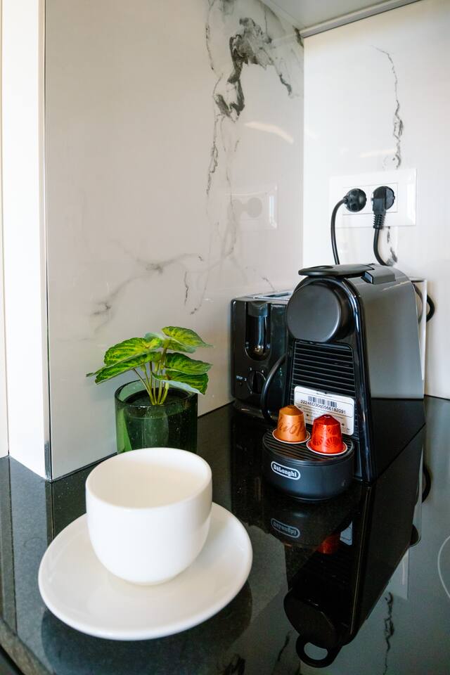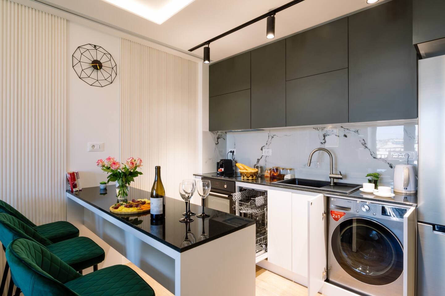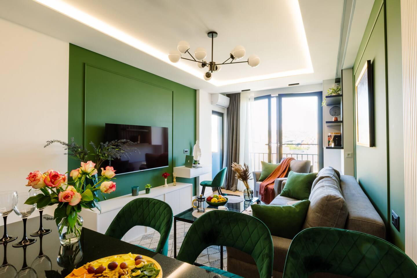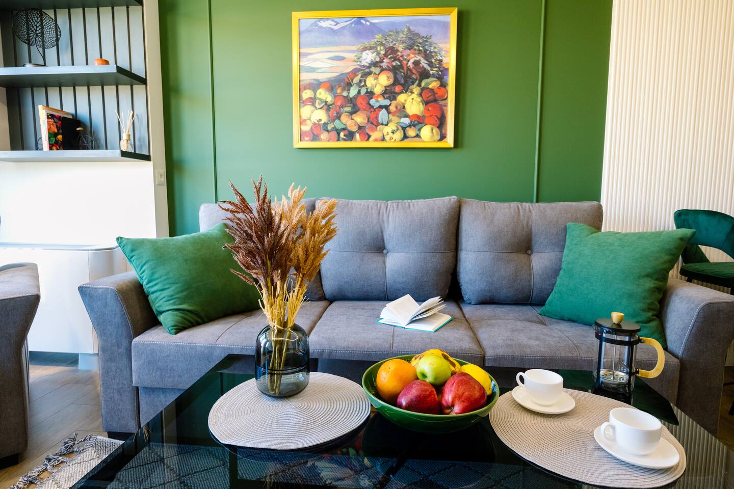 Experience a stay that is a cut above the rest in the pulsing heart of Yerevan with our ultra-premium, designer apartment. Every inch of this magazine-worthy home, located in a secure and peaceful neighborhood, is curated with high-end products and impeccable taste. Kick back in the contemporary living room where a premium four-seater sofa bed is perfectly paired with a coffee table and a large HD TV, offering complimentary Netflix for your entertainment. A sleek work desk allows you to catch up on work, while the French balcony offers city views. The room is kept comfortable with air conditioning, modern lighting, and sophisticated decor. A large, oil-painted artwork from a renowned local artist adds an extra dash of luxury. Savor the culinary possibilities in the open-plan kitchen, fully fitted with luxury amenities. These include a dishwasher, oven, hob, capsule coffee machine, and luxury stone worktops. A full-length mirror complements the space beautifully. Retreat to the serenity of the bedroom, where a large king-size bed with a premium mattress awaits. Enjoy access to the balcony, plentiful storage, and an enchanting oil painting that adds a soothing aura. Another full-length mirror enhances the space. Step out onto the balcony, complete with chairs and a table, making it the perfect spot for savoring evening wines or morning coffee while soaking up the city's energy. Experience ultimate luxury in the bathroom, adorned with large, premium porcelain tiles that instantly elevate the space. Indulge in a spa-like experience with the Hansgrohe shower set and large shower head, complemented by a large mirror and a comfortable shower cabin. Embrace the unique opportunity to live in style and luxury during your stay in Yerevan. Our dedicated team is ready to ensure a memorable experience in this truly one-of-a-kind home. Don't miss out on this slice of luxury in the city!