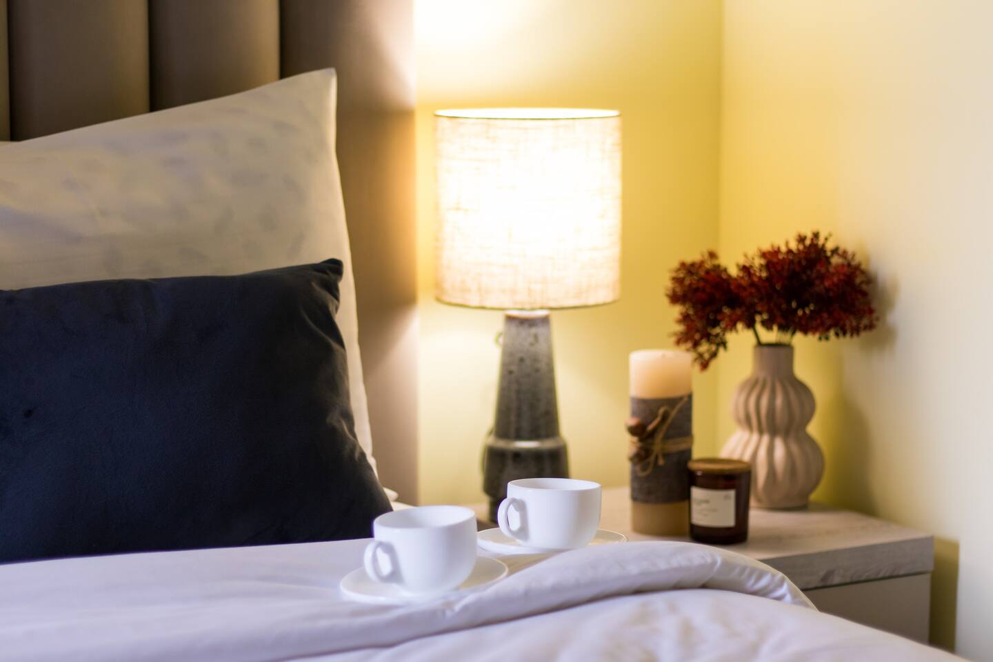 Welcome to "Galleria," a modern retreat nestled in a brand-new building boasting exceptional infrastructure and amenities. This listing is perfect for those seeking contemporary comforts, ample space, and a touch of luxury. Building: "Galleria" is located in a pristine new building equipped with reliable lifts and ample free parking. The building's modern design and infrastructure ensure a seamless and enjoyable living experience. Living Room: The living room is a haven of comfort and style, featuring a corner-shaped sofa perfectly positioned for enjoying the free Netflix subscription on the TV. A comfortable dining table sits beside top-to-bottom windows and doors that lead to the balcony, inviting natural light and fresh air. The large AC unit is efficient enough to climatize the entire apartment, and the space flows seamlessly into the open plan kitchen. Kitchen: This fully stocked kitchen is a chef's dream, equipped with a dishwasher, coffee machine, washer, oven, stove, extractor, kettle, toaster, and microwave. The ample storage ensures a clutter-free environment, making cooking and entertaining a breeze. Bedroom 1: The master bedroom promises restful nights with a king-size bed and premium mattress. Bedside tables and reading lights add to the room's functionality, while the wardrobe and a chest of drawers with a mirror provide plenty of storage. Bedroom 2: This room doubles as a serene bedroom and a productive workspace, featuring a working desk and a premium king-size bed with a comfortable mattress. The ample wardrobes and a mirror complete the room's accommodations. Bathroom: The bathroom is equipped with a modern shower cabin, high-quality taps, and a shower set. Consistent good water pressure and reliable hot water make for a refreshing experience. The full bathroom includes a toilet, vanity unit, and mirror. Balcony: Step out onto the balcony for a breath of fresh air and enjoy the outdoor furniture, perfect for sipping coffee in the morning or wine in the evening. "Galleria" offers a refined blend of comfort, style, and convenience, making it an ideal choice for a memorable and luxurious stay.