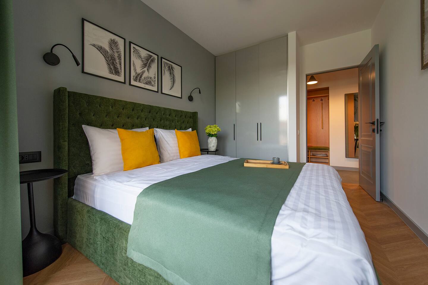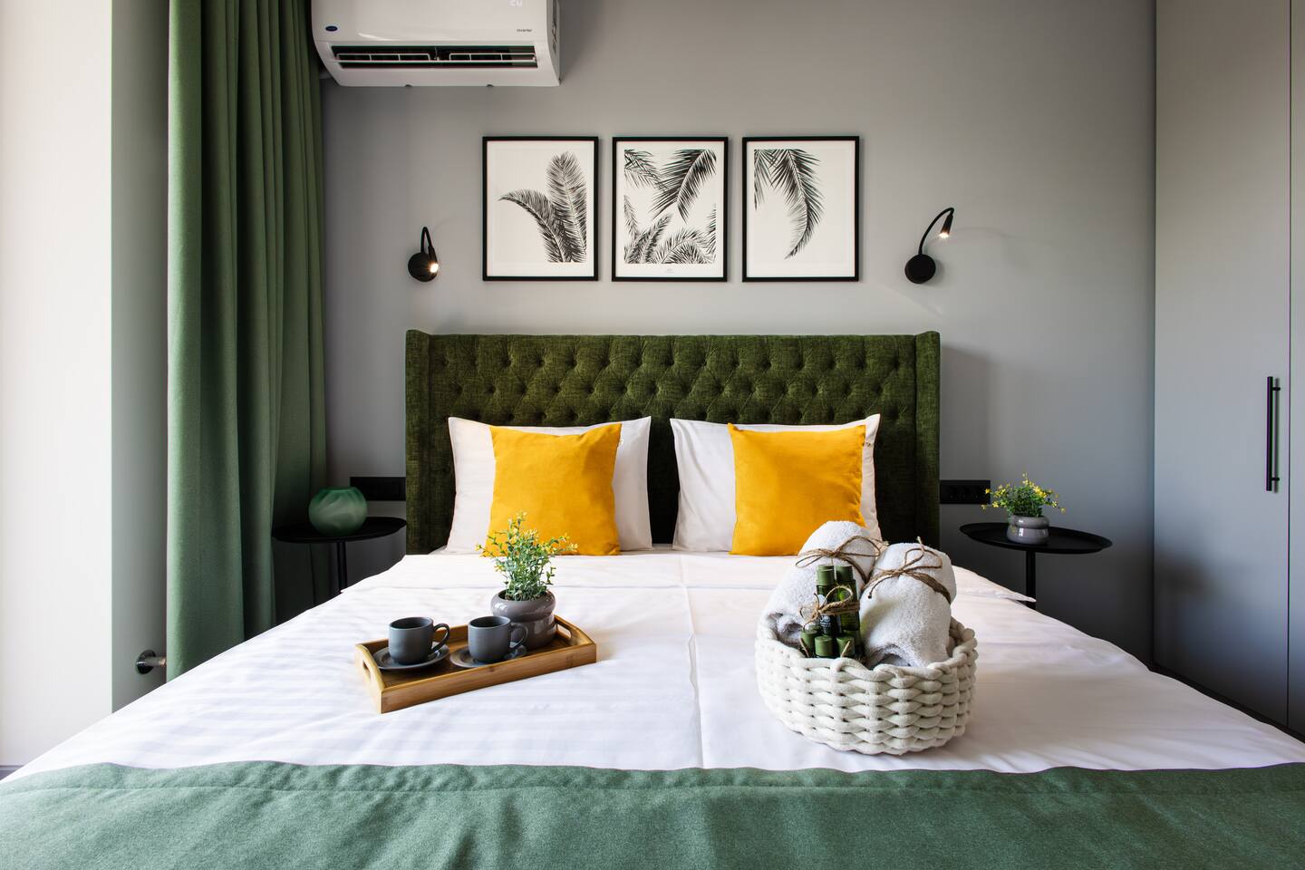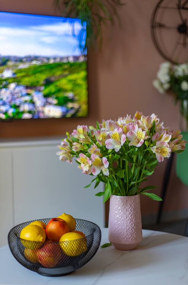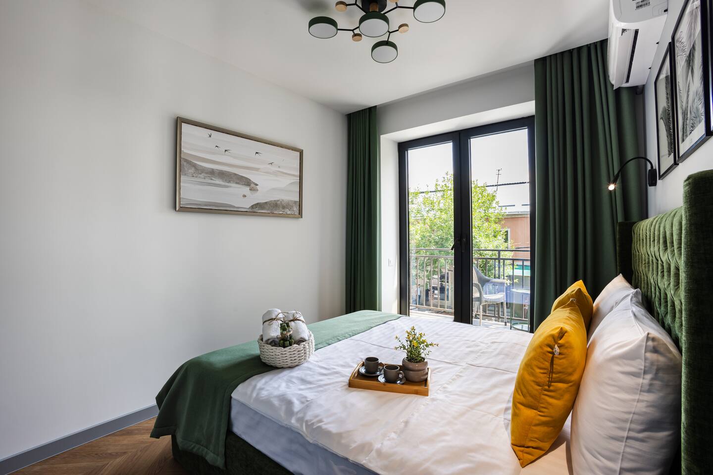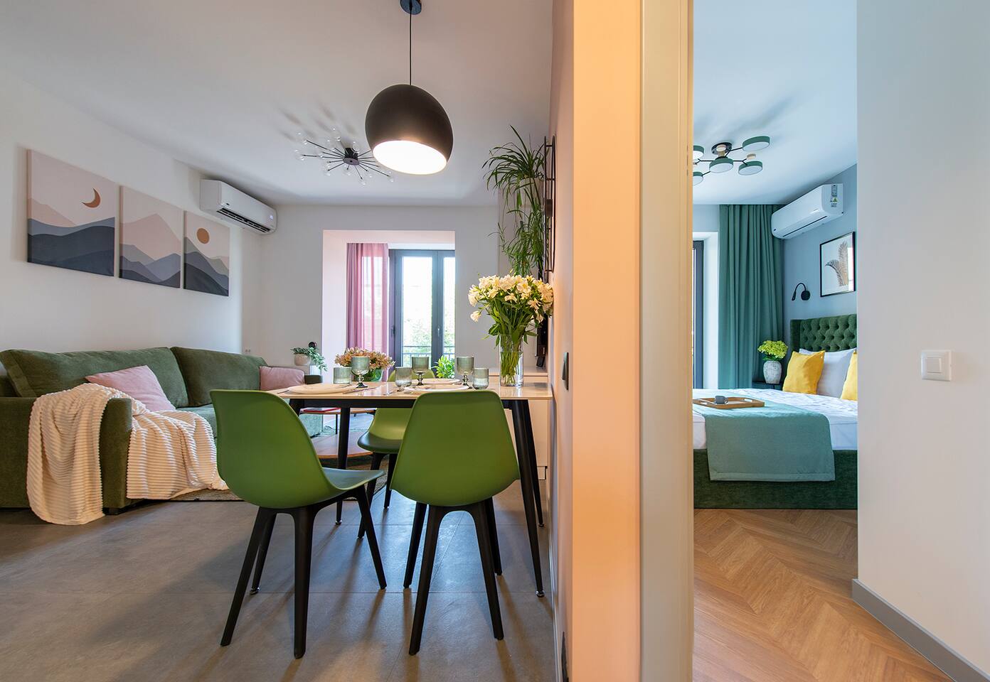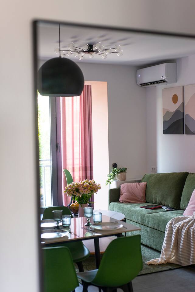 Welcome to Harmony by Hotelise, one of our two specially crafted projects located side by side in the heart of Yerevan. Just like its neighboring studio, Melody, Harmony embodies modern design and comfort. This one-bedroom apartment is a true gem, offering a perfect blend of style, functionality, and warmth, making it an ideal retreat for any traveler. Living Room: Step into the living room, where soothing green tones set a tranquil atmosphere. The space is enhanced by a floor-to-ceiling French balcony, framed with premium aluminum profiles, letting in an abundance of natural light. The room is furnished with a cozy sofa bed, a coffee table, and a TV zone with a large Smart TV. An efficient AC unit keeps the room comfortable, and the dining table for four provides a lovely spot for meals. The area near the French balcony also doubles as a workspace, perfect for those who need to stay connected while away. Kitchen: The open-plan kitchen is a masterclass in sleek design and practicality. It offers ample storage and a stylish backsplash that adds character to the space. Fully equipped with a washer-dryer combo, dishwasher, oven, stove, kettle, and coffee machine, this kitchen ensures that all your needs are met. A large fridge completes the setup, making it a delightful space for cooking and dining. Bedroom: The bedroom is your private sanctuary, featuring a king-size bed with an exquisite bed frame and a premium mattress that guarantees restful sleep. The room is adorned with calming colors and tasteful wall art, creating a serene ambiance. Like the living room, it boasts top-to-bottom windows and doors, providing direct access to the balcony. Balcony: The balcony is an inviting outdoor space, perfect for savoring your morning coffee or unwinding with a glass of wine in the evening. Furnished with comfortable outdoor seating, it offers a peaceful spot to relax and enjoy the fresh air. At Hotelise, we take pride in creating spaces that resonate with both style and comfort. With Harmony and Melody side by side, we've designed not just apartments, but experiences that make you feel at home in Yerevan. Whether you’re staying in Harmony or Melody, you’ll find the same dedication to quality and thoughtful design. Welcome to your new favorite place, where every stay becomes a cherished memory.