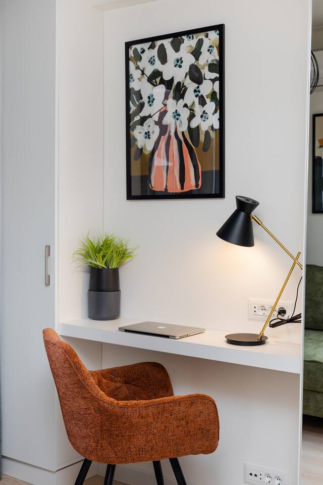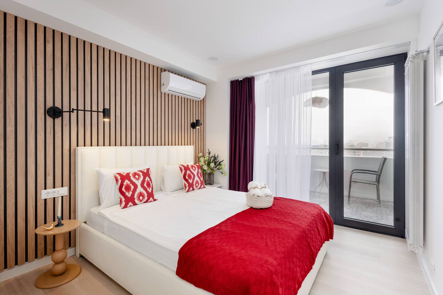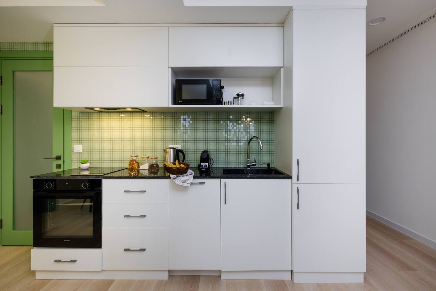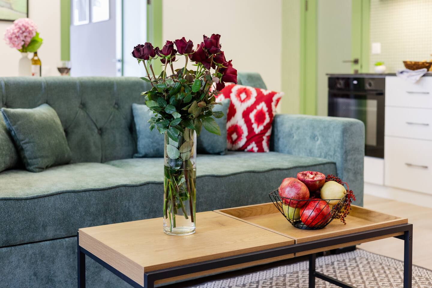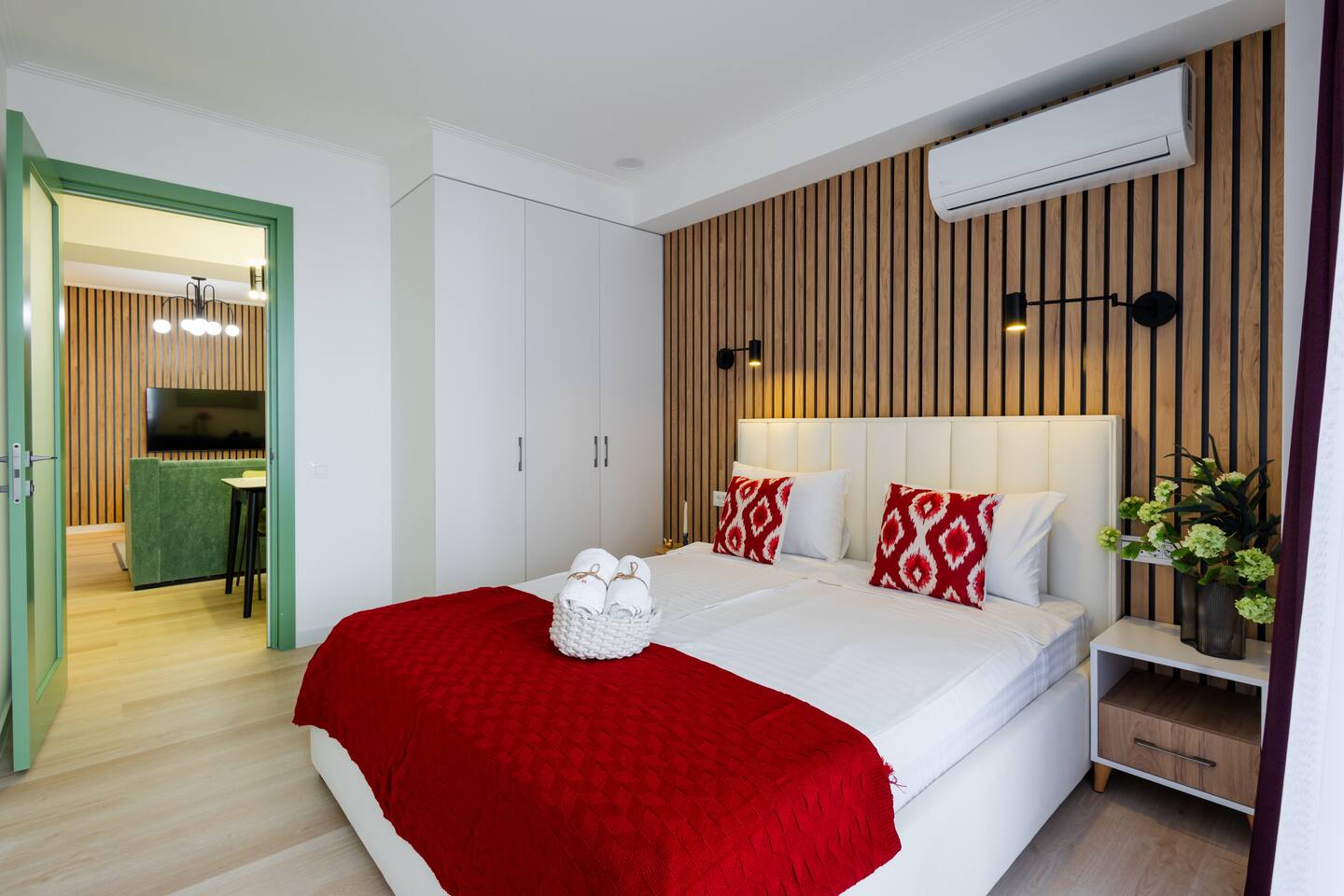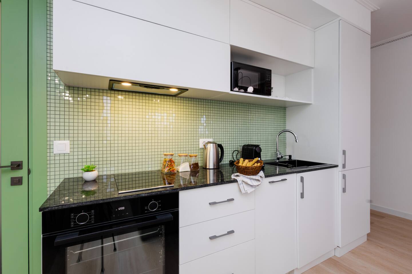 Welcome to "The Grand Central Suite" by Hotelise — a modern, thoughtfully designed retreat in the heart of it all. Living-room The open-concept living room and kitchen are designed for both comfort and functionality. The space features a bright, modern living area with stylish furnishings and a relaxed atmosphere, seamlessly connected to a fully equipped kitchen. This stylish space blends clean lines, warm finishes, and comfort-forward details, making it perfect for both short stays and longer visits. The green color concept adds a distinctive and refreshing character to the space. Carefully selected green tones bring a sense of calm and balance, creating a unique look that feels both modern and inviting. Bedroom Enjoy an open, airy layout with contemporary furnishings, a comfortable sleeping area, and a fully equipped space to relax or work. Balcony Step out onto the private balcony to sip your morning coffee or unwind in the evening with city views and fresh air. Whether you’re in town for business or a weekend escape, you’ll love the suite’s central location, smart design, and calm, upscale vibe — a true home base for exploring the city.
