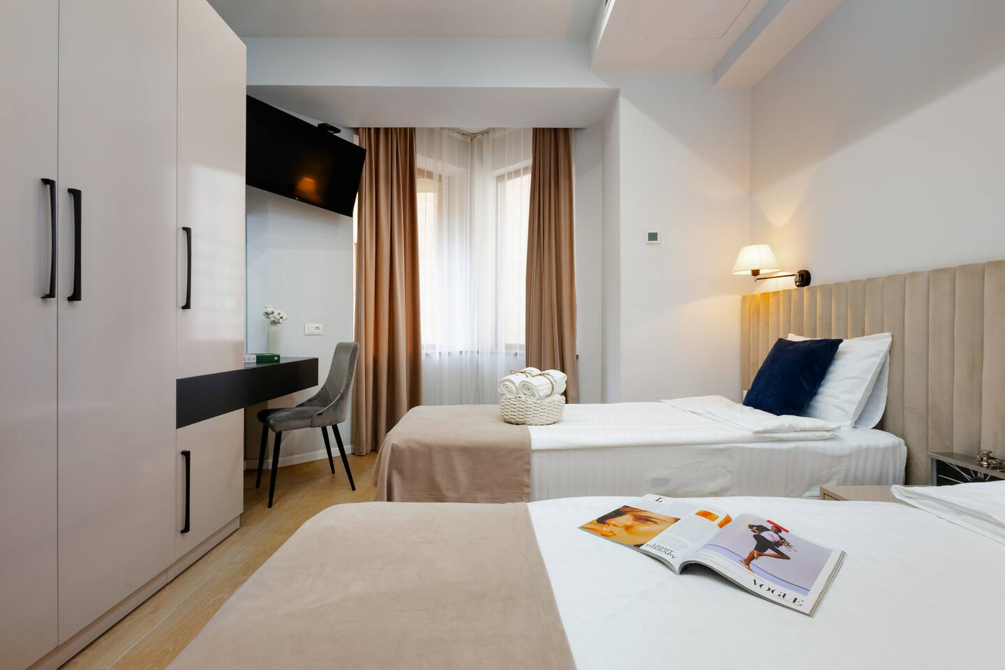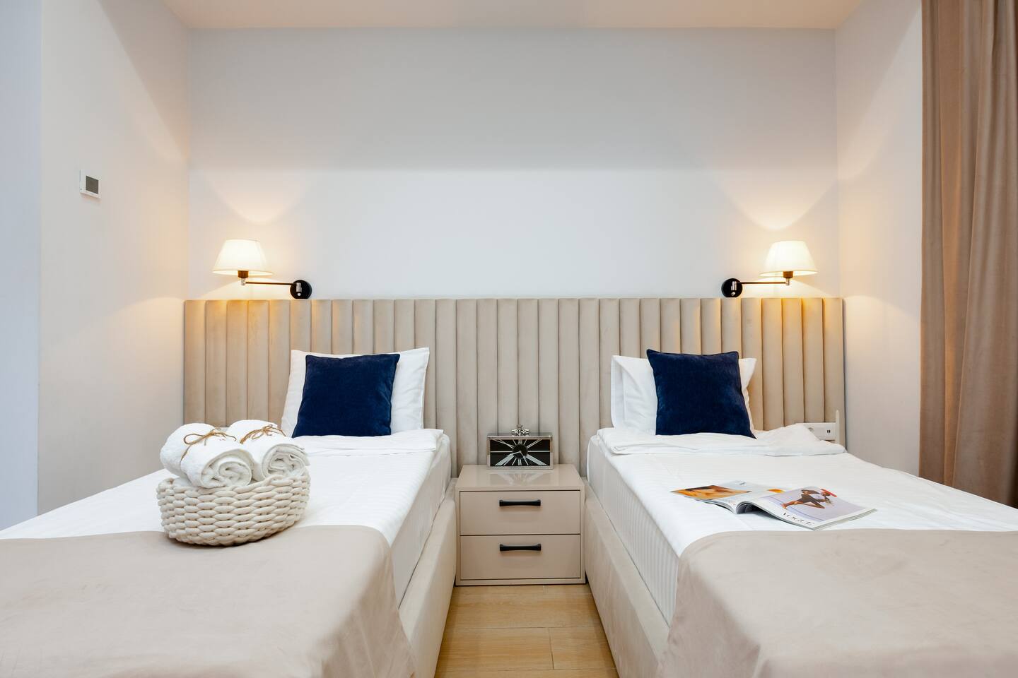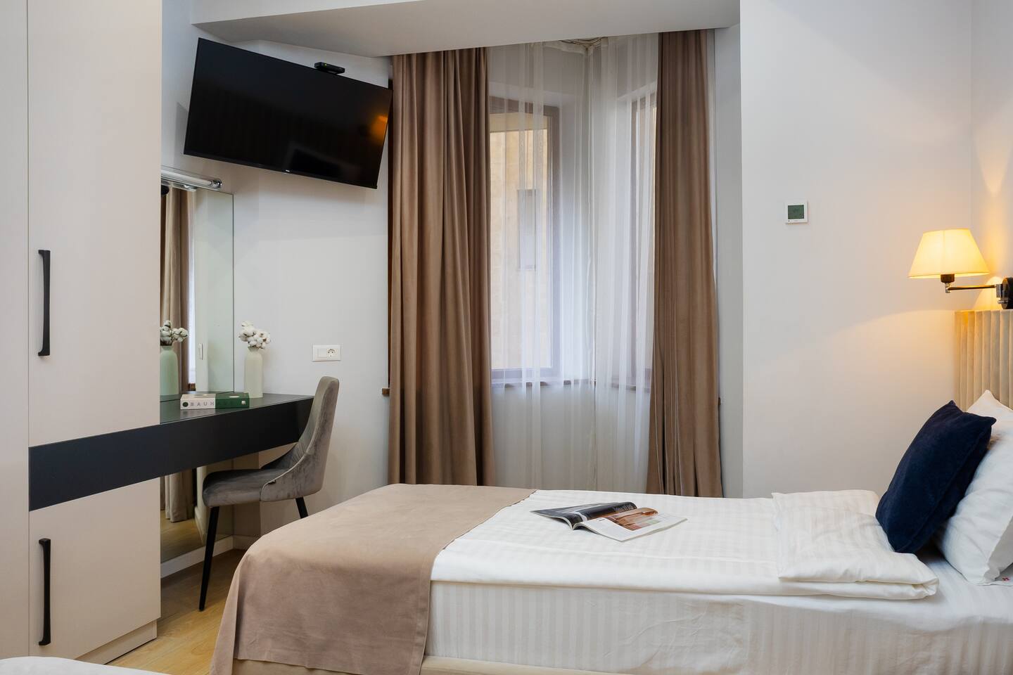 Famous for its restaurants, music venues and cosmopolitan nature this spacious apartment’s locale will be hard to beat for anyone seeking to be in the thick of Yerevan’s Aram Street neighbourhood. Our guests love the generous square footage, location, atmosphere, luxury design. This property is the epitome of excellence. No expense has been spared in the creation and design of this luxury two-bedroom apartment, adorned with only the finest finishes and materials. This property would be the envy of any interior design magazine. A property that exudes indulgence, while inhabiting a unique character. The apartment compromises a large reception room, large windows double glazed giving you all the natural light you need, a fully fitted bespoke kitchen with brand new appliances, quality wooden floors, and two large bedrooms. One bedroom benefits from two connectable single beds, forming a comfortable king bed, great for friends sleeping apart, and couples sleeping together! Your private apartment is just part of the package; don't forget about the great team that will be supporting you throughout your stay in case you need anything!