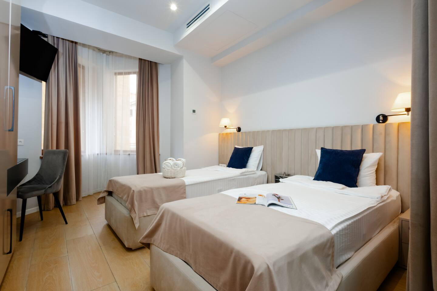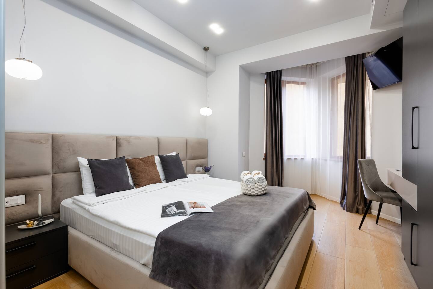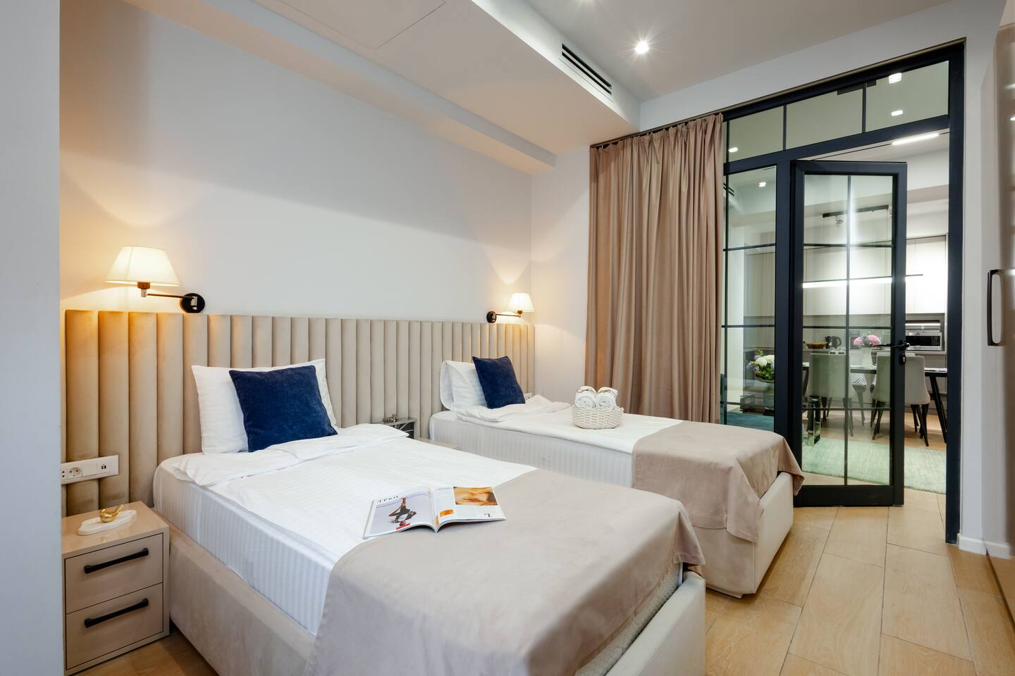 Famous for its restaurants, music venues and cosmopolitan nature this spacious apartment’s locale will be hard to beat for anyone seeking to be in the thick of Yerevan’s Aram Street neighbourhood. Our guests love the generous square footage, location, atmosphere, luxury design. This property is the epitome of excellence. No expense has been spared in the creation and design of this luxury two-bedroom apartment, adorned with only the finest finishes and materials. This property would be the envy of any interior design magazine. A property that exudes indulgence, while inhabiting a unique character. The apartment compromises a large reception room, large windows double glazed giving you all the natural light you need, a fully fitted bespoke kitchen with brand new appliances, quality wooden floors, and two large bedrooms. One bedroom benefits from two connectable single beds, forming a comfortable king bed, great for friends sleeping apart, and couples sleeping together! Your private apartment is just part of the package; don't forget about the great team that will be supporting you throughout your stay in case you need anything!