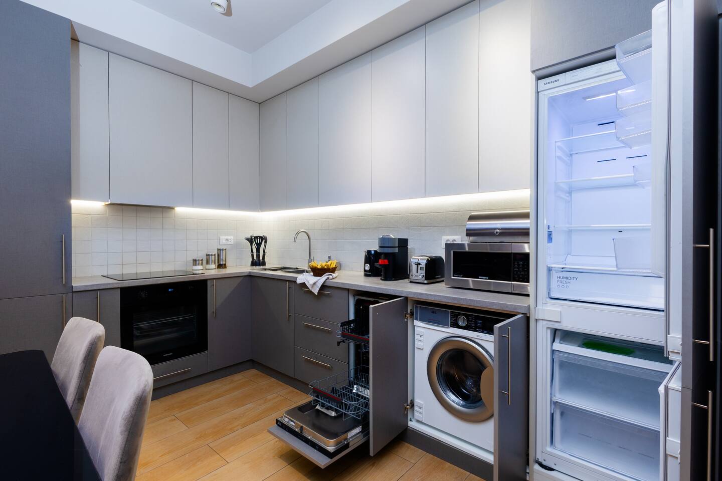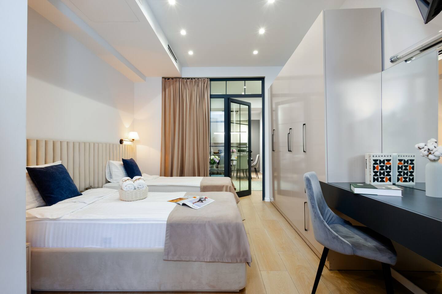 1. There will be an additional 'linen' charge for those who use a sofa-bed and/or travel cot. Guests must request an extra sleeping place before booking. 2. The apartment will have Starter Luxury Hotel Toiletries, fresh linen and towels. Stays that are longer than 20 nights will receive fresh linen and towels, starting on the 10th day from arrival. You can request additional cleaning, but there will be an extra charge for this service. 3. A starter supply of household cleaning and hygiene products will be available on the property for use as well as tea, coffee and water to get you through your first morning. The guest is responsible for purchasing any additional supplies 4. Please note, If you need a FREE early check-in or late checkout, we can only confirm if it is available the same day of your check-in/check-out, as it depends on if there are other reservations back to back with yours. 5. If the listing mentions Netflix or other streaming platforms, it refers only to the availability of the app on the smart TV. We no longer provide shared or corporate accounts. Guests must log in with their subscription after check-in.