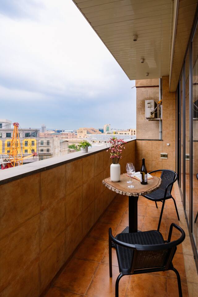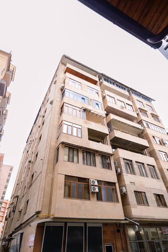 Add my listing to your wishlist by clicking the ♥ in the upper-right corner: ◦ 24/7 Self Checkin ◦ 8/11 floors, Lift ◦ Super Central ◦ Balcony ◦ Spacious 80m2 ◦ Designer Made ◦ Lux Decor, New Building ☆ Near Dancing Fountains! ◦ A/Cs in Living Room And Master Bedroom ◦ Smart TV ◦ 200 Mbit WIFI ◦ Fully equipped Kitchen ◦ Fresh Linens + towels ◦ Starter Luxury Hotel Toiletries ☆ Brand new building in the most central part the Yerevan with famous Dancing Fountains