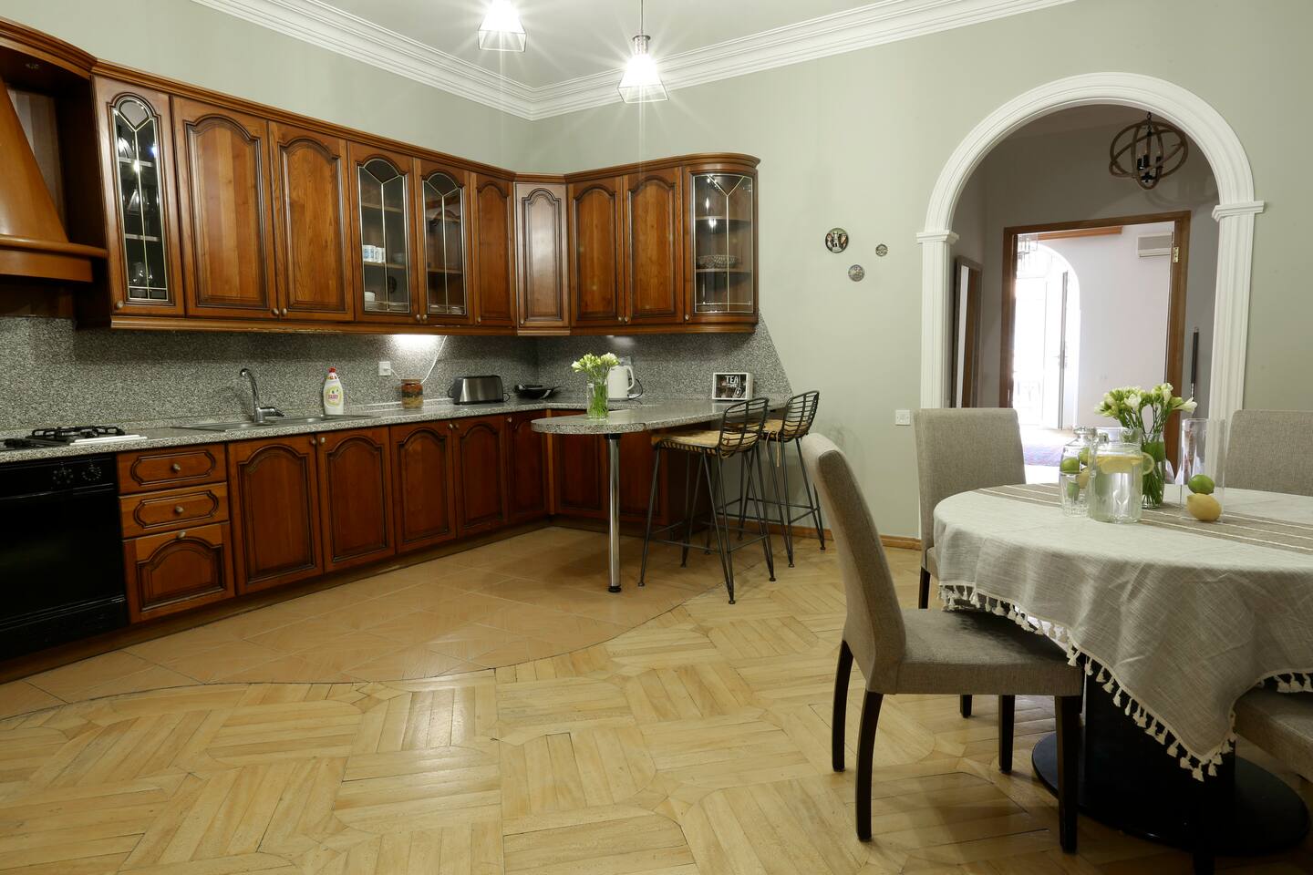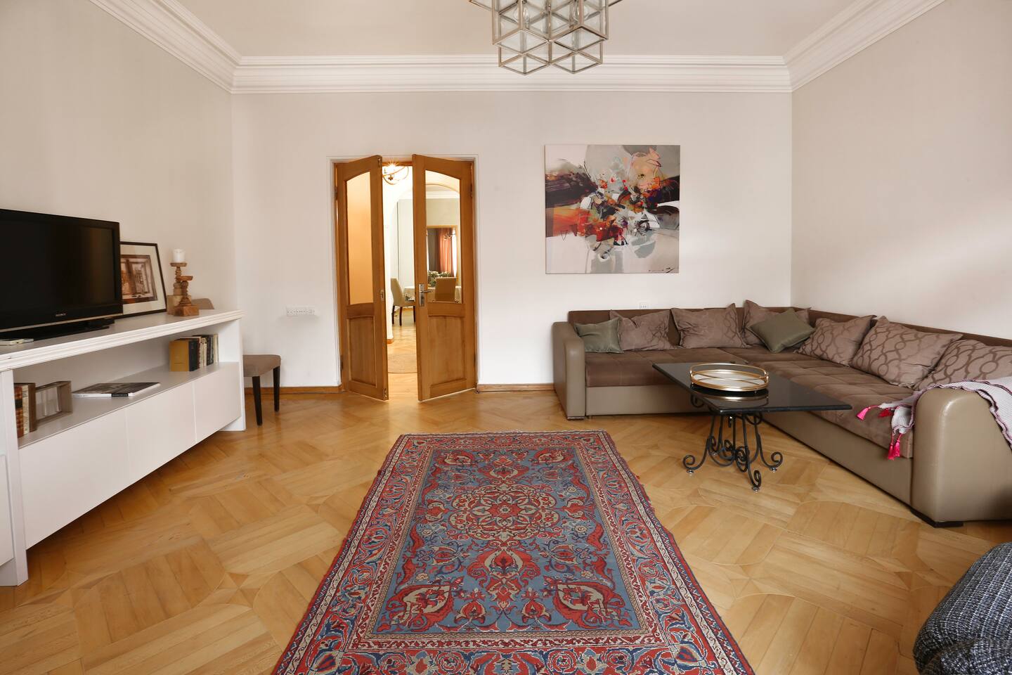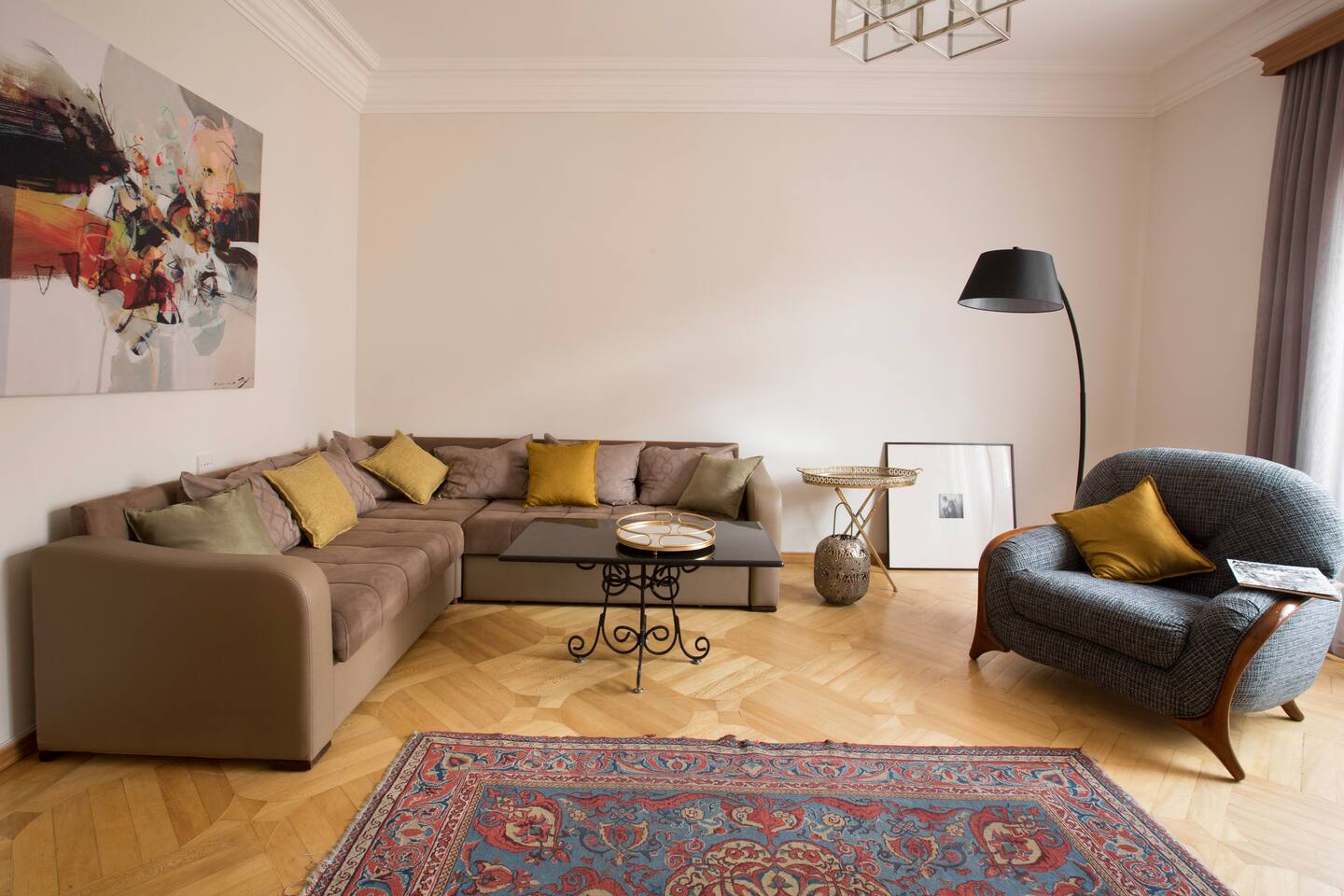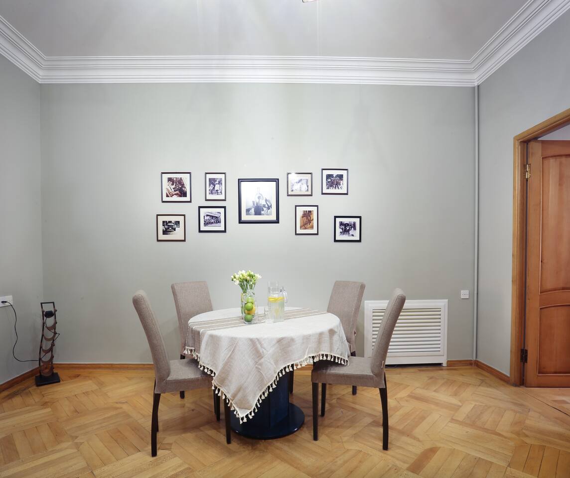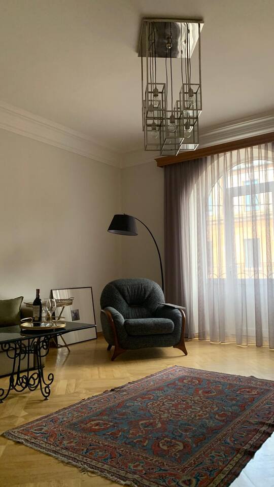 The apartment is located in an old historical building, famous for the iconic show called "our yard" (մեր բակը), overlooking the old town, made with a classic design, really hidden gem! Right in the very centre, one minute away from Opera House. The best location for exploring the city, enjoying the nightlife and wine scene at the famous Saryan Street (check my guidebook)! It's just a few steps to many Yerevan's monuments. You can find trendy restaurants, bars, clubs, 24/7 stores and nightlife nearby. SAS supermarket is at the doorstep. We are pleased to offer hotel-standard hospitality services and provide hotel-quality linen & towels, bathroom essentials and professional cleaning services. A cot is available upon request.