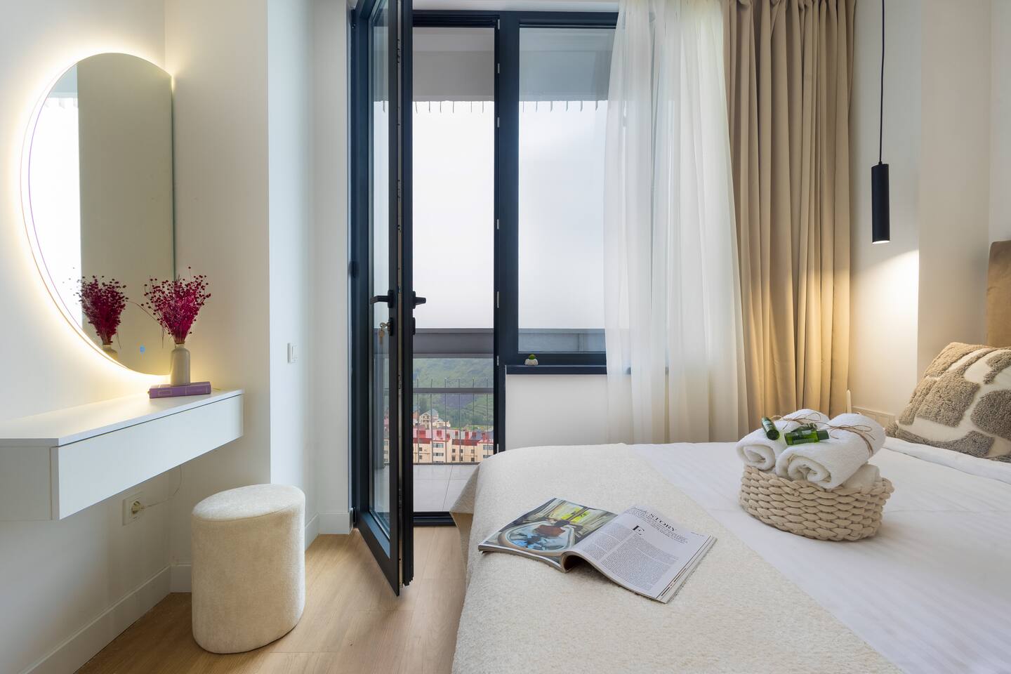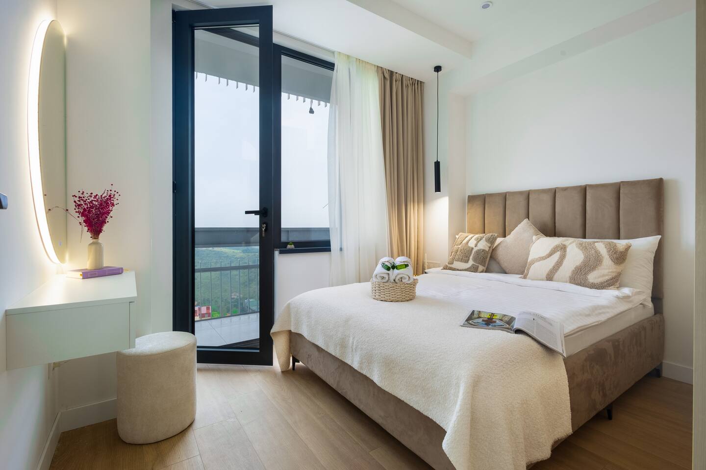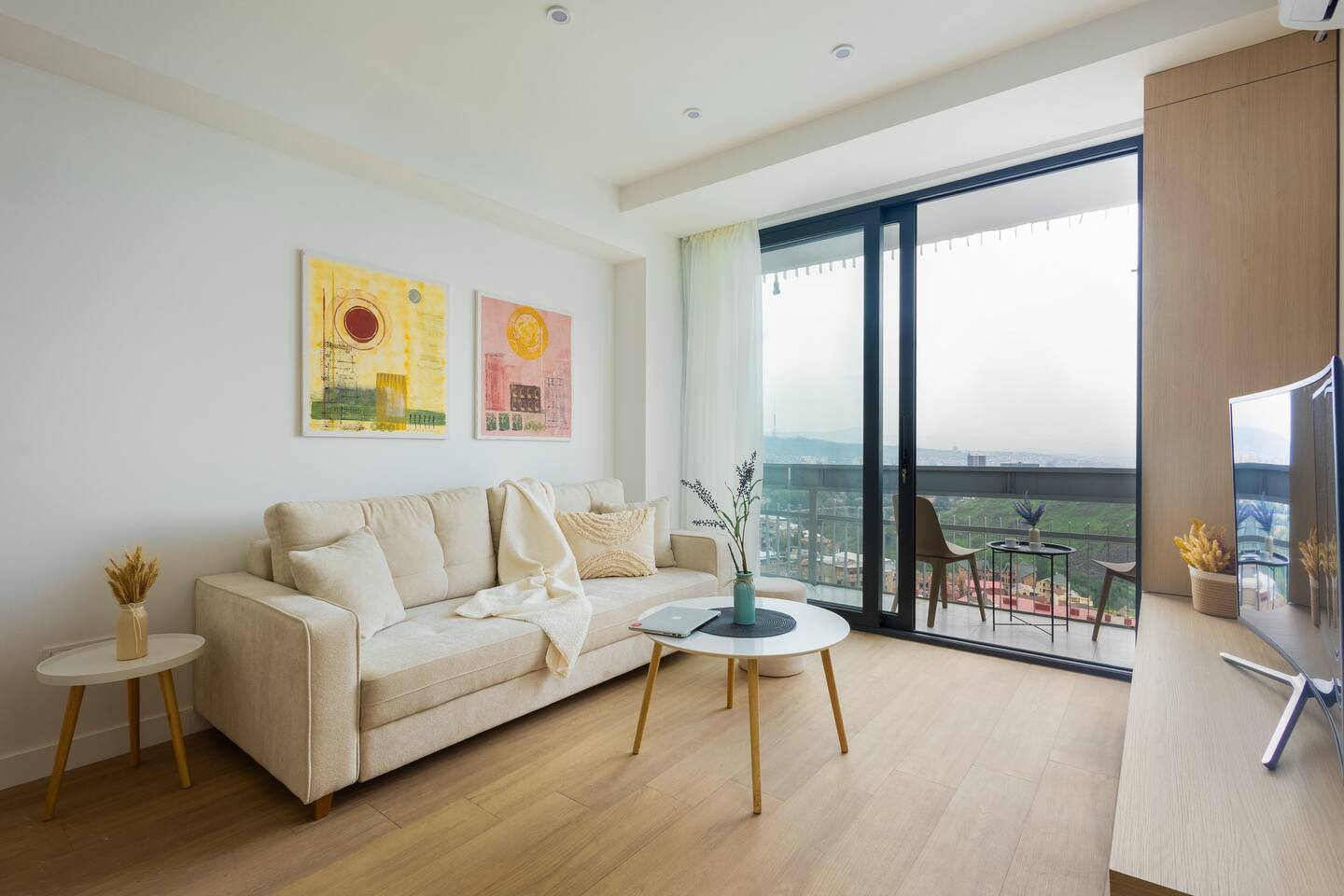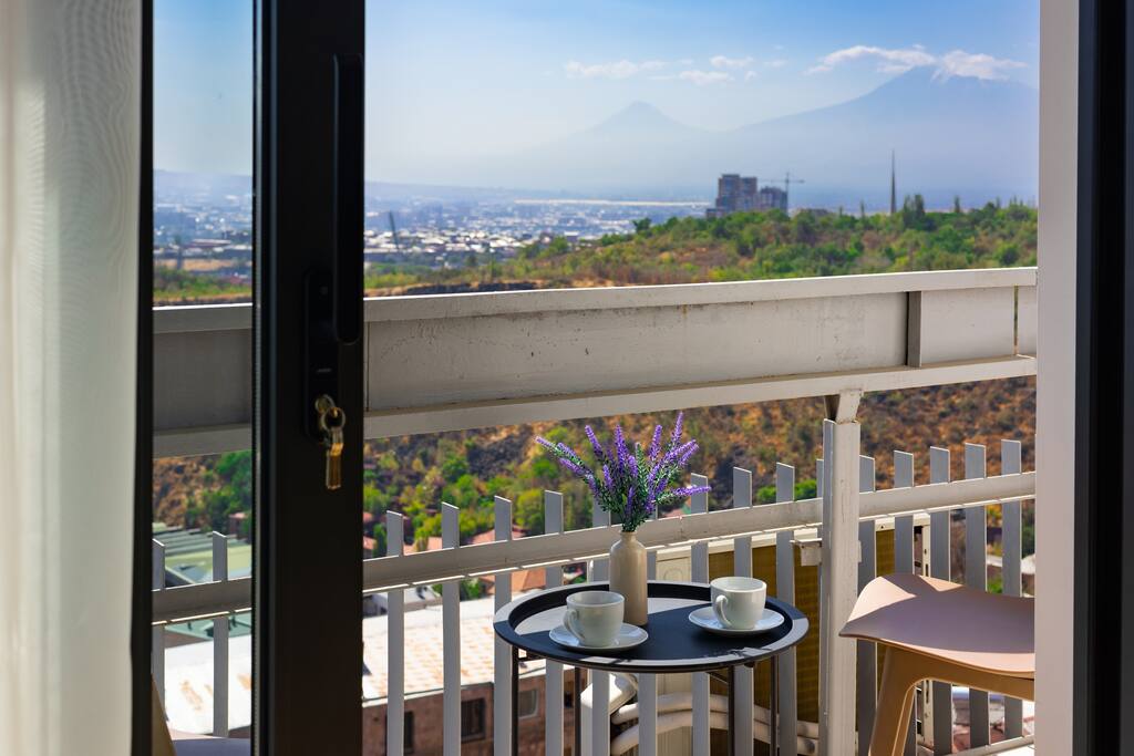 Perched on the 9th floor at 8 Orbeli Brothers Street, Pastel by Hotelise overlooks the breathtaking Hrazdan Canyon. With sweeping, unforgettable views and soft, designer touches throughout, this compact gem blends comfort, charm, and modern elegance — ideal for a romantic getaway or a stylish city break. ⸻ Living Room & Kitchen: Step into a light-filled open-plan living area where design meets comfort. A super comfy sofa (that easily turns into a bed) sits beneath custom wall art, with massive floor-to-ceiling sliding windows opening onto a private patio. The view? Simply breathtaking. The fully equipped kitchen has everything you need — from microwave, stove, and oven to an integrated large fridge and a sleek dishwasher. Loads of storage makes it feel more like home. Bedroom: Airy, calm, and beautifully styled, the bedroom offers direct access to the balcony with the same spectacular view. A brand-new 160x200 premium bed and mattress guarantee restful sleep. You’ll also find practical wardrobe space and ambient lighting to complete the experience. Bathroom: Modern and elegant, the bathroom features premium grey tiling, a powerful walk-in shower, great water pressure, LED-lit mirror, and quality fixtures throughout — everything you need to refresh in style. Balcony: The crown jewel of Pastel. Step out onto the balcony and take in canyon views that are nothing short of soul-stirring. Whether it’s a morning coffee or a sunset wine, this spot creates the kind of memories you’ll never forget. ⸻ Welcome to Pastel by Hotelise — a peaceful, stylish nest with views to fall for. ♥ At Hotelise, we create memories one stay at a time.