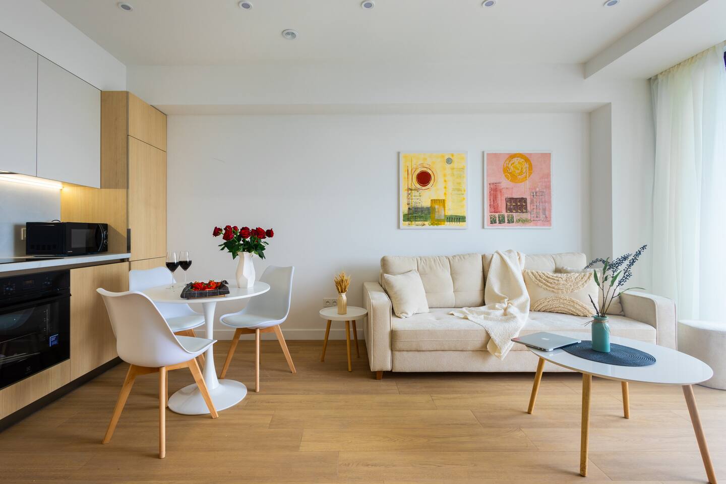 ☆ Welcome to “Pastel” by Hotelise, a designer-made soft elegance with breathtaking views from the balcony (construction nearby ). Our fresh addition has already mesmerised our first lucky guests! ✓ 24/7 Self-Check-In ✓ 9th Floor /w Lift ☆ Balcony to Die For ✓ Designer-Made ✓ Bed 160 x 200 ✓ 44 sqm ✓ 1 A/C (in the living room) ✓ Fast WiFi + TV Channels ✓ Dishwasher ✓ Washer ✓ Fresh Linens & Towels ✓ Starter Luxury Toiletries ♥ At Hotelise, we create memories one stay at a time!