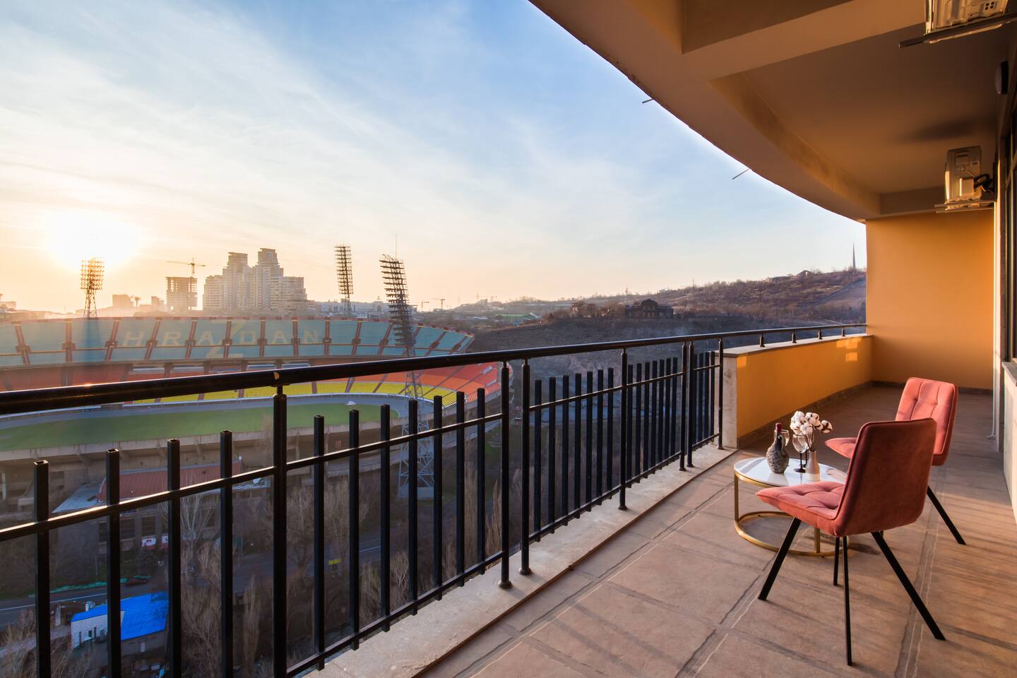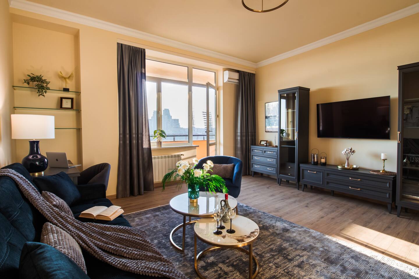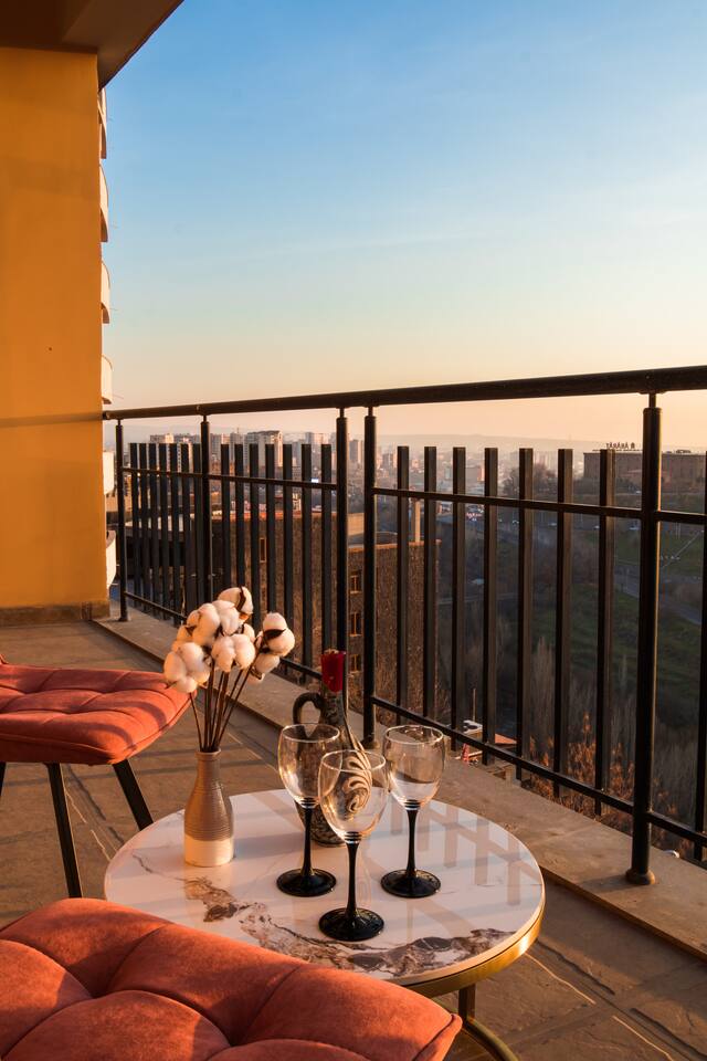 Welcome to "Riverview" By Hotelise an exquisite luxury apartment nestled in the elite Dzorap residential complex, located in the heart of the city next to the Hrazdan valley. Riverview is not just an apartment; it's an experience of indulgence, style, and serenity, designed for those who seek an extraordinary living space. Location and Building: "Riverview" is situated in a modern, eco-friendly building surrounded by a lush green belt, offering fresh air and tranquility. The building boasts state-of-the-art infrastructure, including lifts, central heating and cooling, and all the amenities expected from a new elite construction. Its elevated location provides awe-inspiring views of Mount Ararat, the Ararat Valley, Tsitsernakaberd's green areas, and Mount Aragats. Living Room: Enter into a world of luxury with designer furnishings and special order pieces from around the globe. The living room features a comfortable seating area with a sofa and armchair, a working desk, and a chic TV zone set against a backdrop of lovely furniture. Large windows and doors open to a balcony, offering unparalleled views. The spacious hallway, adorned with artwork and mirrors, leads into this magnificent living space. Kitchen: The separate kitchen is a culinary dream, fully stocked with extensive storage, a large fridge, dining table, TV, microwave, stove, and dishwasher. Like the living room, it too boasts doors to the balcony and large windows, creating a bright and airy space. Bedroom: Retreat to the bedroom where comfort meets luxury. The king-size bed with a premium mattress promises a restful sleep. Access the balcony to enjoy the majestic views through large windows that allow an abundance of natural light. The room is equipped with blackouts for privacy, AC for comfort, and a wardrobe offering ample storage. Full Bathroom: The bathroom is a statement of elegance with premium tiles and complete new quality fixtures, including a hot tub and premium shower sets. Enjoy the comfort of good strong water pressure in this full bathroom. WC: A separate WC includes a washer and dryer, doubling as a utility space with additional storage. Balcony: Step out onto the expansive balcony and immerse yourself in the breathtaking views of the river, gorge, and the Hrazdan football pitch. It's a perfect setting for relaxing or entertaining, with comfortable outdoor furniture and the stunning bonus view of Mount Ararat. "Riverview" By Hotelise is truly a five-star luxury space, offering an unparalleled living experience. Every detail has been carefully curated to provide an exclusive lifestyle for its residents. Here, you'll find not just an apartment, but a haven of luxury and tranquility.