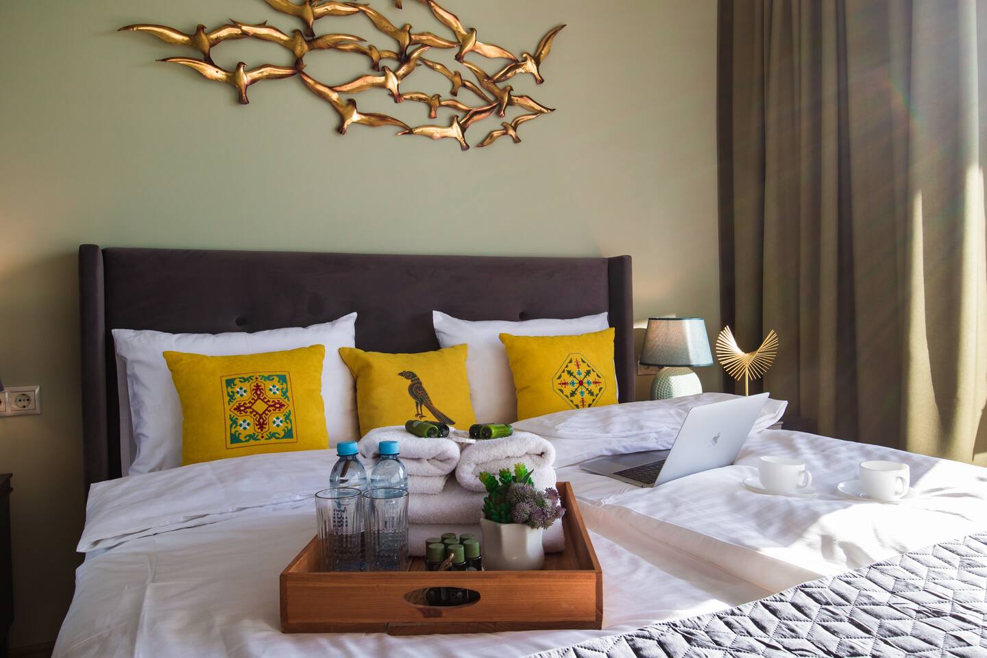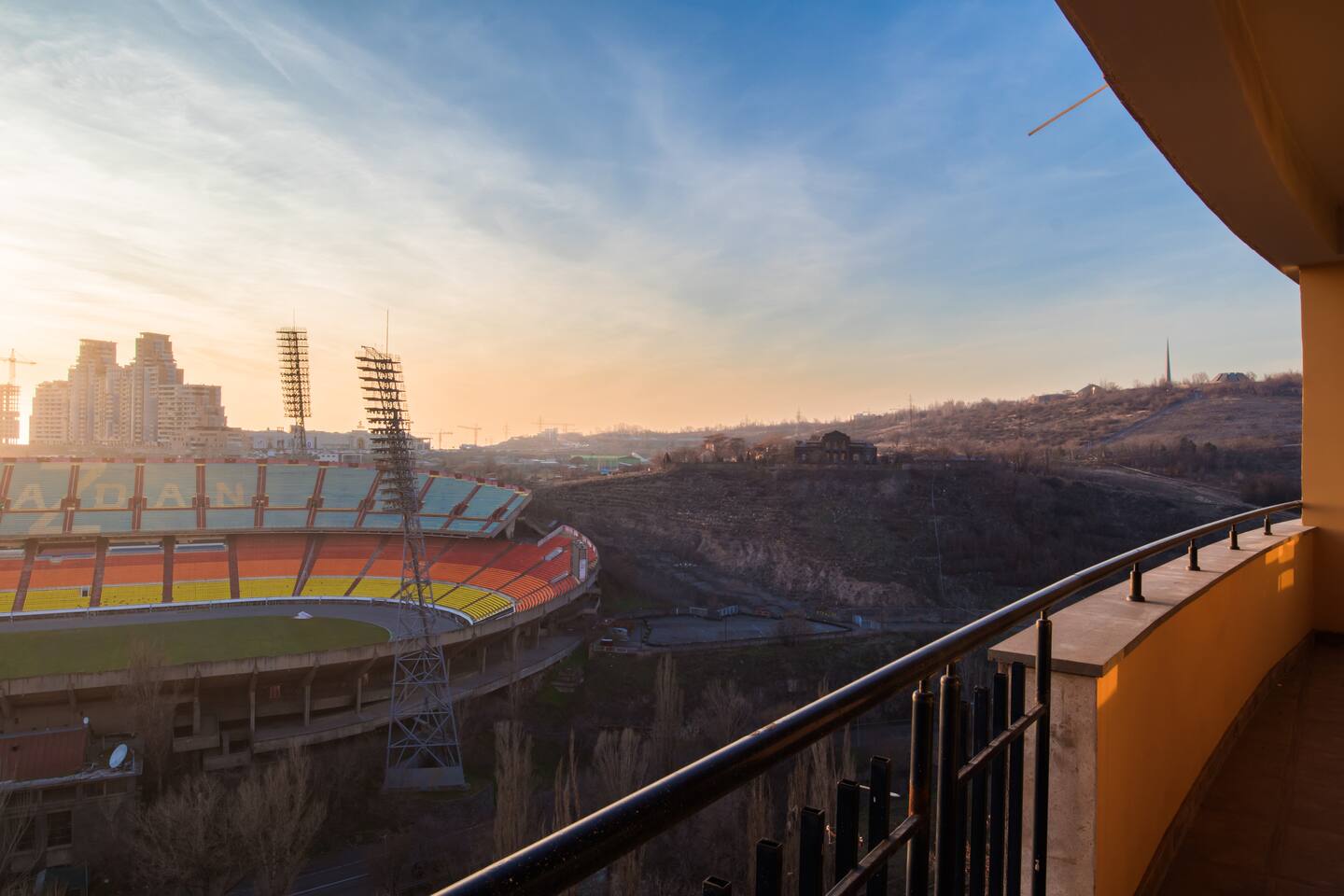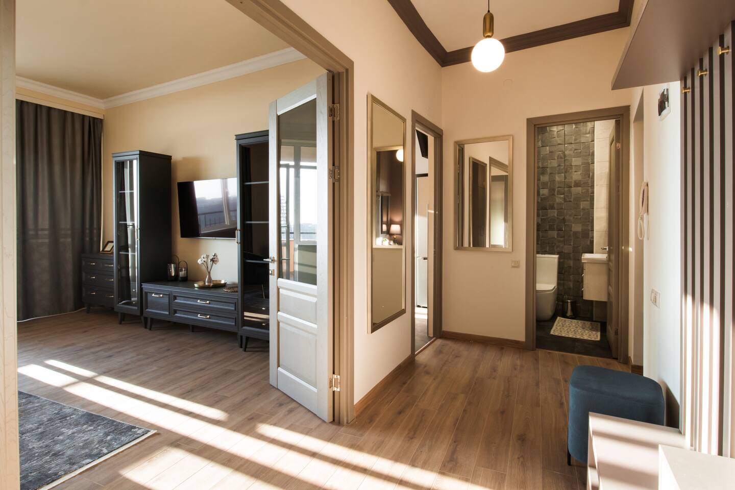 Welcome to "Riverview" By Hotelise an exquisite luxury apartment nestled in the elite Dzorap residential complex, located in the heart of the city next to the Hrazdan valley. Riverview is not just an apartment; it's an experience of indulgence, style, and serenity, designed for those who seek an extraordinary living space. Location and Building: "Riverview" is situated in a modern, eco-friendly building surrounded by a lush green belt, offering fresh air and tranquility. The building boasts state-of-the-art infrastructure, including lifts, central heating and cooling, and all the amenities expected from a new elite construction. Its elevated location provides awe-inspiring views of Mount Ararat, the Ararat Valley, Tsitsernakaberd's green areas, and Mount Aragats. Living Room: Enter into a world of luxury with designer furnishings and special order pieces from around the globe. The living room features a comfortable seating area with a sofa and armchair, a working desk, and a chic TV zone set against a backdrop of lovely furniture. Large windows and doors open to a balcony, offering unparalleled views. The spacious hallway, adorned with artwork and mirrors, leads into this magnificent living space. Kitchen: The separate kitchen is a culinary dream, fully stocked with extensive storage, a large fridge, dining table, TV, microwave, stove, and dishwasher. Like the living room, it too boasts doors to the balcony and large windows, creating a bright and airy space. Bedroom: Retreat to the bedroom where comfort meets luxury. The king-size bed with a premium mattress promises a restful sleep. Access the balcony to enjoy the majestic views through large windows that allow an abundance of natural light. The room is equipped with blackouts for privacy, AC for comfort, and a wardrobe offering ample storage. Full Bathroom: The bathroom is a statement of elegance with premium tiles and complete new quality fixtures, including a hot tub and premium shower sets. Enjoy the comfort of good strong water pressure in this full bathroom. WC: A separate WC includes a washer and dryer, doubling as a utility space with additional storage. Balcony: Step out onto the expansive balcony and immerse yourself in the breathtaking views of the river, gorge, and the Hrazdan football pitch. It's a perfect setting for relaxing or entertaining, with comfortable outdoor furniture and the stunning bonus view of Mount Ararat. "Riverview" By Hotelise is truly a five-star luxury space, offering an unparalleled living experience. Every detail has been carefully curated to provide an exclusive lifestyle for its residents. Here, you'll find not just an apartment, but a haven of luxury and tranquility.