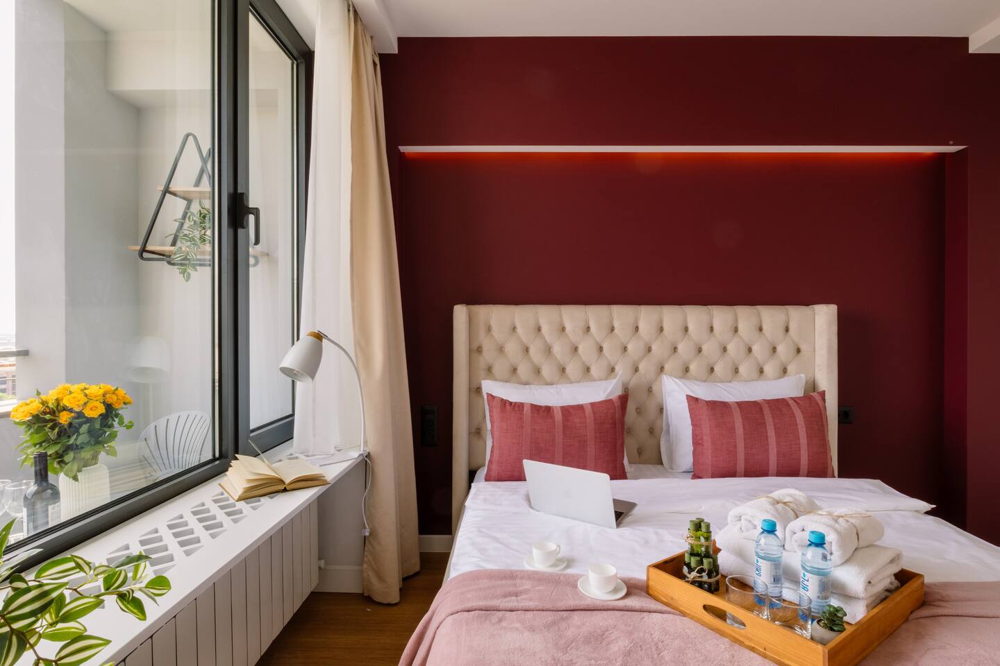 ☆ Welcome to "Scarlet" by Hotelise: style meets sophistication. ✓ 24/7 Self Check-in ✓ 10/11 floor ✓ New Lift ✓ Balcony ✓ ACs ✓ 45sqm ✓ Working Desk ✓ Crosley Vinyl Player ✓ Smart TV ✓ Premium Bathroom and Furnishings ✓ High-speed 200 Mbit WiFi ✓ Washer and Dryer ✓ Fully-equipped kitchen /w Dishwasher ✓ Luxury hotel toiletries ✓ Fresh linens & plush towels ✓ Apartment Next Door "Sapphire" for large groups ♥ At hotelise we are creating memories one stay at a time!