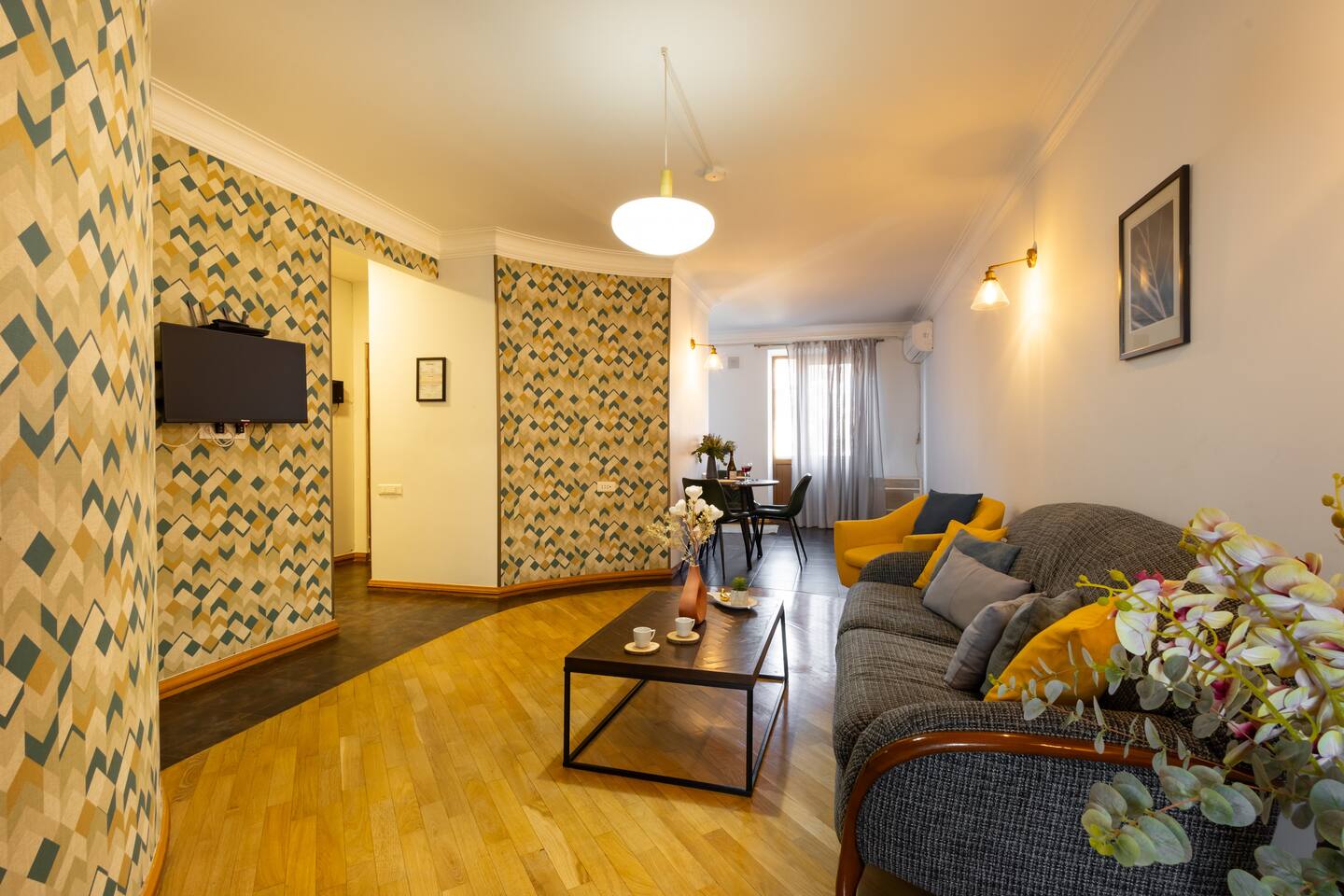 Located 1 minute away from the famous Lover Park, with a balcony view this exclusively designed, and furnished apartment is an absolute treasure. It's newly made exclusively for Airbnb travellers. Very premium location, Baghramyan street is where the house of parliament is, with many embassies nearby. Lovers park has nice cafes and attractions and is an absolute joy to have a morning coffee. The apartment is within walking distance to the heart of the city, the Cascade complex is 12 minutes away, and that's where all the tourist vibe starts, with the wine scene at the famous Saryan Street (check my guidebook)! It's just a few steps to many of Yerevan's monuments. You can find top trendy restaurants, bars, clubs, nonstop stores and nightlife nearby. Finally, be sure to ask me about the food, music and nightlife scene in Yerevan. I have close venue owners and event organiser friends.