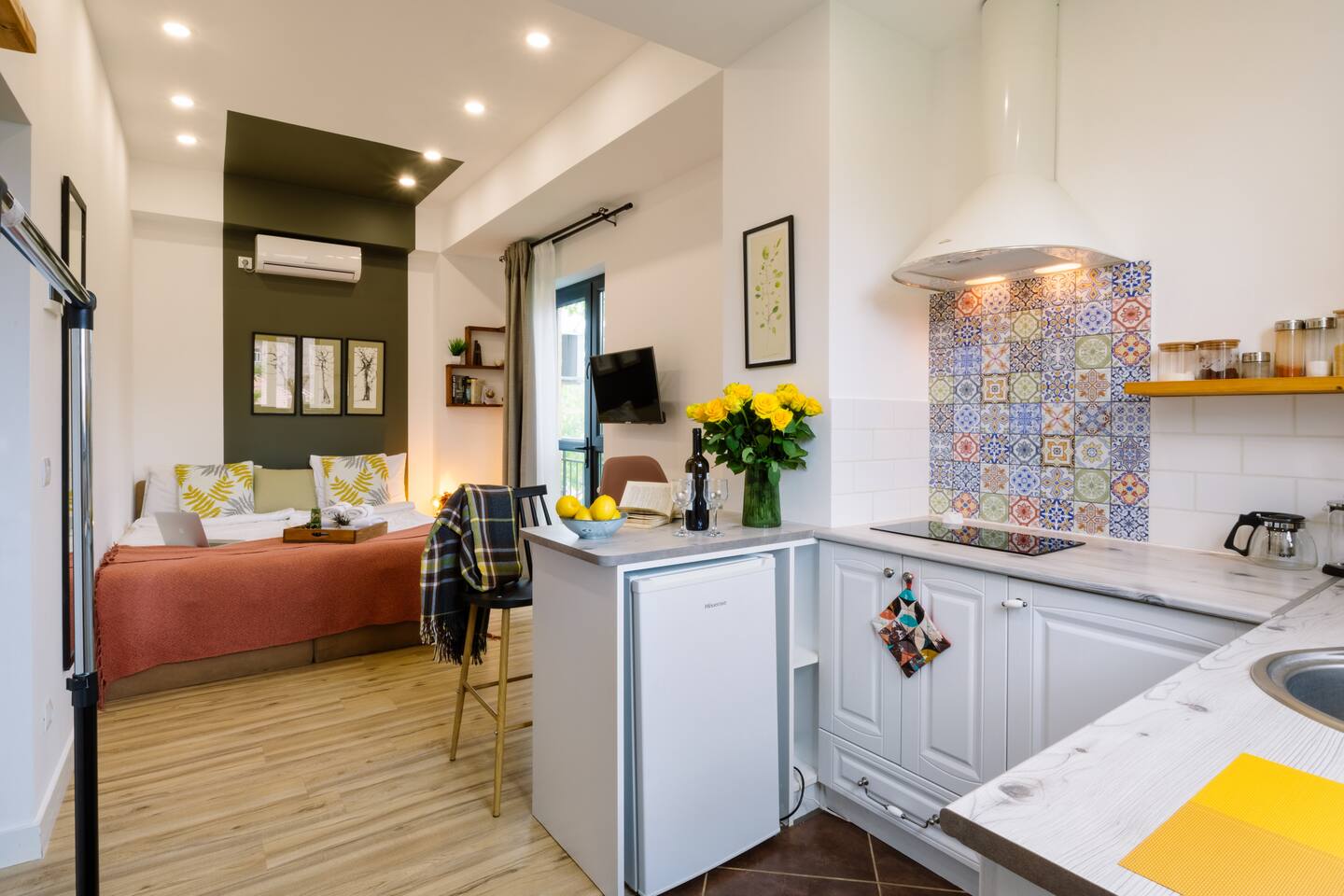 Add my listing to your wishlist by clicking the ♥ in the upper-right corner: ☆ Sunflower Colours ◦ 24/7 Self Checkin ◦ 20m2 studio with shared garden ◦ 3rd floor ◦ Traditional BBQ ◦ Extremely safe neighbourhood ◦ Smart TV, WIFI ◦ Full privacy guaranteed ◦ Fully equipped + stocked kitchen ◦ Shared Laundry Room ☆ 1 min walk from famous central circular parks and vernissage market, easy to find, safe, quiet and authentic neighbourhood of the city. Close cafes, music, evening walks!