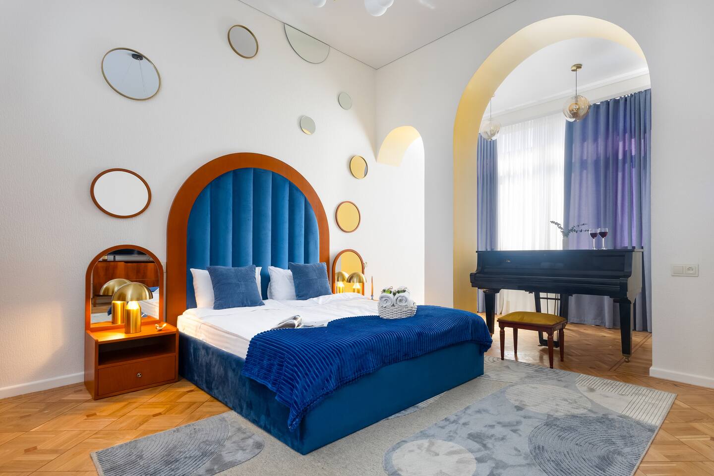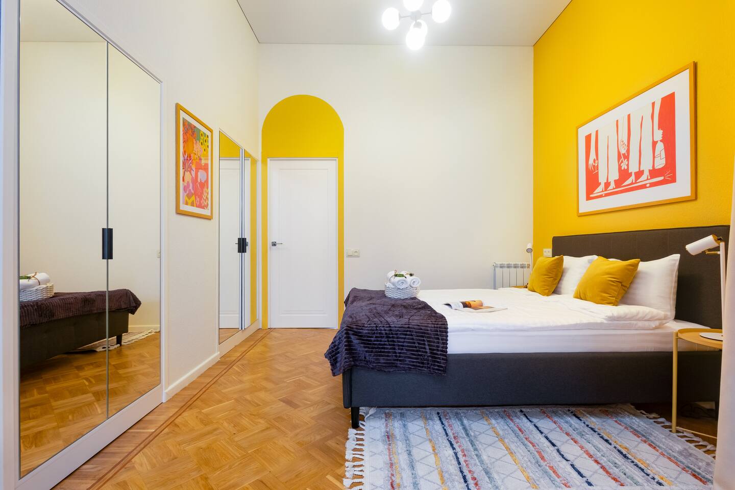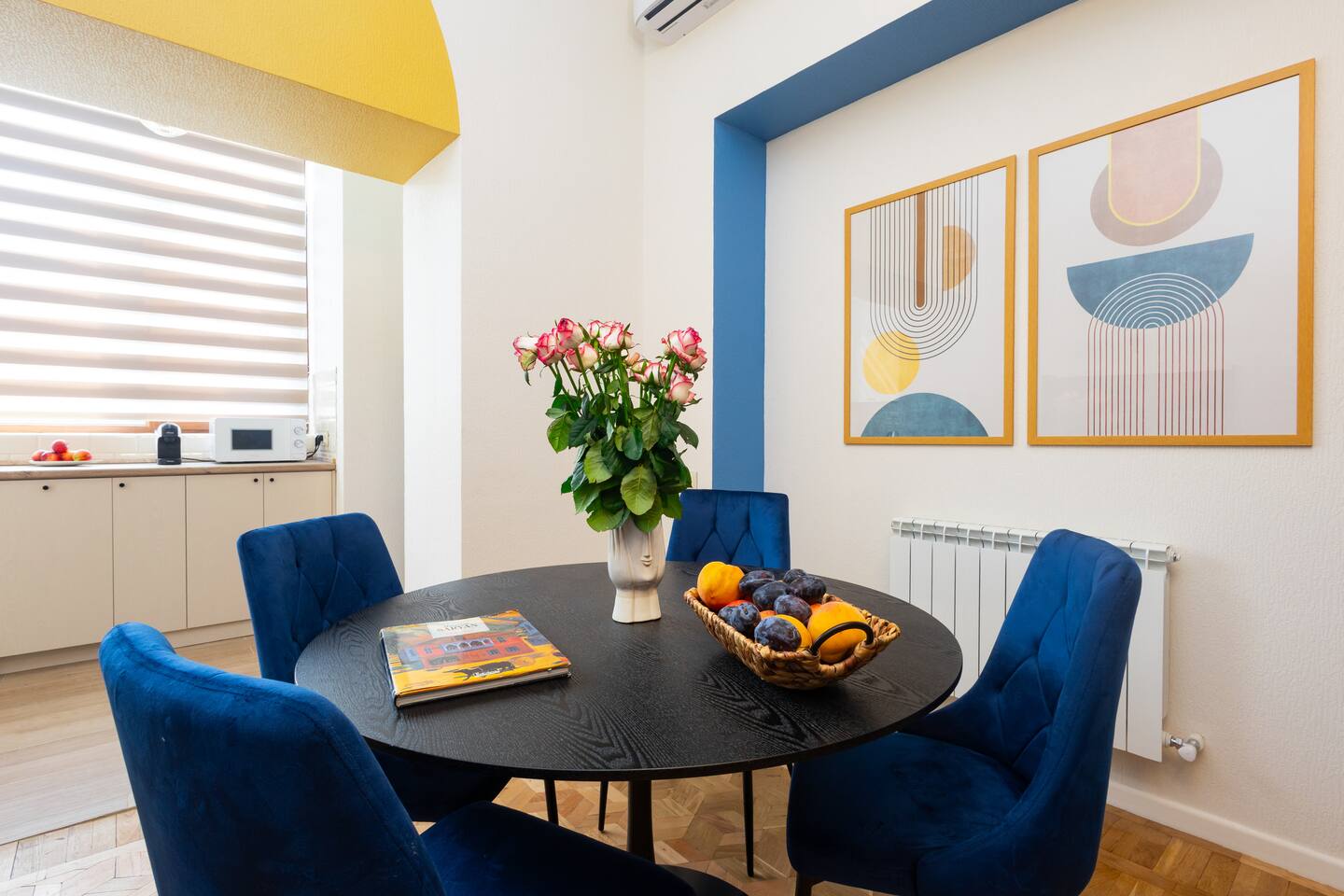 🎼 Symphonia by Hotelise - Where Heritage Meets Bold Design 📍 Location Set on 1 Silva Kaputikyan Street, Symphonia is tucked into one of Yerevan’s most refined quarters — the quiet side of Baghramyan Avenue, lined with embassies, leafy parks, and cultural institutions. Sharing its building with the Silva Kaputikyan Museum, the home of Armenia’s legendary poetess, this address is deeply woven into the city’s intellectual and artistic fabric. Cascade, Lovers’ Park, and the National Assembly are all a short walk away. ⸻ 🏛️ The Story This space is more than a listing , it’s the result of a family’s devotion to legacy. The owners, once neighbors of Silva Kaputikyan, chose not to sell, but to create something timeless with Hotelise: a residence where heritage is reimagined with modern design. Today, Symphonia is featured in several design publications for its masterful harmony of eras, materials, and moods. ⸻ 🛋️ Living Room & Kitchen Step into a vibrant symphony of colour: bold electric blues, deep mustards, and sun-drenched wood textures. The living space is a curated composition vintage bookshelf and clock beside a sleek modern TV, artistic lighting, and abstract wall art that lives effortlessly among the textures. The kitchen is spacious, bright, and fully equipped: ✓ Dishwasher ✓ Oven ✓ Free-standing fridge ✓ Microwave ✓ Full dining setup with a stylish round table and plush chairs. ⸻ 🛏 Bedroom 1 - The Arch & the Piano This room is a showstopper. A sculptural feature headboard, flanked by a collection of designer mirrors and a golden-arched passage that frames a grand piano. Add velvet textiles, ambient lighting, a soft area rug, elegant side tables, and a smart TV , and you’re living in what feels like a scene from a design magazine. Plenty of wardrobe space completes the experience. ⸻ 🛏 Bedroom 2 - Yellow Glow & Loft Vibes Warm yellow tones and mirrored wardrobes reflect natural light beautifully. This bedroom includes a dedicated desk, perfect for remote work, and leads up a set of elegant wooden steps to a cozy lofted chill-out nook — ideal for reading or an afternoon pause. ⸻ 🚿 Bathroom Fully renovated with tasteful mosaic tiles, an enclosed glass shower cabin, LED-lit mirror, and clean modern finishes. Spa-like and spotless. ⸻ 🚽 WC Room Separate and equally stylish, fitted with all-new sanitary ware. ⸻ 🌟 The Experience Even the corridors are a visual journey — with curated wall art, mood lighting, and a sense of calm sophistication that carries through every corner. ⸻ 💫 Stay with Hotelise At Hotelise, we don’t just manage properties — we curate homes that tell stories. With over 130+ uniquely designed spaces across Yerevan, London, and beyond, our mission is to create design-led stays that feel like they were made just for you. Symphonia is one of our proudest chapters.