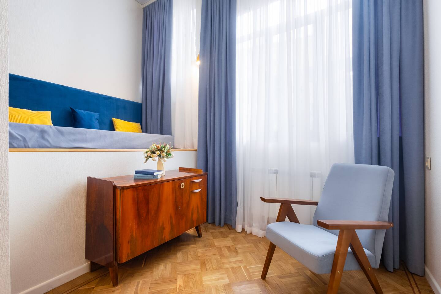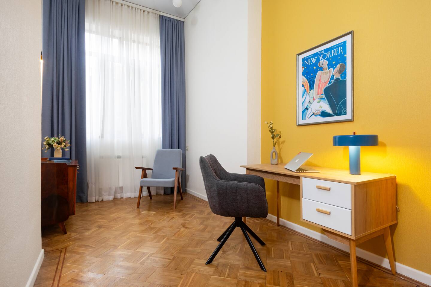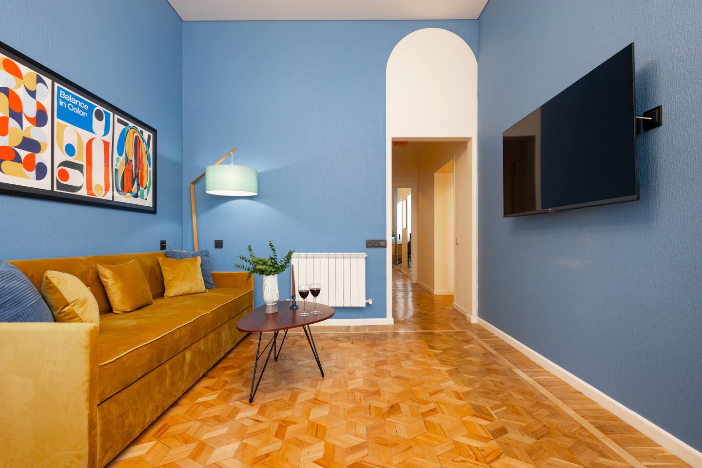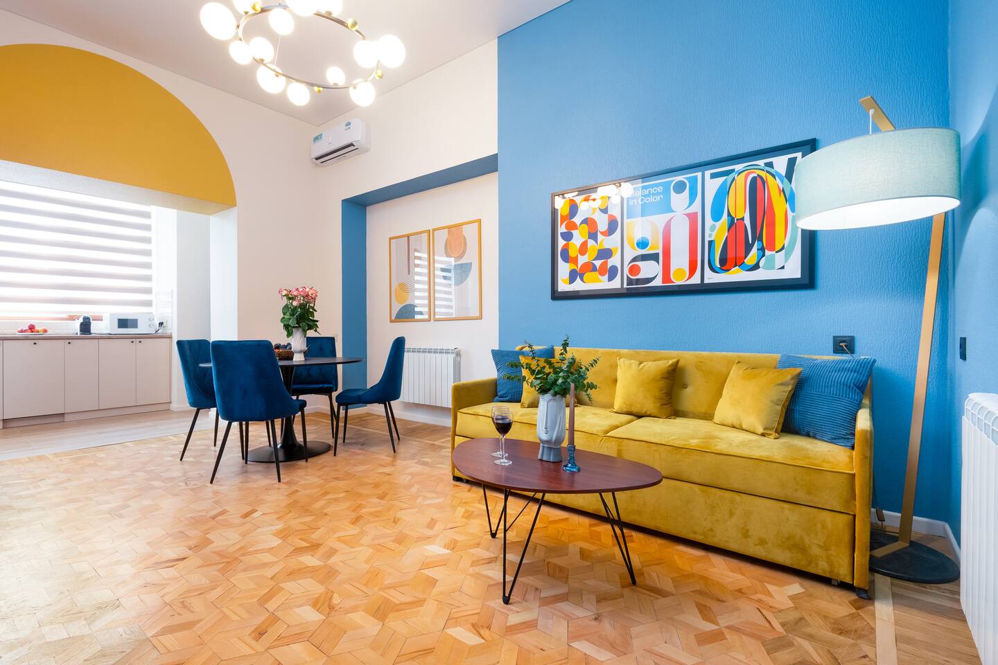 🎼 Symphonia by Hotelise - Where Heritage Meets Bold Design 📍 Location Set on 1 Silva Kaputikyan Street, Symphonia is tucked into one of Yerevan’s most refined quarters — the quiet side of Baghramyan Avenue, lined with embassies, leafy parks, and cultural institutions. Sharing its building with the Silva Kaputikyan Museum, the home of Armenia’s legendary poetess, this address is deeply woven into the city’s intellectual and artistic fabric. Cascade, Lovers’ Park, and the National Assembly are all a short walk away. ⸻ 🏛️ The Story This space is more than a listing , it’s the result of a family’s devotion to legacy. The owners, once neighbors of Silva Kaputikyan, chose not to sell, but to create something timeless with Hotelise: a residence where heritage is reimagined with modern design. Today, Symphonia is featured in several design publications for its masterful harmony of eras, materials, and moods. ⸻ 🛋️ Living Room & Kitchen Step into a vibrant symphony of colour: bold electric blues, deep mustards, and sun-drenched wood textures. The living space is a curated composition vintage bookshelf and clock beside a sleek modern TV, artistic lighting, and abstract wall art that lives effortlessly among the textures. The kitchen is spacious, bright, and fully equipped: ✓ Dishwasher ✓ Oven ✓ Free-standing fridge ✓ Microwave ✓ Full dining setup with a stylish round table and plush chairs. ⸻ 🛏 Bedroom 1 - The Arch & the Piano This room is a showstopper. A sculptural feature headboard, flanked by a collection of designer mirrors and a golden-arched passage that frames a grand piano. Add velvet textiles, ambient lighting, a soft area rug, elegant side tables, and a smart TV , and you’re living in what feels like a scene from a design magazine. Plenty of wardrobe space completes the experience. ⸻ 🛏 Bedroom 2 - Yellow Glow & Loft Vibes Warm yellow tones and mirrored wardrobes reflect natural light beautifully. This bedroom includes a dedicated desk, perfect for remote work, and leads up a set of elegant wooden steps to a cozy lofted chill-out nook — ideal for reading or an afternoon pause. ⸻ 🚿 Bathroom Fully renovated with tasteful mosaic tiles, an enclosed glass shower cabin, LED-lit mirror, and clean modern finishes. Spa-like and spotless. ⸻ 🚽 WC Room Separate and equally stylish, fitted with all-new sanitary ware. ⸻ 🌟 The Experience Even the corridors are a visual journey — with curated wall art, mood lighting, and a sense of calm sophistication that carries through every corner. ⸻ 💫 Stay with Hotelise At Hotelise, we don’t just manage properties — we curate homes that tell stories. With over 130+ uniquely designed spaces across Yerevan, London, and beyond, our mission is to create design-led stays that feel like they were made just for you. Symphonia is one of our proudest chapters.