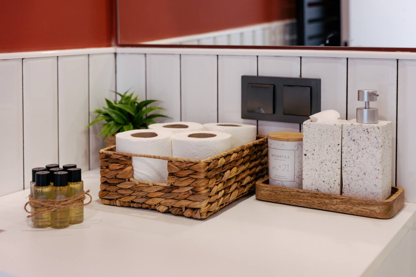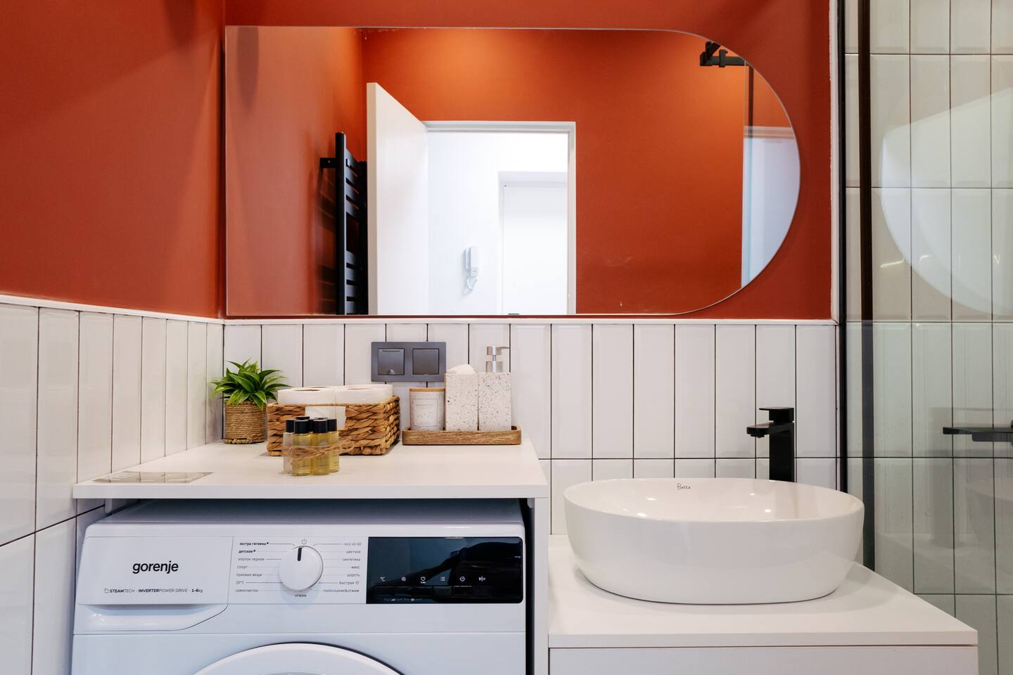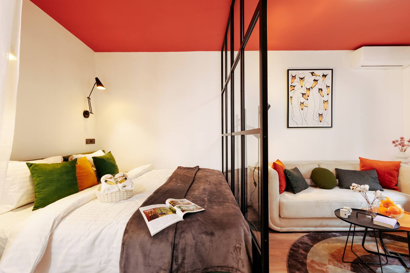 ☆ Welcome to "Terracotta" by Hotelise: Where Warm Design Meets Central Convenience ✓ 24/7 Self Check-in ✓ 2/5 floor ✓ Central Location ✓ AC ✓ 35sqm open plan ✓ 190x200cm Comfy Premium Bed ✓ Smart TV ✓ Premium Bathroom and Furnishings ✓ High-speed 200 Mbit WiFi ✓ Washer ✓ Fully-equipped kitchen /w Dishwasher ✓ Luxury hotel toiletries ✓ Fresh linens & plush towels ♥ At hotelise we are creating memories one stay at a time!
